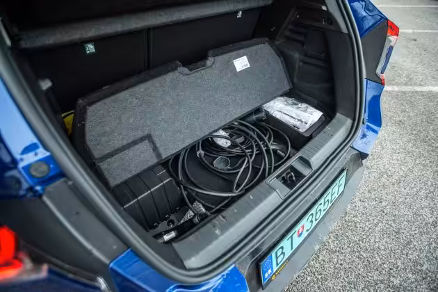 Renault Captur dostal akumulátor s kapacitou 9,8 kWh. Ten sa nachádza pod zadnými sedadlami a batožinovým priestorom. Dá sa teda predpokladať, že najviac utrpel kufor. A je tomu tak. Z pôvodných 404 litrov sa hybridný Captur musí uskromniť iba s 265 litrami. Takisto sa rozlúčte s dvojitým dnom, takže ani podlahu o poschodie nižšie neumiestnite, nachádza sa tam totiž kompresor na defekt a kabeláž na nabíjanie. Pokiaľ by ste však chceli manipulovať s miestom vzadu, existuje alternatíva v podobe posunutia zadnej lavice, no na úkor miesta pre zadných cestujúcich.