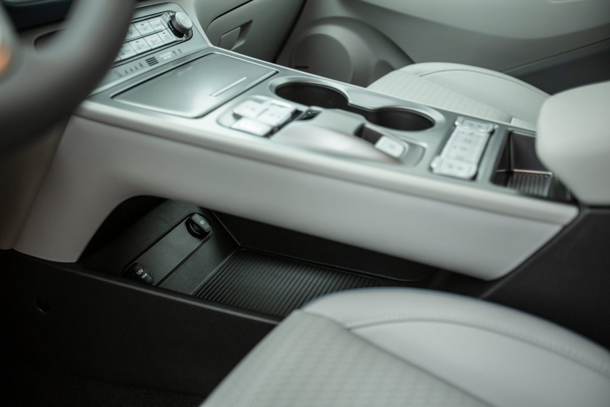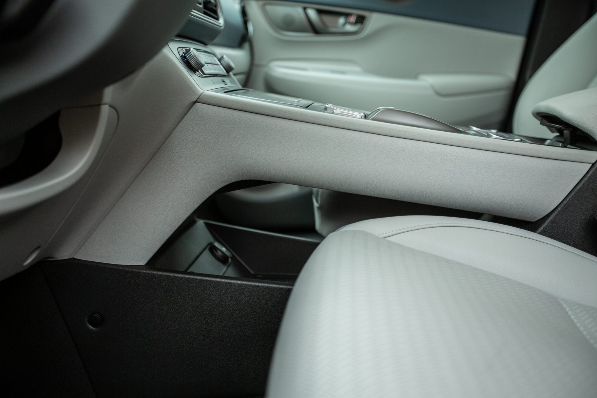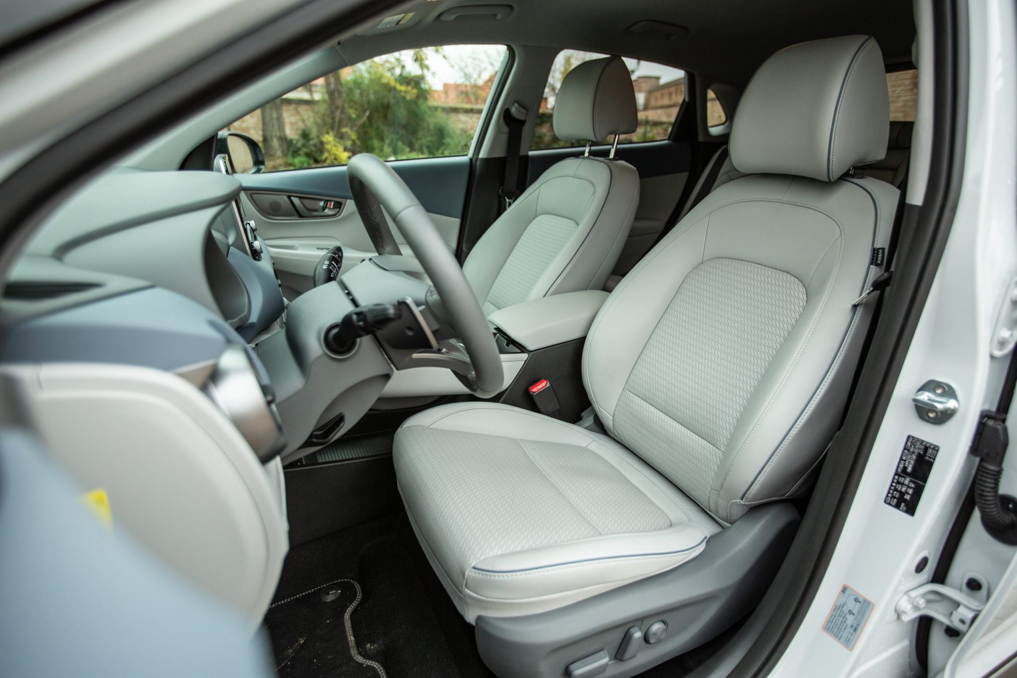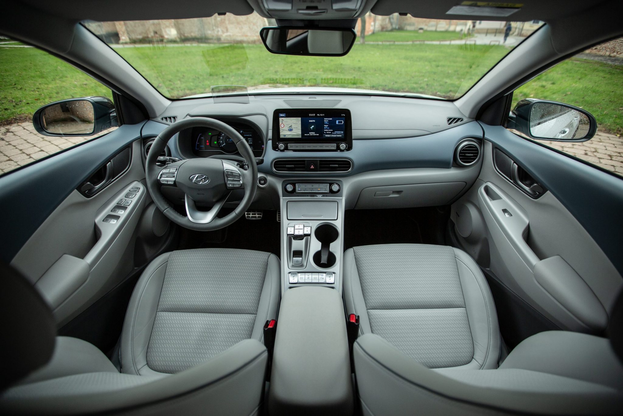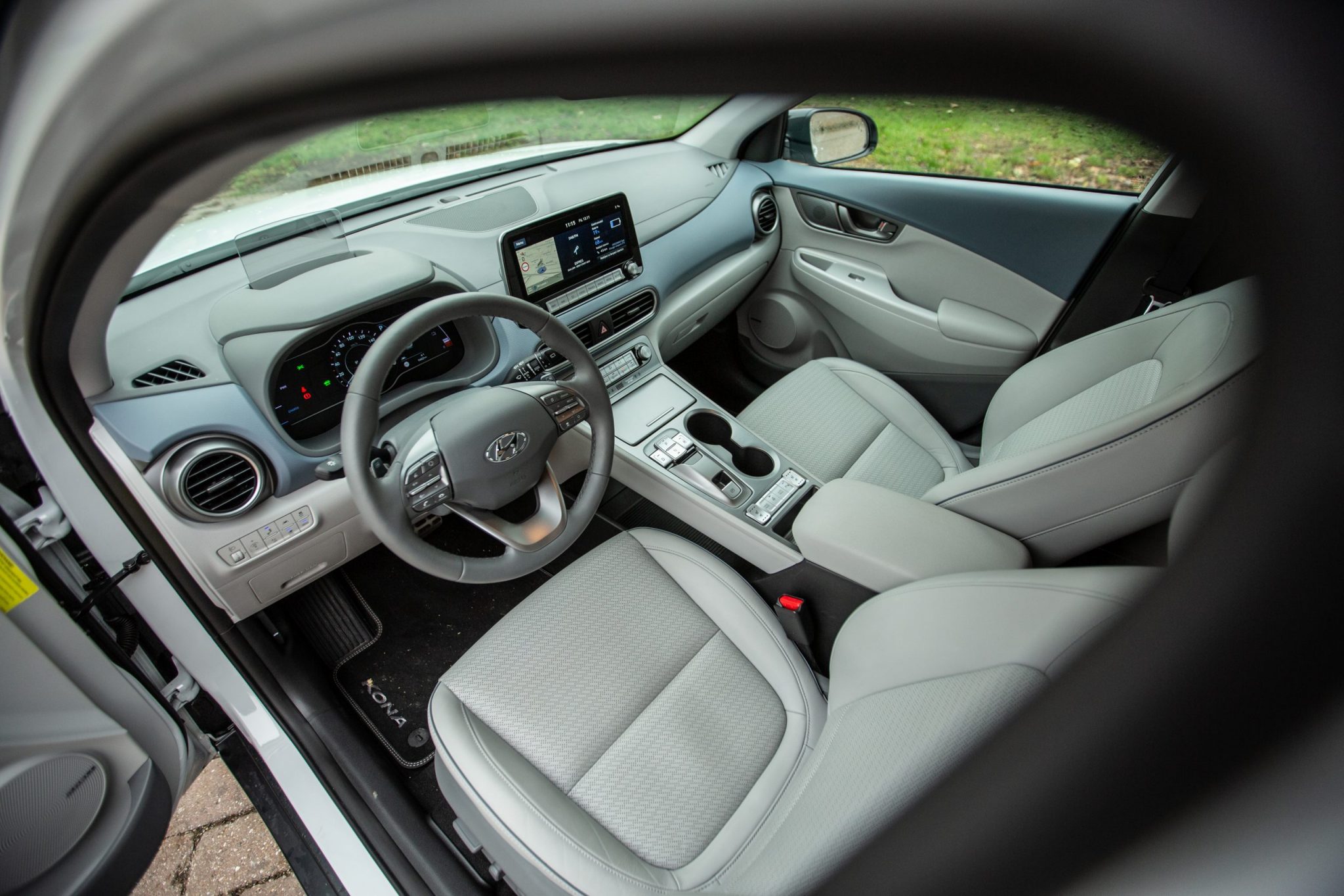 S dizajnom interiéru sa udialo v podstate to isté ako s exteriérom. V prípade elektrickej Kony je základňa rovnaká ako pri spaľovacích modeloch, ale konečným výsledkom je kultivovanejší a elegantnejší vzhľad. Jedným zo zaujímavých detailov je plávajúca palubná doska, ktorú vo zvyšku ponuky nenájdete. Hlavným priekopníkom je 7-palcový digitálny prístrojový panel. Do očí udrie aj vysoký stredový tunel, ktorý rozdeľuje kabínu na dve súkromné miesta. Velebenia hodné sú aj dve tlačidlá umiestnené v strede, ktoré umožňujú pasažierom využiť vyhrievanie či chladenie sedadiel.
