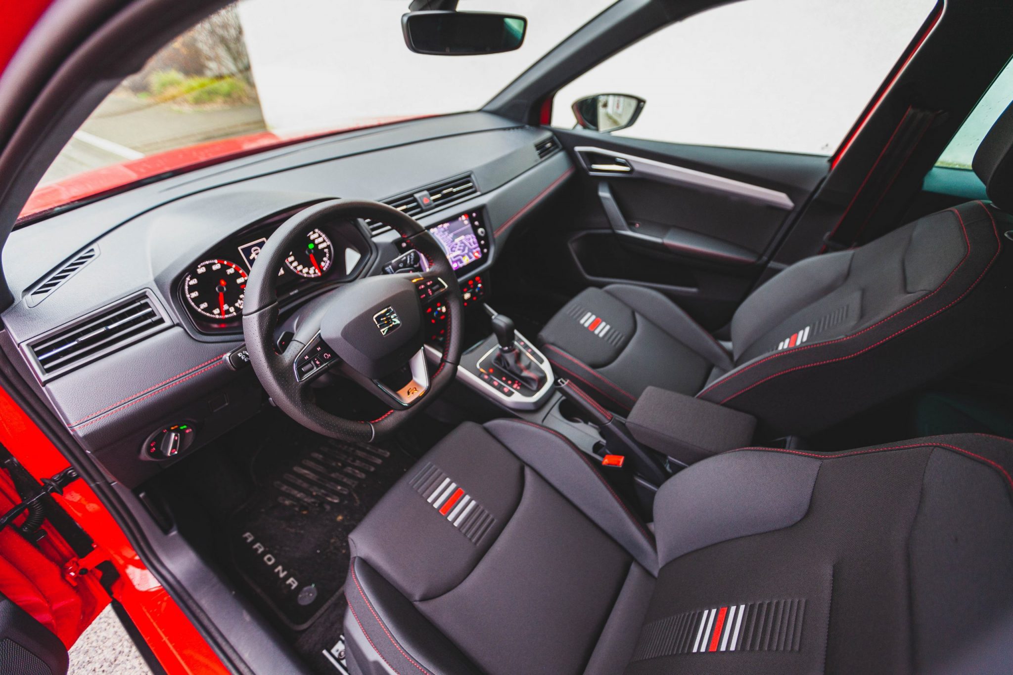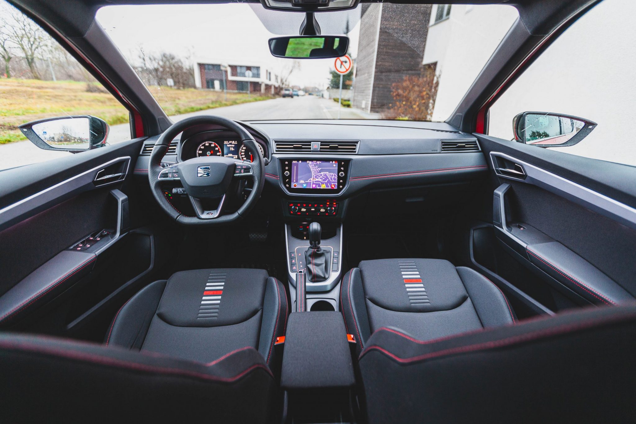 Interiér je veľmi dobre známy už z iných modelov. Výbava FR tak dodala športovejší nádych. Červeno-čierne kontrastné prešitie, volant potiahnutý kožou a iné prvky dodávajú tú správnu atmosféru. Volant je síce tvrdší, no v rukách sedí veľmi dobre. Veľkou škodou sú niektoré tvrdené plasty, ktoré by tam nemuseli byť. Veľkou nevýhodou (teda aspoň pre mňa) je absencia bez-kľúčového odomykania, či štartovania. Predsa len, keď kupujete auto v tomto segmente nad 20.000 €, tak keyless odomykanie už naozaj očakávate. Koncern však ovplyvniť nedokážeme.