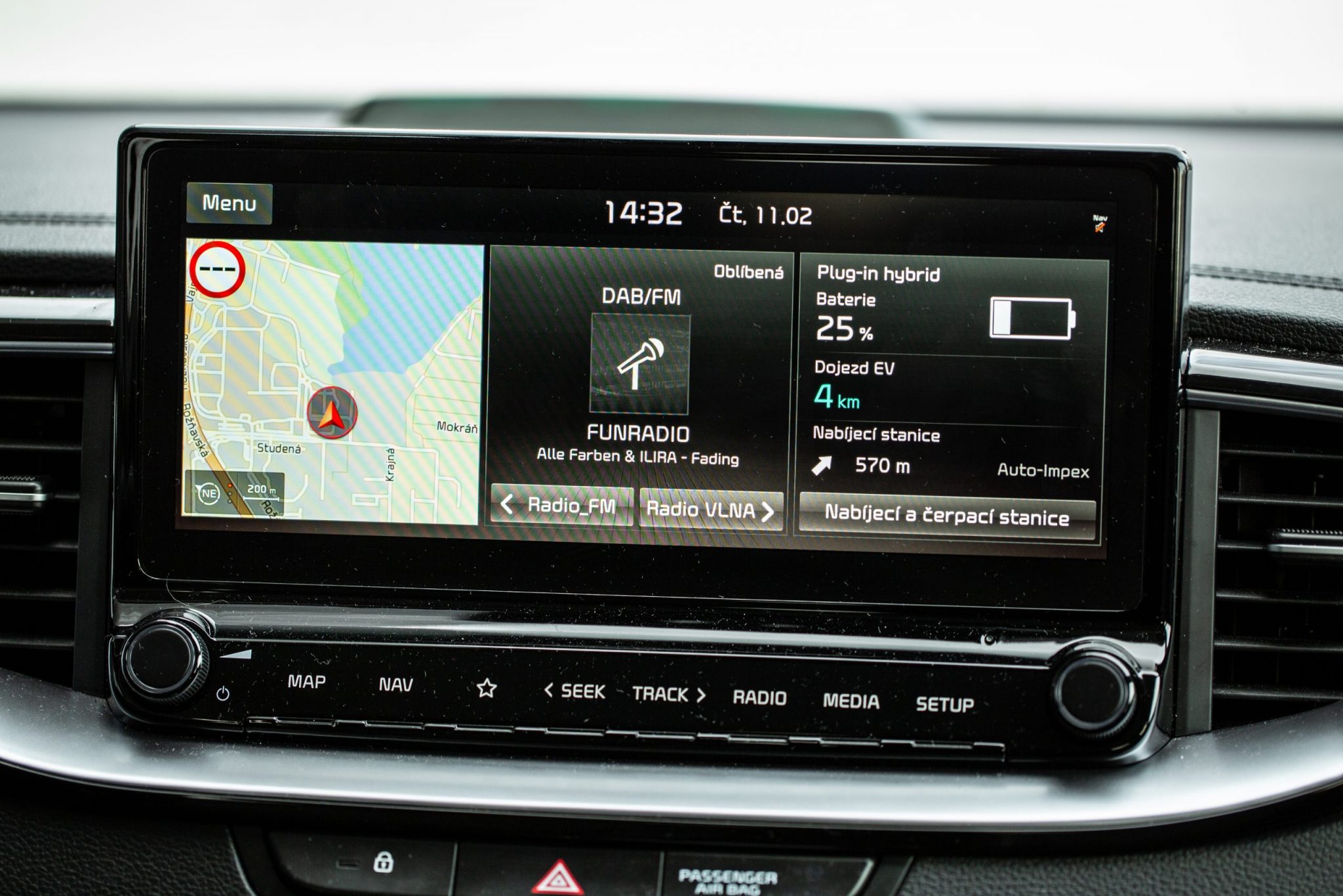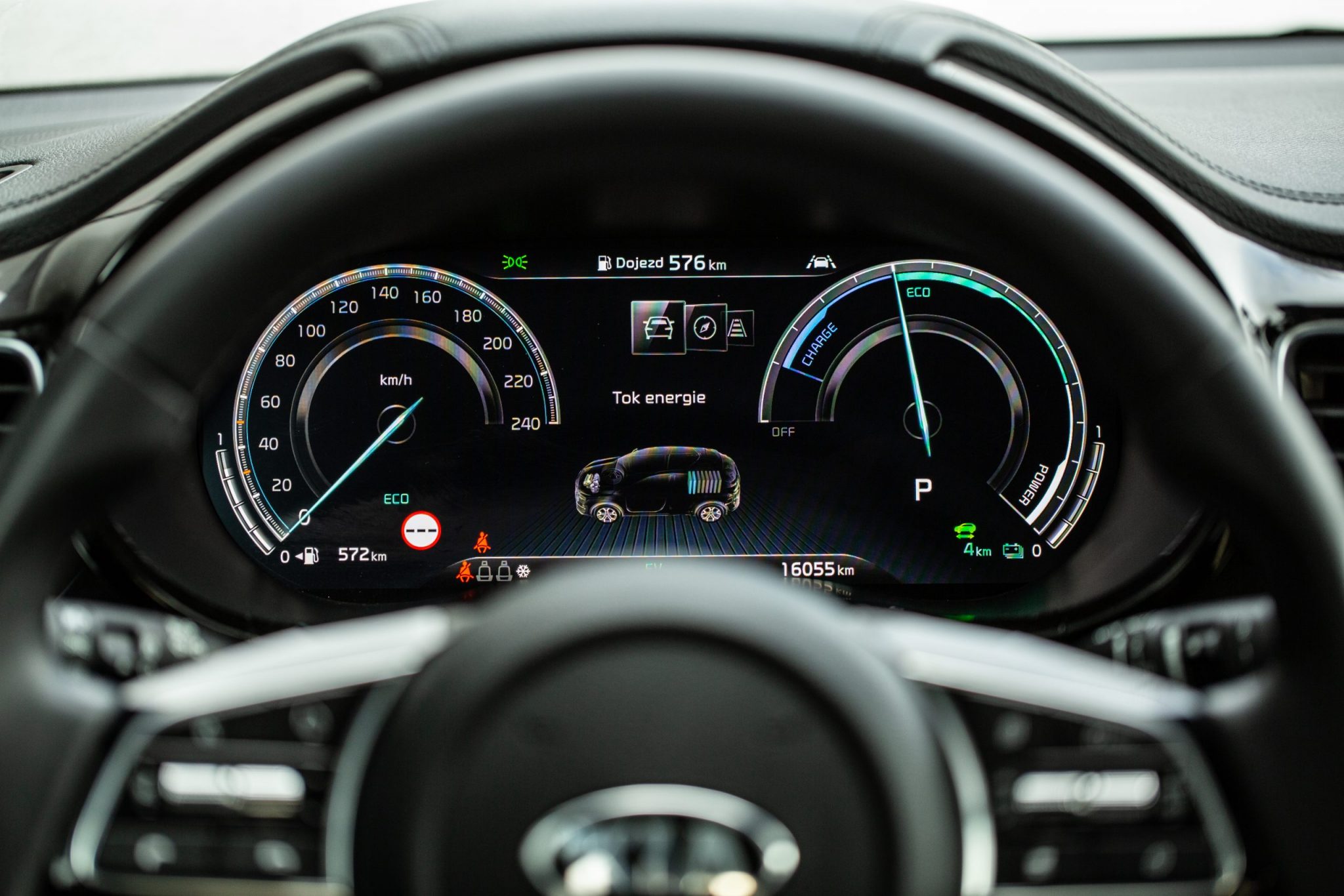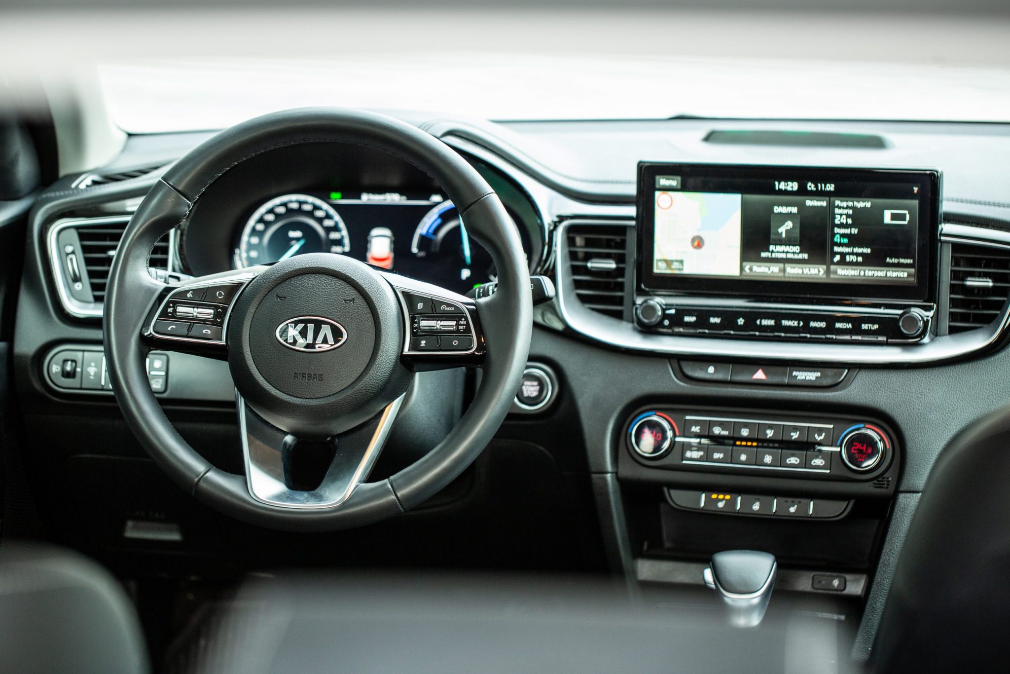 Sme radi, že Kia si ešte stále zachovala ovládače na zmenu teploty klimatizácie. Výbava Platinum znamená aj plne digitálny prístrojový štít pred vodičom. Pri zmene jazdného režimu na Sport prejde panel ako-takou zmenou, no otáčkomer neexistuje. Pri niektorých krokoch vyzerá potenciál digitálneho prístroja nevyužitý – napríklad s navigáciou na celom displeji sa rozlúčte.