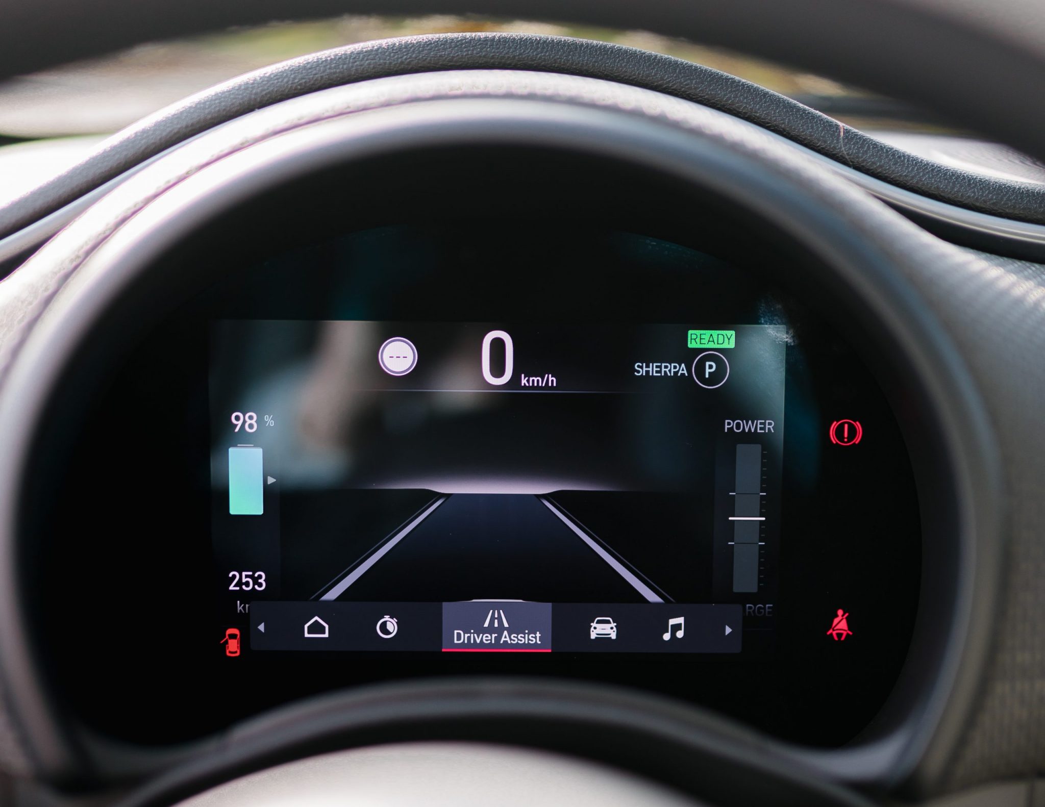 Toto je auto ktorému nemám čo vytknúť, všetko v interiéri má svoje miesto. Pred vami je digitálny prístrojový štít, ktorého grafika je ohromná, rovnako prehľadnosť a jednoduchosť ovládania. To isté platí aj pre displej infotainmentu, ten má svoje miesto jasne stanovené tak aby neprekážal vo výhľade. Grafika je rovnako prívetivá a intuitívnosť ovládania predčila všetky aktuálne novinky nemeckých alebo francúzskych koncernov.