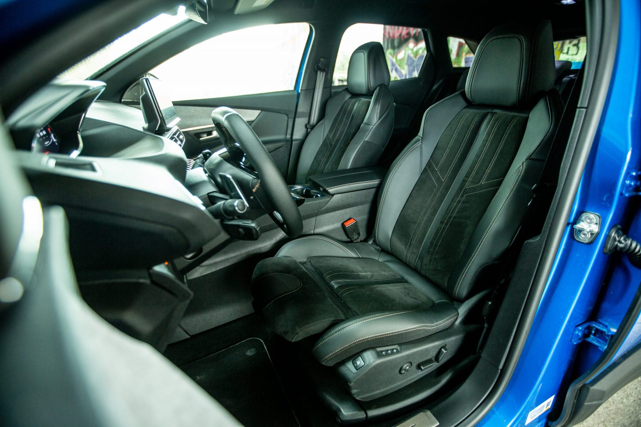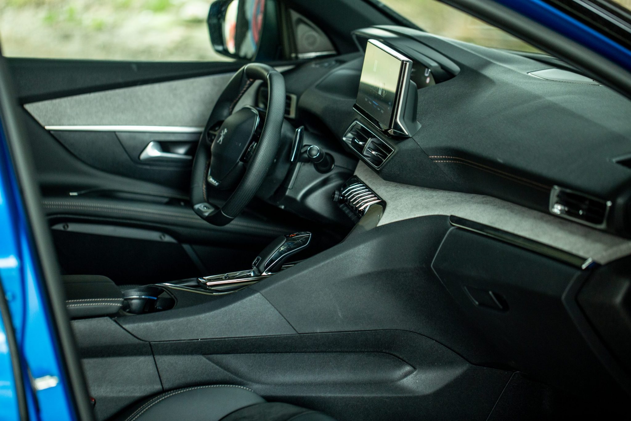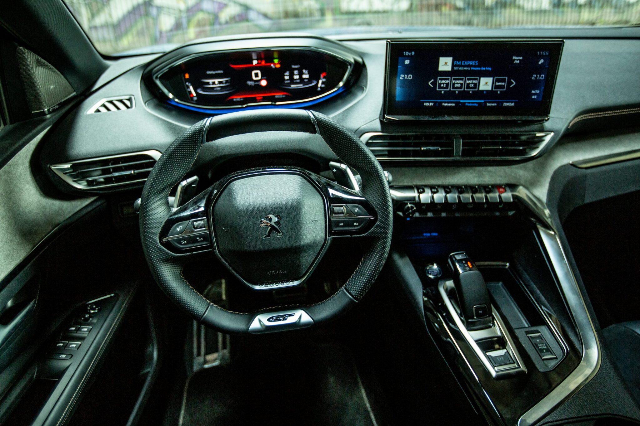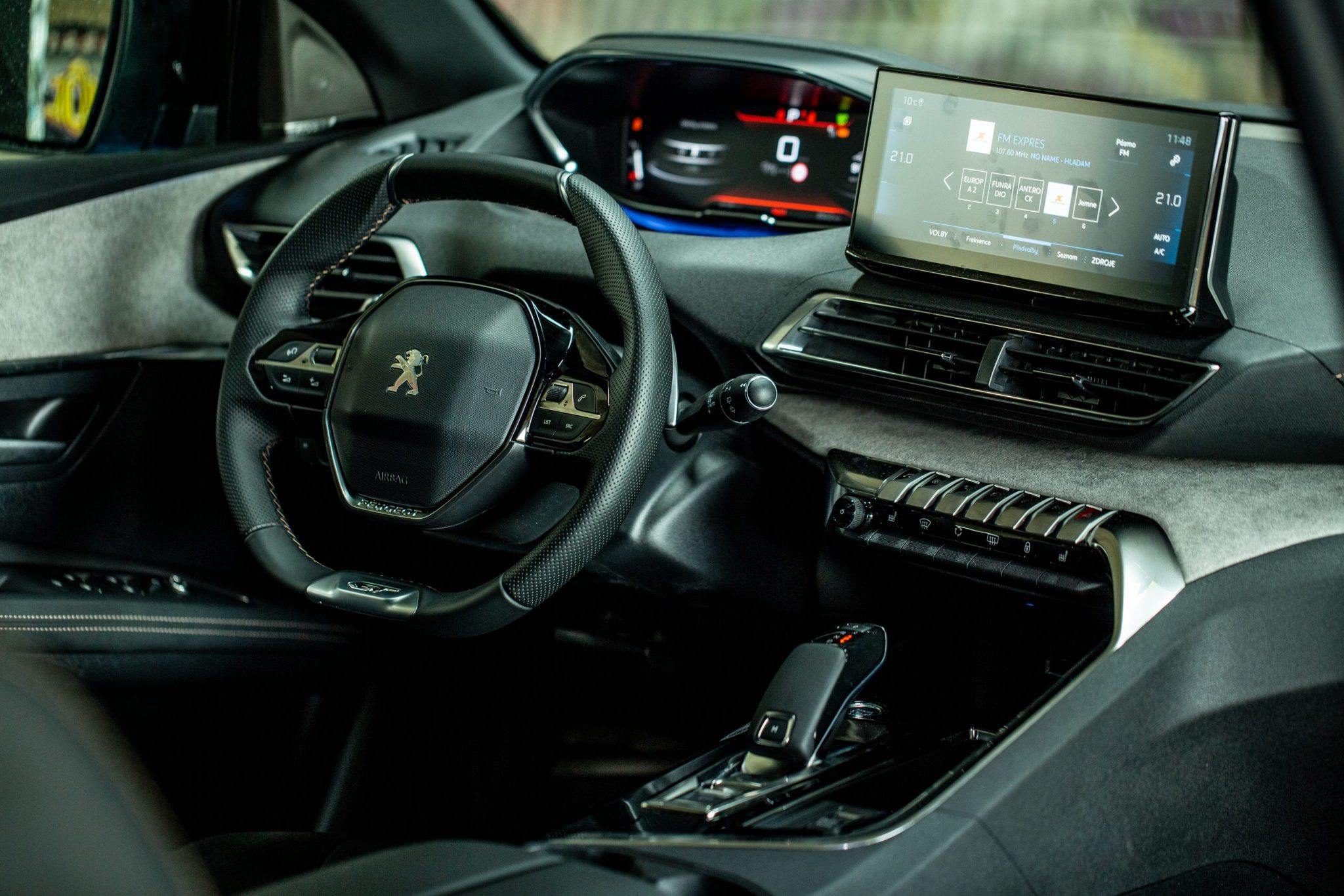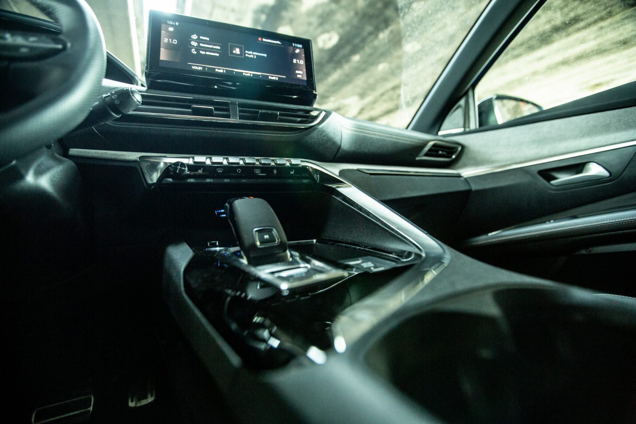 Už po nastúpení musíme kvitovať prekryté prahy dverí, ktoré nie sú ešte ani zďaleka pravidlom pri každom vozidle od priamej konkurencie. Nami testovaná verzia 3008 GT to však v interiéri hrá na lepšie materiály ako tomu bolo v minulosti. V interiéri nachádzame okrem kože aj Alcantaru. i-Cockpit ostal nezmenený, francúzski dizajnéri sa venovali prevažne centrálnemu displeju.