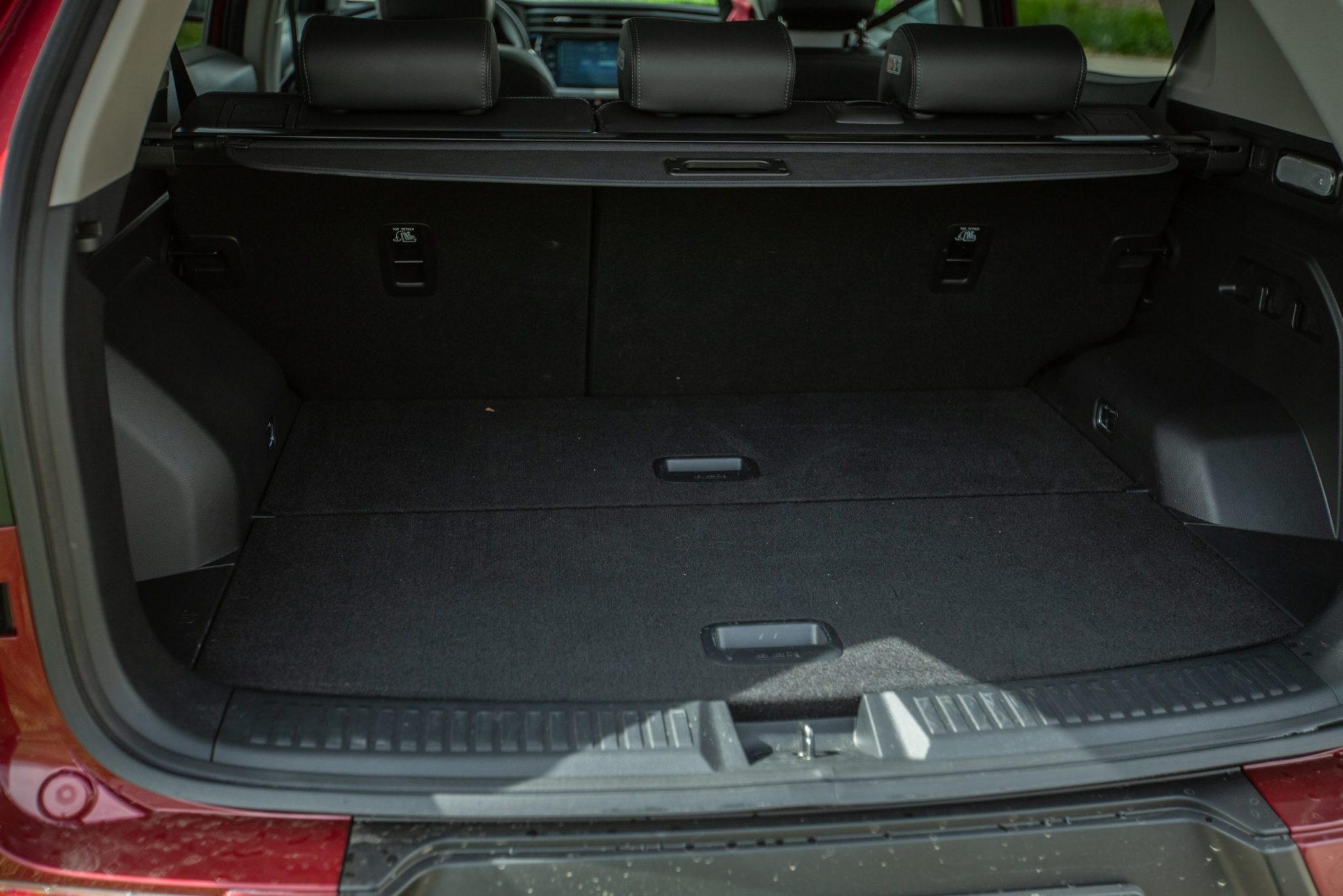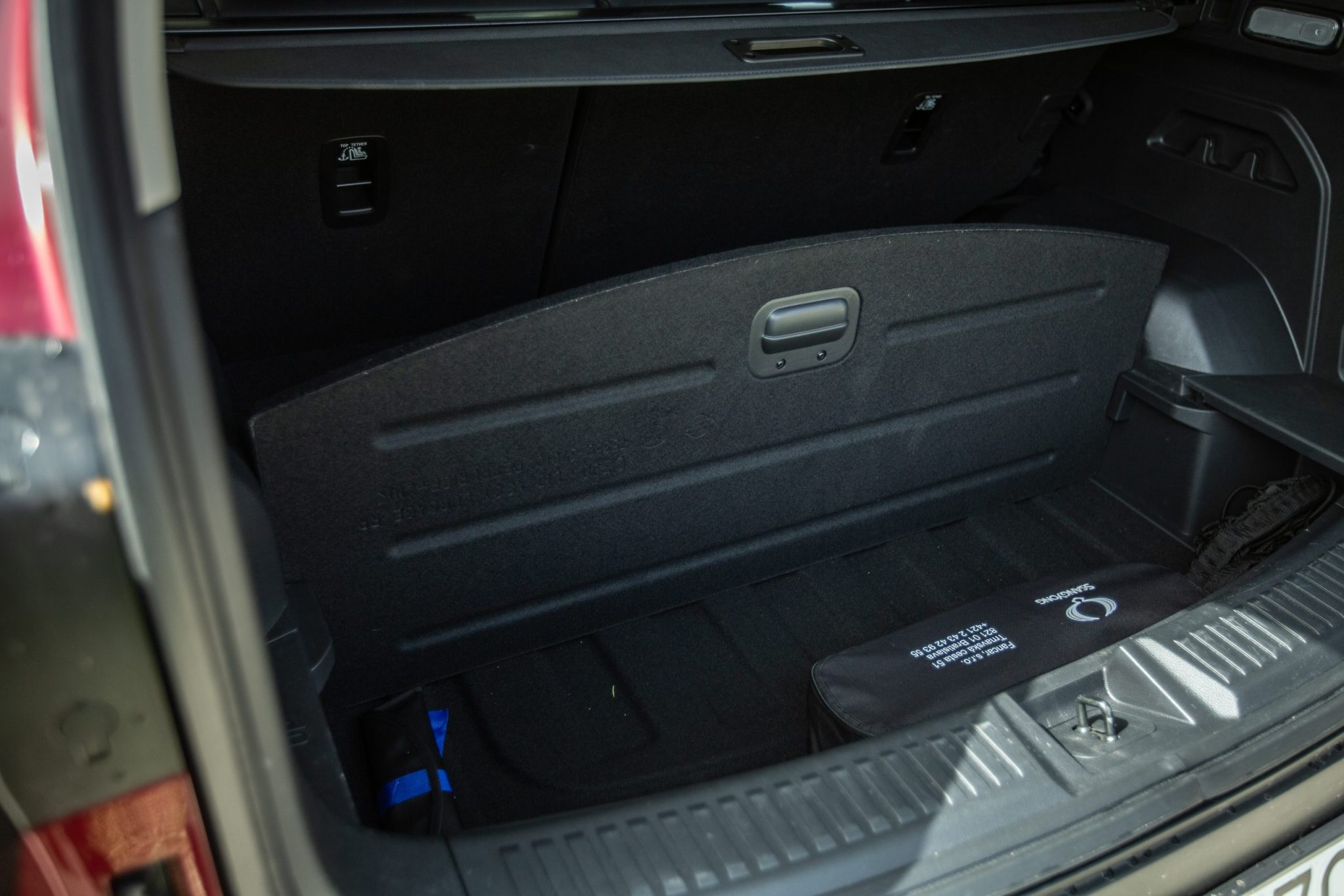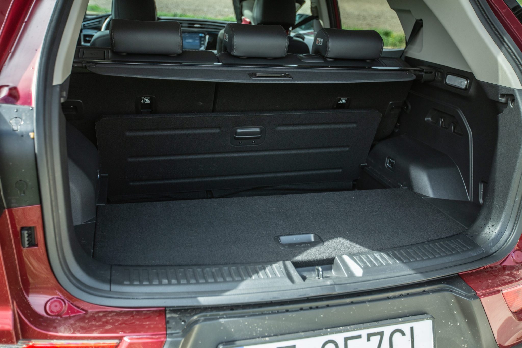 Priestor na zadných sedadlách, ako už bolo spomenuté je dostatočný. Dokonca ani vzrastom vyšší ľudia nebudú mať problém s miestom na nohy a ani na hlavu. Zadné operadlá sa dajú polohovať, čo môže byť užitočné na dlhších cestách a určite oceníte aj 220V zásuvku v stredovej konzole. Batožinový priestor disponuje 550 litrami objemu. No tento plný objem je nutné odhaliť pod dvojitým dnom batožinového priestoru. V spodnej časti máte úchyty aj na roletku, ktoré tak jednoducho viete zafixovať v prípade potreby.