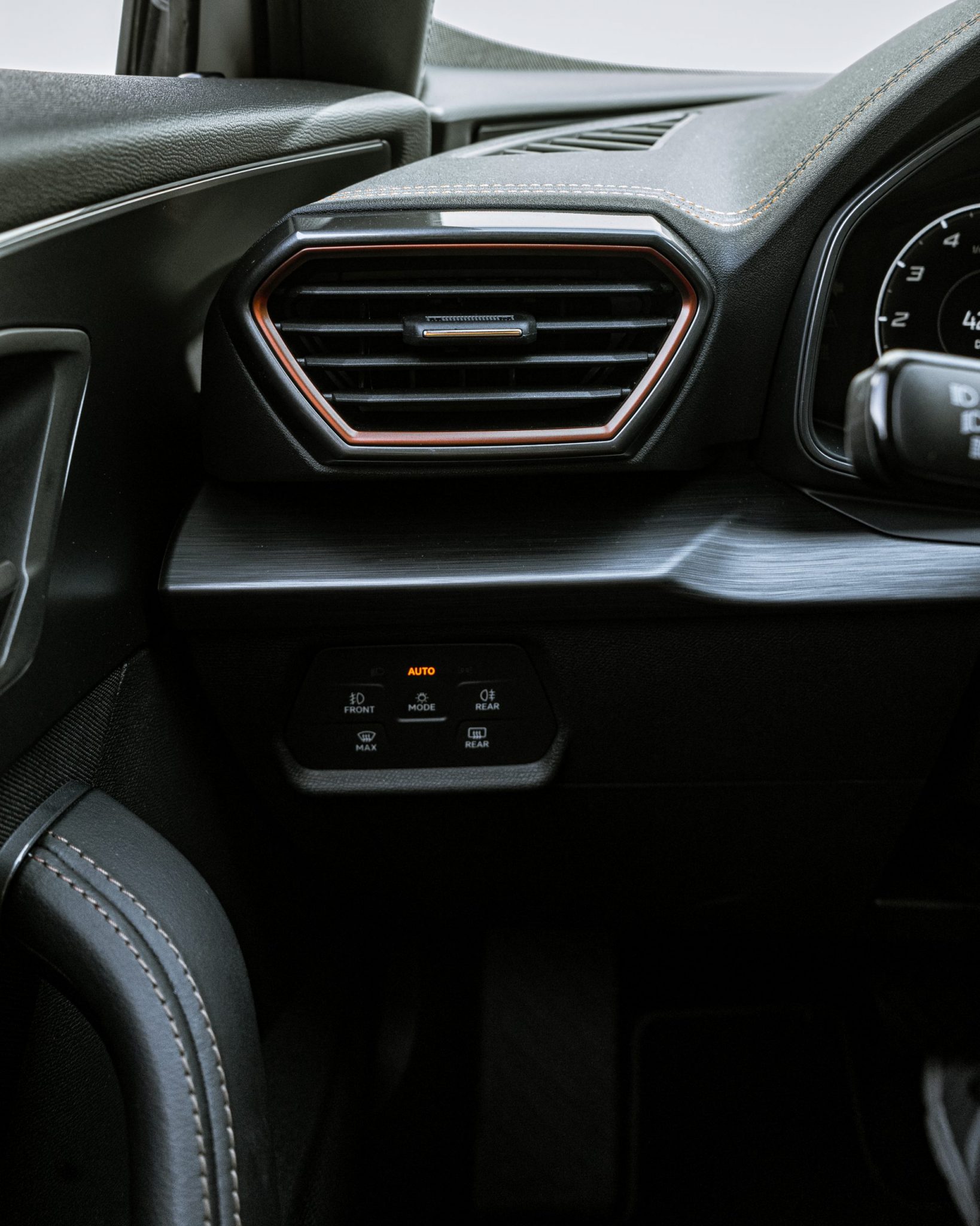 Interiér ide súčasným dizajnovým jazykom. Keďže je Cupra prémiovejšou značkou, tak boli použité lepšie materiály a samozrejme nesmú chýbať bronzové doplnky odkazujúce na to, že sedíte v Cupre a nie v klasickom Seate. Práve doplnky ako honosnejšie prešívanie, medené logo, medené dekory okolo výduchov klimatizácie docielili to, že Cupra je naozaj posunutá o krok vpred.