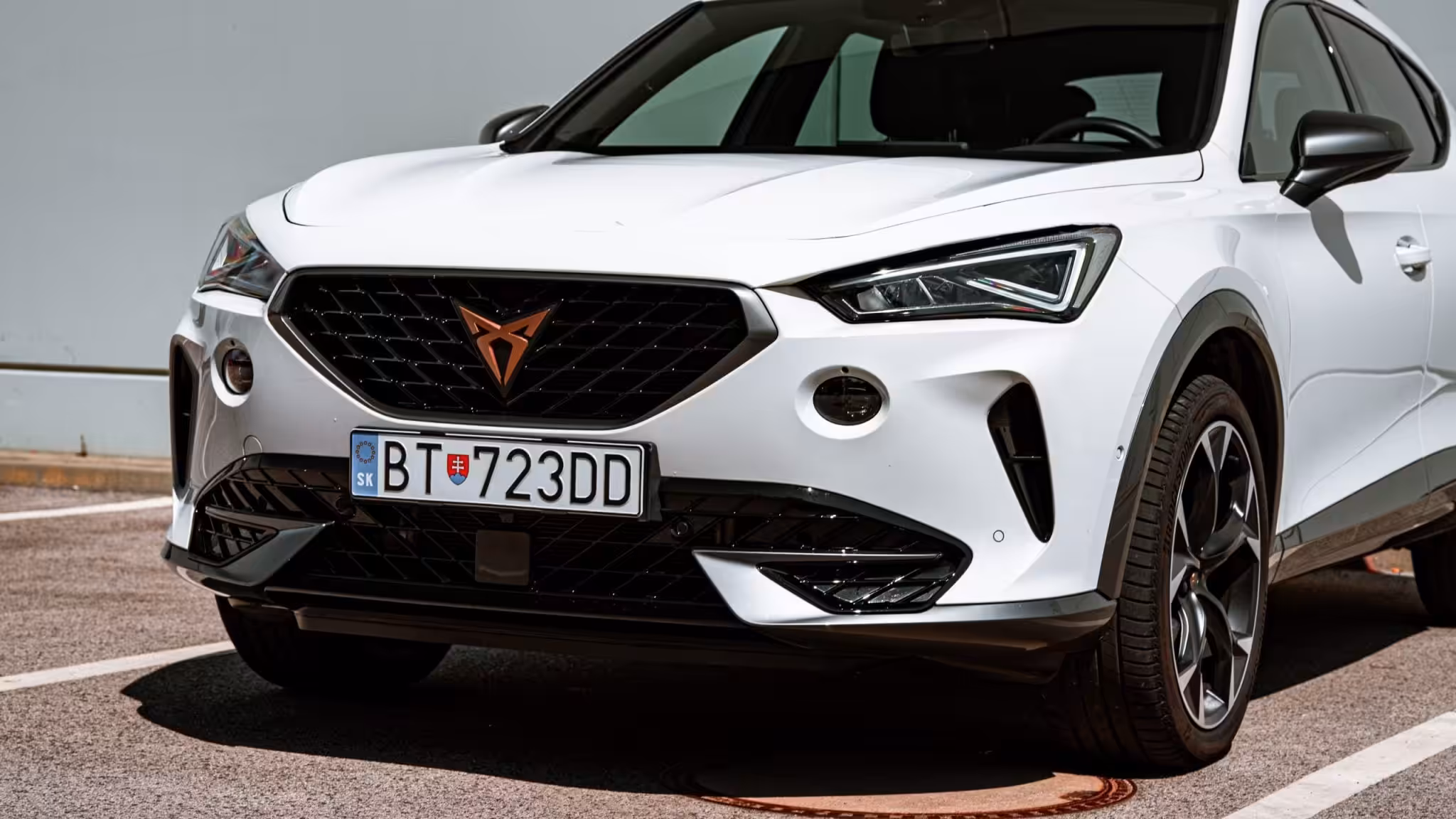 Za príplatok viete mať aj šedé lakovanie ako najvýkonnejšia a všade prezentovaná verzia. Tento Formentor bol odetý do bielej, nepríplatkovej farby. Vďaka nemu však na jednu stranu auto zaniká v spleti ostatných vozidiel, no šedé doplnky ho dokážu krásne odlíšiť od ostatných. Vďaka tomuto bielemu laku však do popredia vystupujú ostré hrany, ktoré Formentor dokážu na uliciach zvýrazniť.