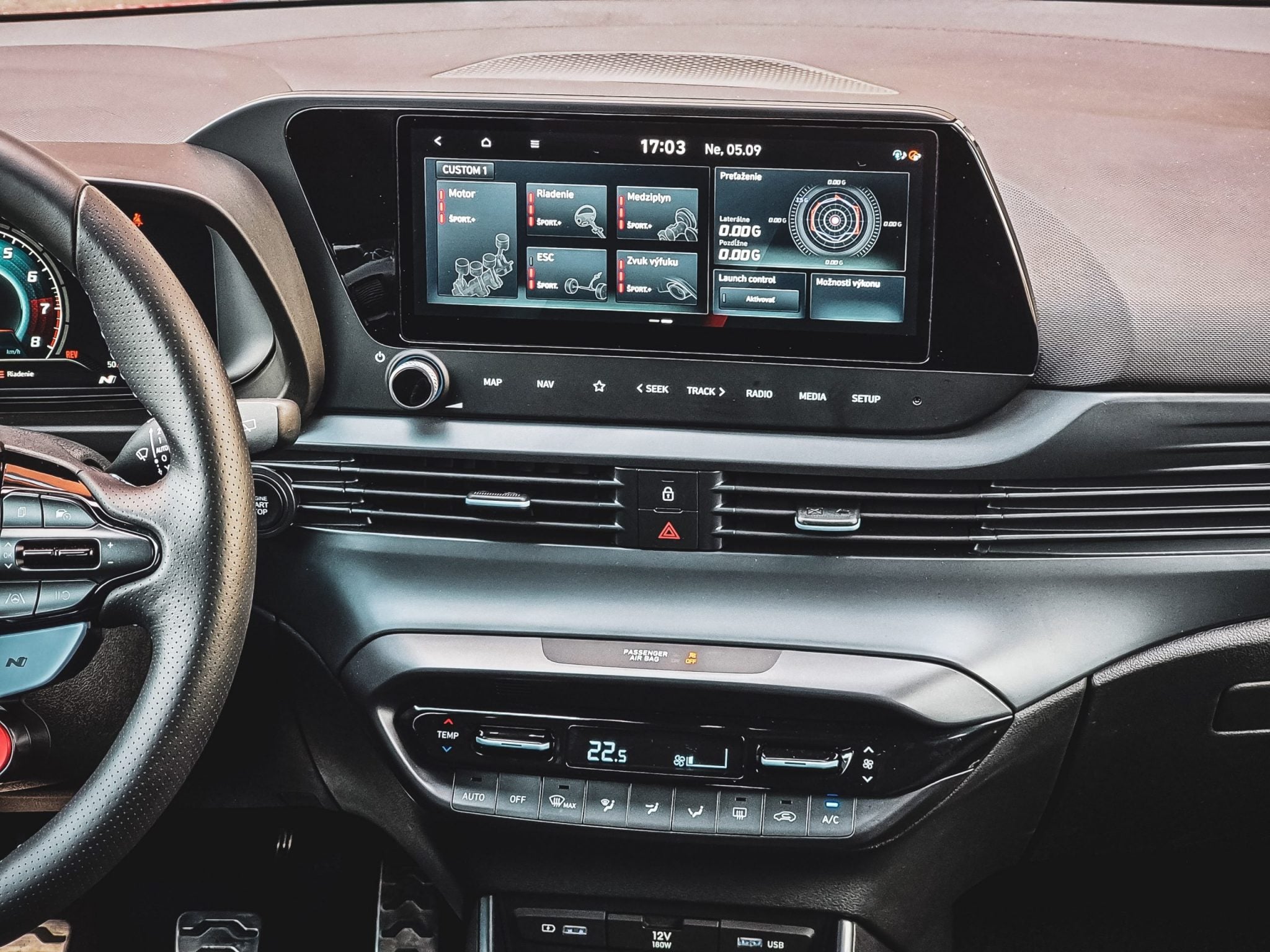 Prepracovaný bol aj systém digitálneho prístrojového štítu a displeju infotainmentu so špeciálnym N Menu. Vďaka nemu máte možnosť konfigurovať prakticky všetky nastavenia vozidla, okrem tlmičov. Menší zástupca, Hyundai i20N, totiž nemá k dispozícii adaptívne tlmiče.