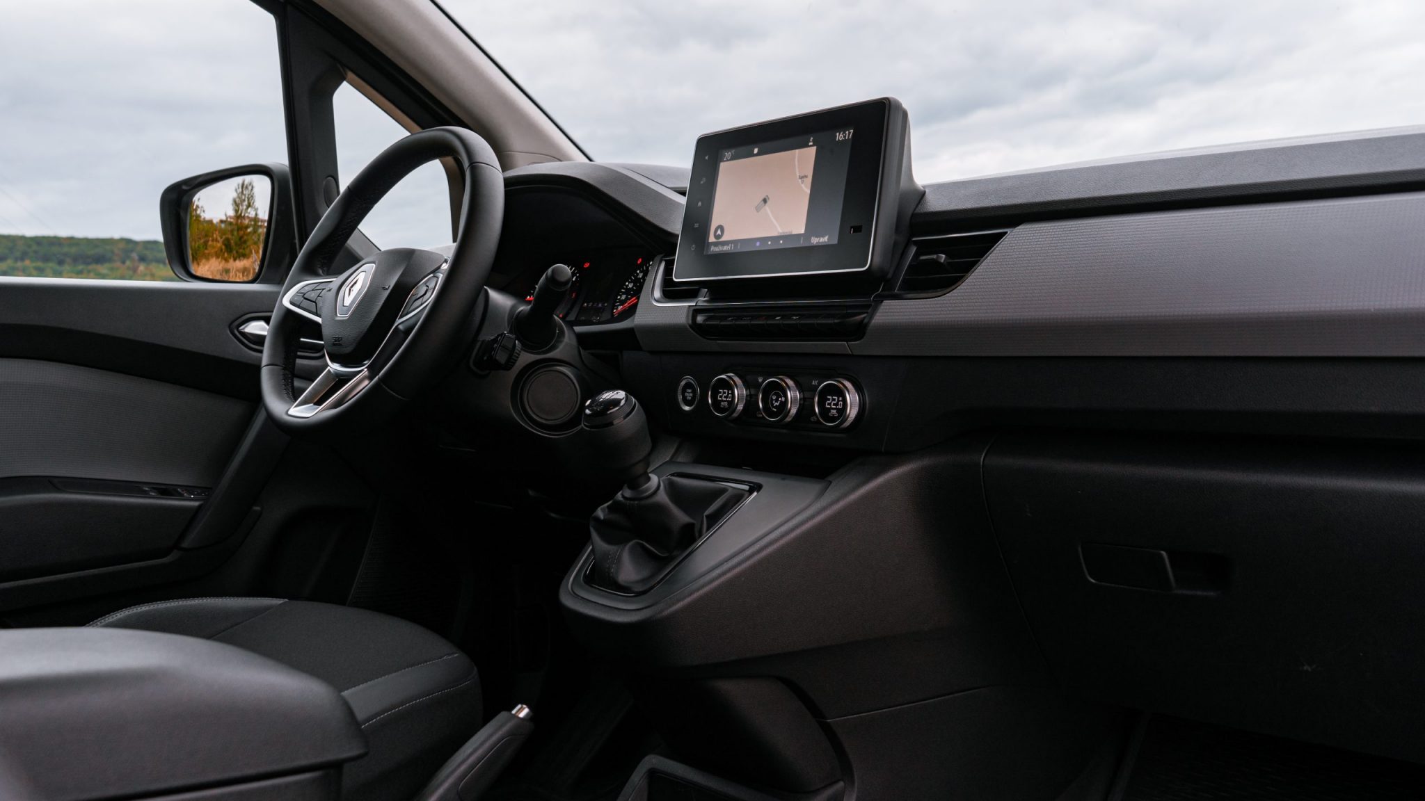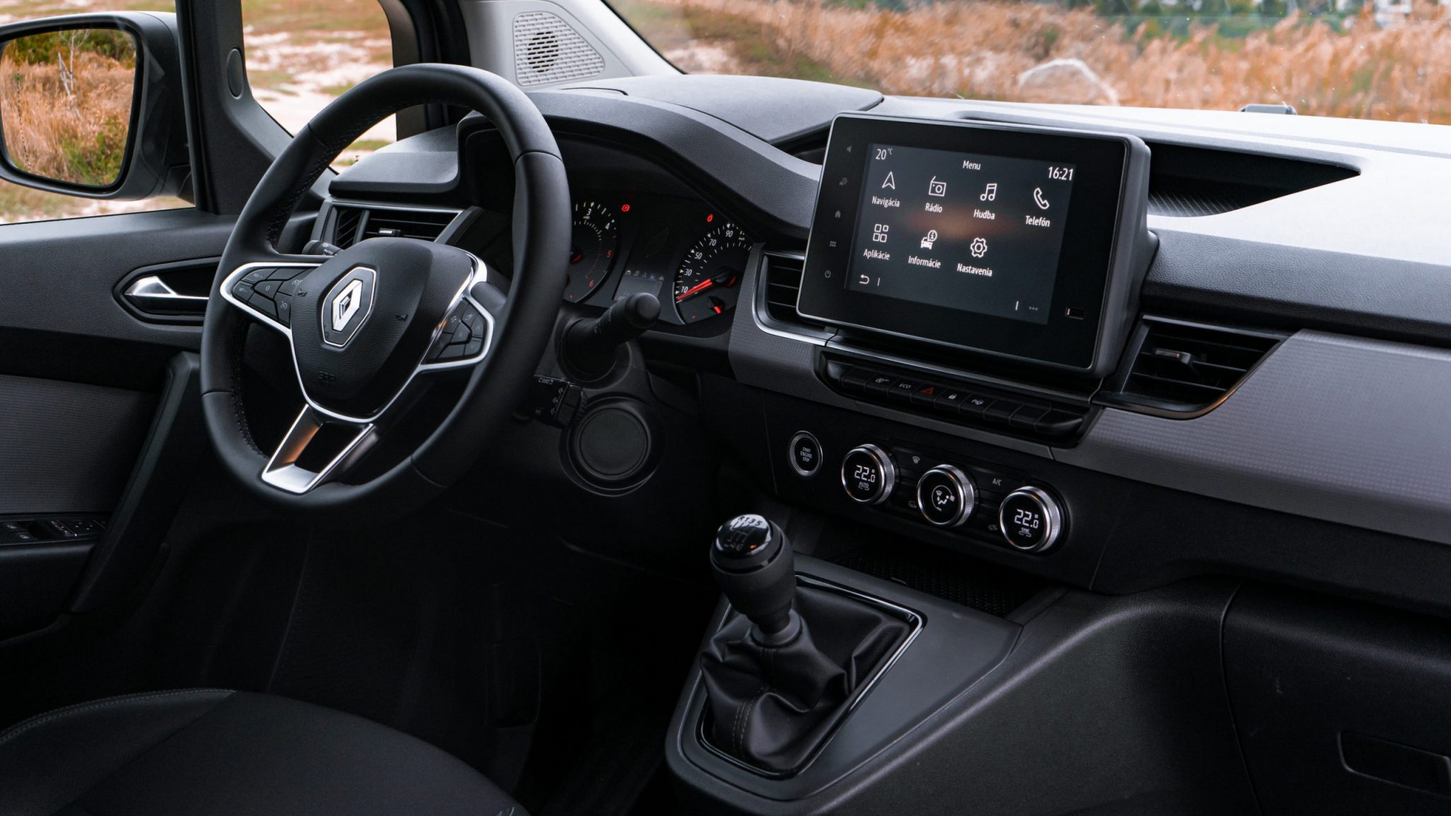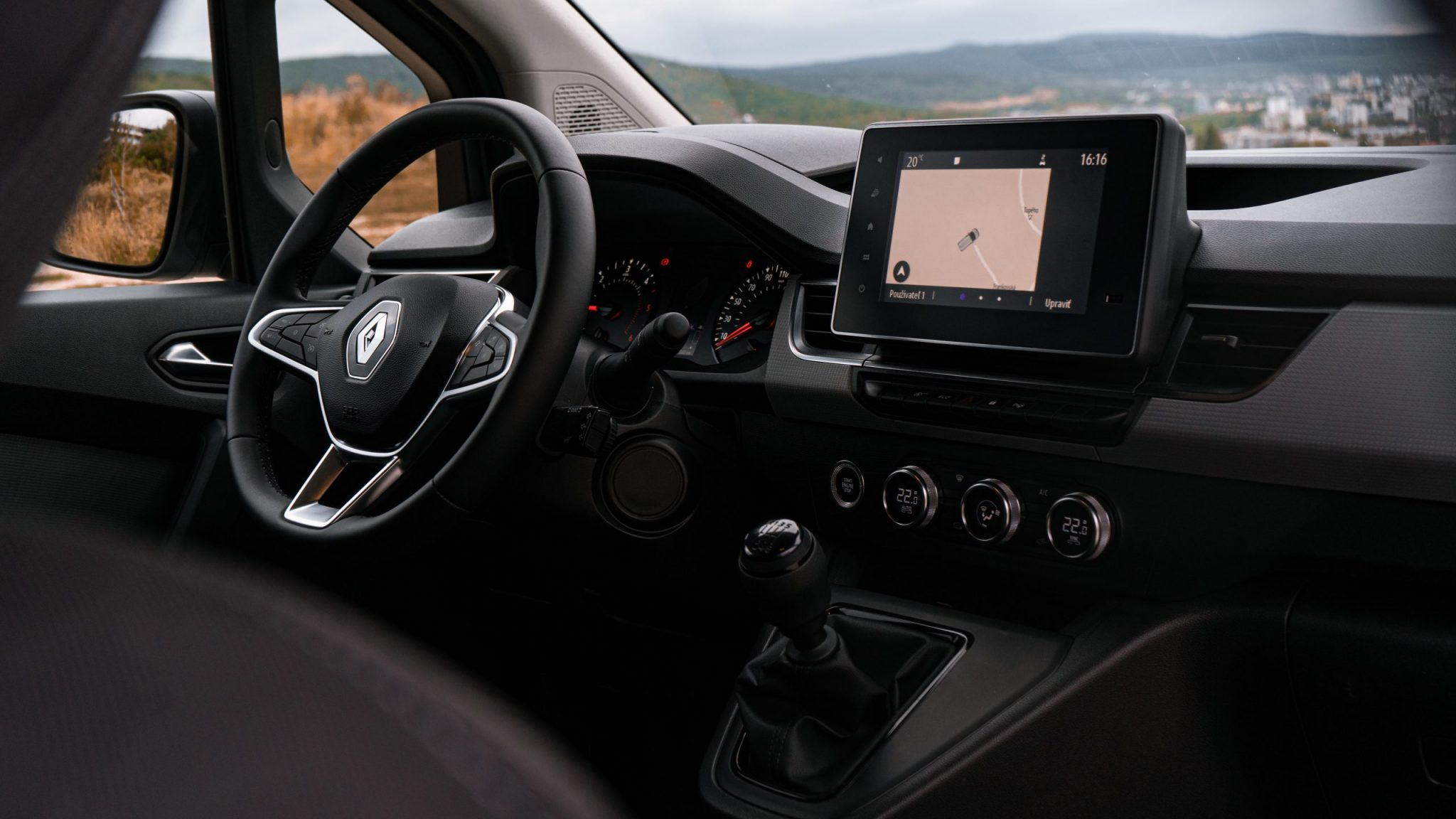 Chválime dobre spracovaný infotainment s rýchlou odozvou a prehľadnou grafikou. Praktické otočné ovládače panelu dvoj-zónovej klimatizácie má Renault zvládnuté na jednotku. Kvantum odkladacích priestorov, množstvo USB portov a nabíjačiek svedčí o praktickej stránke tejto dodávky.