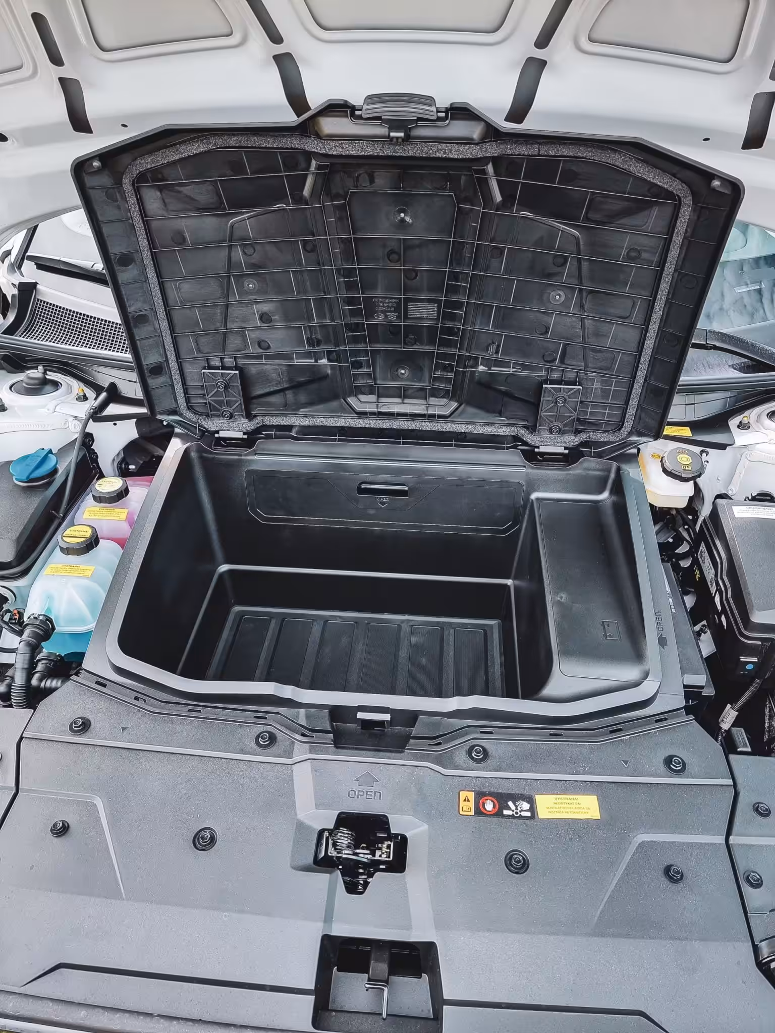 Tou najväčšou doménou nového IONIQu je jednoznačne vnútorný priestor. To čo ponúka svojim pasažierom je ohromujúce a do značnej miery za to vďačí práve elektrickej platforme. Keď už máme celú recenziu na ruby, začnime batožinovým priestorom. Ten má objem až 527 litrov a po sklopení vás čaká takmer 1 600 litrov, pričom pod prednou kapotou sa nachádza vanička na odloženie káblov s objemom ďalších 24 litrov.