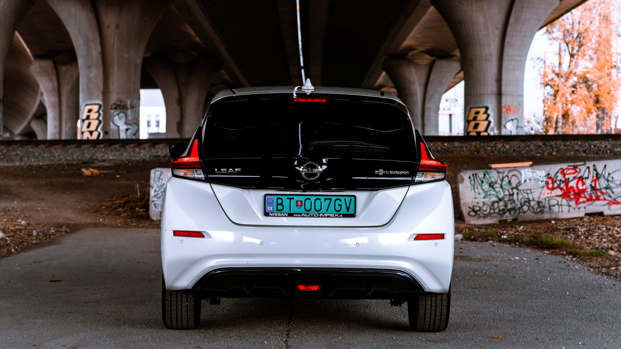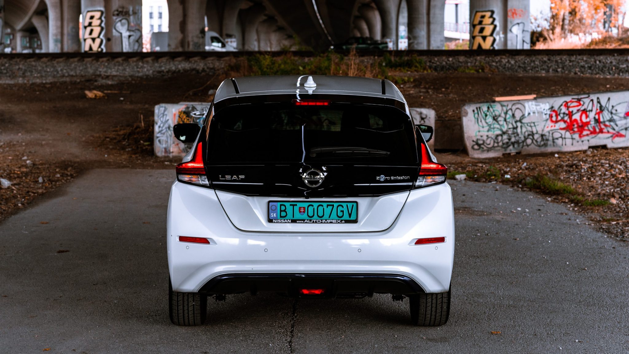 Bočný profil vozidla jednoznačne neprináša významné zmeny v dizajne a plynulý prechod do zadnej časti naznačuje, že Leaf ponúkne nejaký priestor aj pre posádku vzadu a v batožinovom priestore. No k interiéru sa ešte dostaneme. Nad zadným oknom máme jemný spojler s integrovaným brzdovým stredovým svetlom. O fakte, že ide o elektrifikované vozidlo informuje nie len zelená farba ŠPZ ale aj nápis Zero Emission.