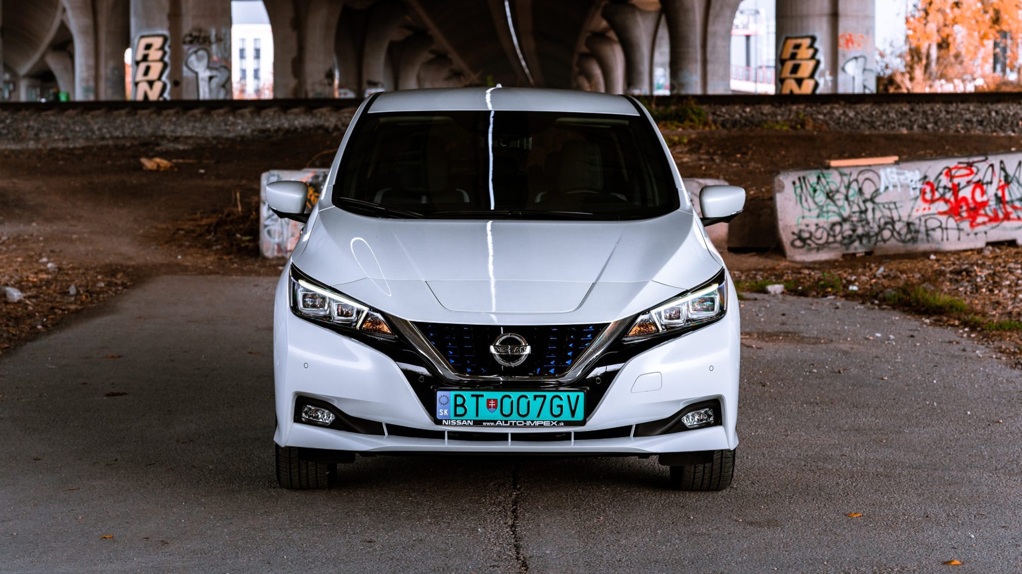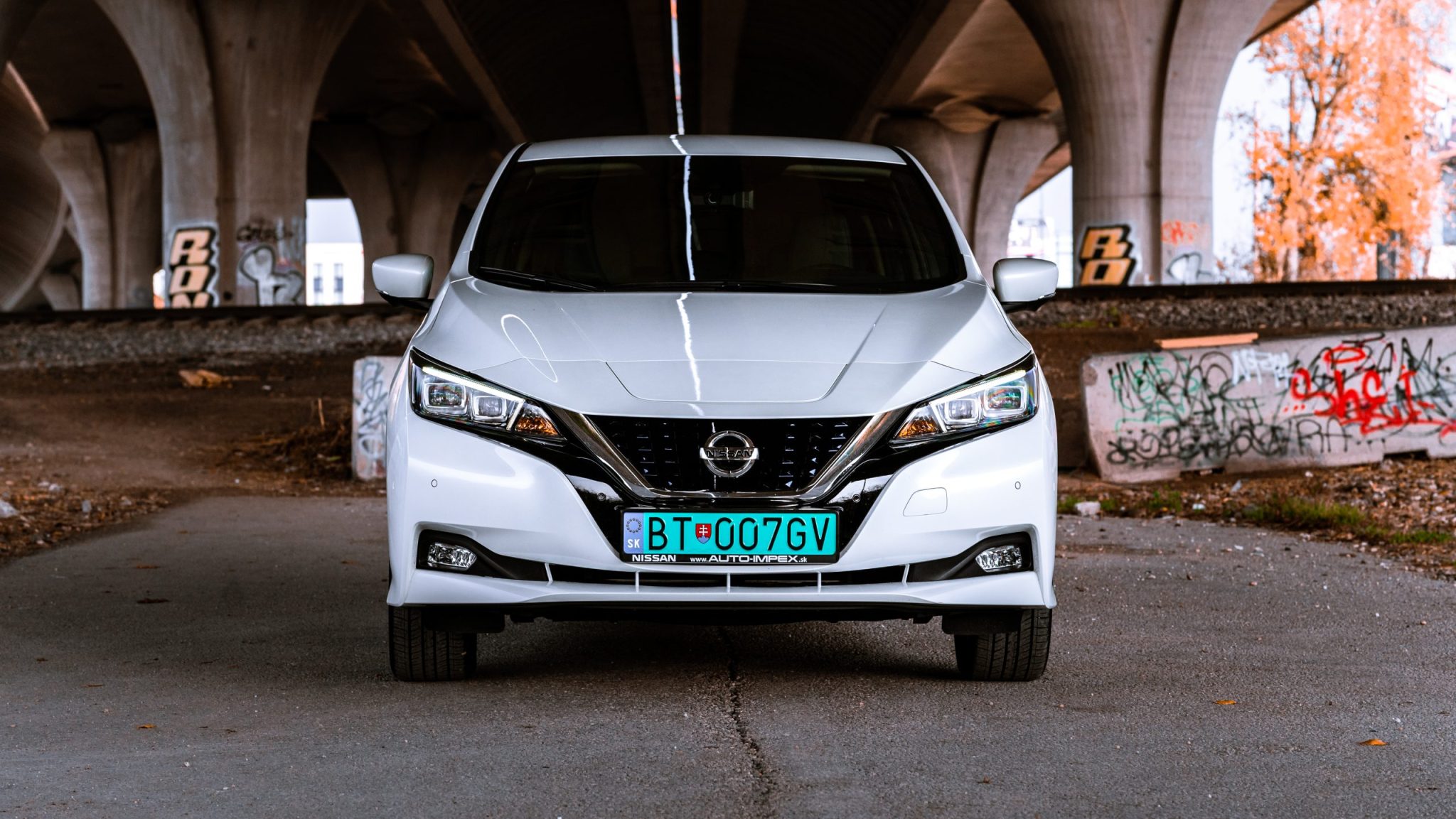 Začnime pekne po poriadku. Už prvý model Nissan Leaf ako neprehliadnuteľný element našich ciest brázdil výhradne po mestách. Jeho cieľ bol ukázať inakosť oproti autám so spaľovacím motorom. No a zmien sa veľa neudialo ani v dnešnom Leafe. Kapota sa prudko zvažuje od predného okna a na špičke nosa sa nachádza miesto s nabíjacími portami. Na prednej maske je výrazné logo Nissan a celkový predný look vozidla dopĺňajú svetlomety. Tie priamo nadväzujú na čiernu líniu pod maskou.