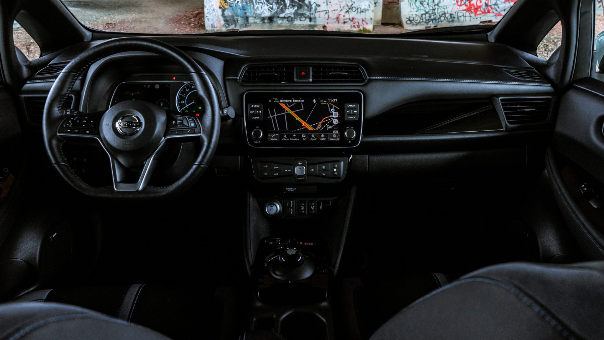 Na prístrojovom štíte nájde vodič všetky potrebné informácie a oceňujem kvalitné zobrazenie percent nabitia batérie. Samozrejme sú k dispozícii informácie o prejdenej trase, okamžitej spotrebe, priemernej rýchlosti a mnohé iné. Infotainment má dotykový displej s uhlopriečkou 8 palcov. Štandardom je prepojenie Apple CarPlay a Android Auto. Prepracovanie možno nie je z tej najvyššej ligy, ale nájdete v ňom všetky potrebné informácie a to sa cení. Zadné sedadlá v modeli Leaf sú pomerne komfortné a poskytujú dostatok miesta pre posádku v rámci triedy, v ktorej sa Leaf nachádza.