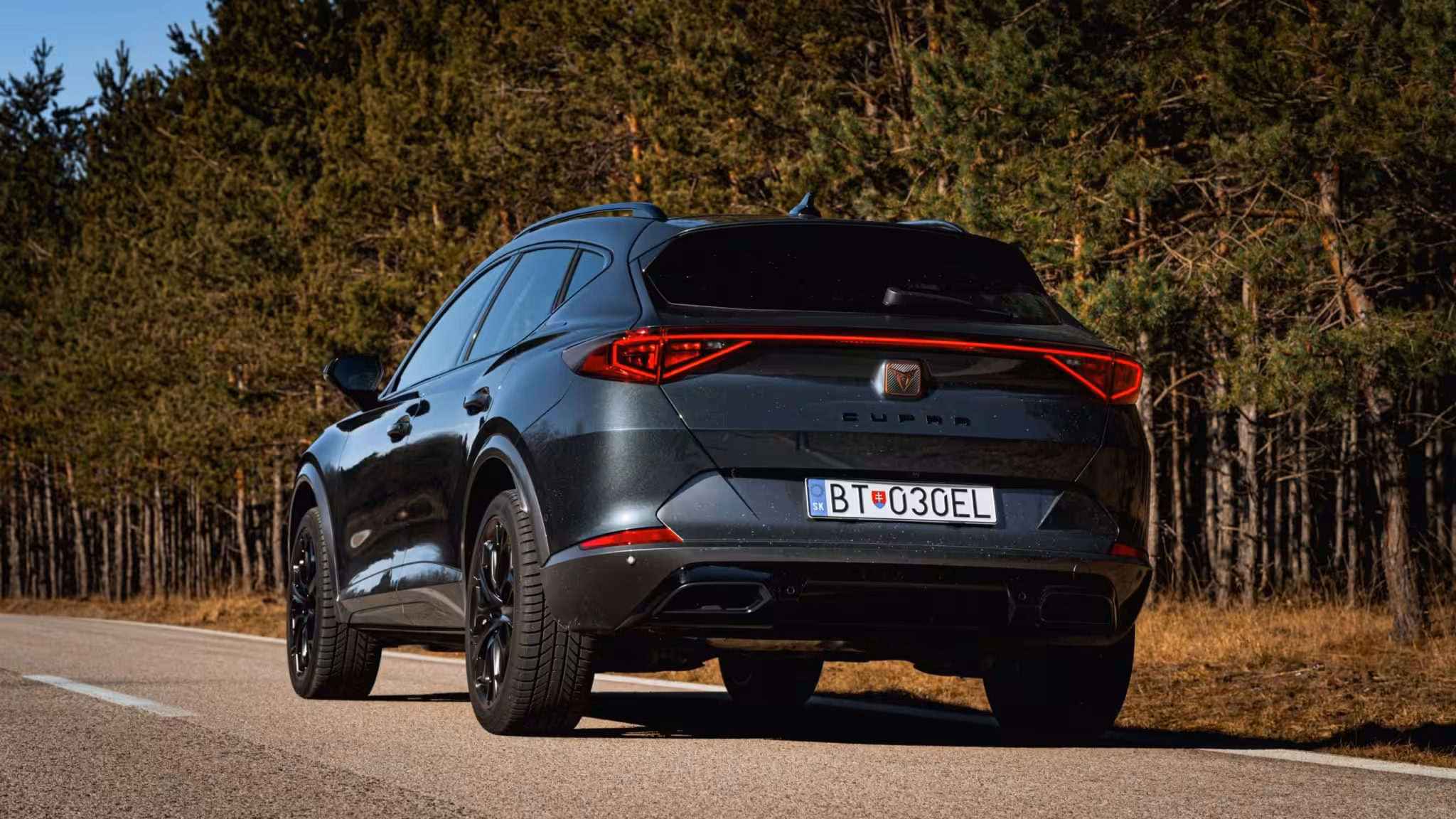 Silueta modelu Formentor je sexy. Zadná časť plynule klesá a pripomína SUV kupé. Zadná časť zaujme spojeným zadným podpisom svetiel a v noci aj príjemnou grafikou, ktorou vás Formentor privíta. Nápis Cupra na zadnom veku batožinového priestoru ešte viac vzbudí zvedavosť ľudí, ktorí tento model nepoznajú. Cupra jednoducho modelom Formentor dizajnovo trafila do čierneho. Aj keď opäť treba podotknúť, že názor na dizajn patrí medzi tie subjektívne.