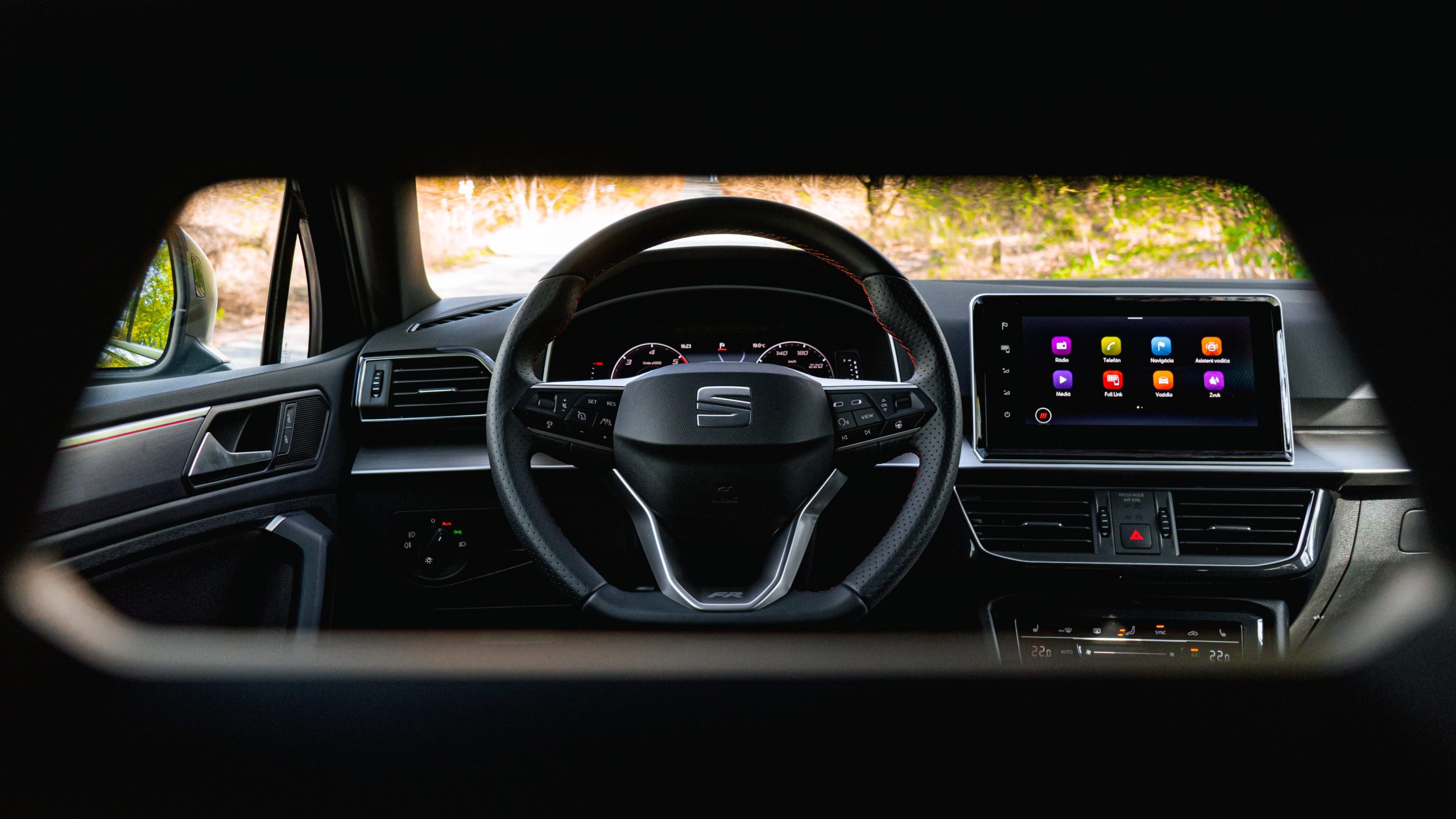 Príjemným zistením bolo domontované elektronické ťažné zariadenie, za čo má u mňa SEAT bonusový bodík. V FR výbave však nájdete všetko, čo využijete, aj nevyužijete. Športové sedadlá so skvelým vedením, bezdrôtové nabíjanie telefónu, podporu Apple CarPlay / Android Auto, vyhrievané sedadlá, vyhrievané čelné sklo (!), bezpečnostné systémy a mnoho ďalšieho. Pokiaľ sa teda radíte k ľudom, ktorých koncern VW – Škoda moc nepriťahuje, určite sa nenechajte odradiť, nakoľko sa jedná o tiché, priestranné a pohodlné auto.