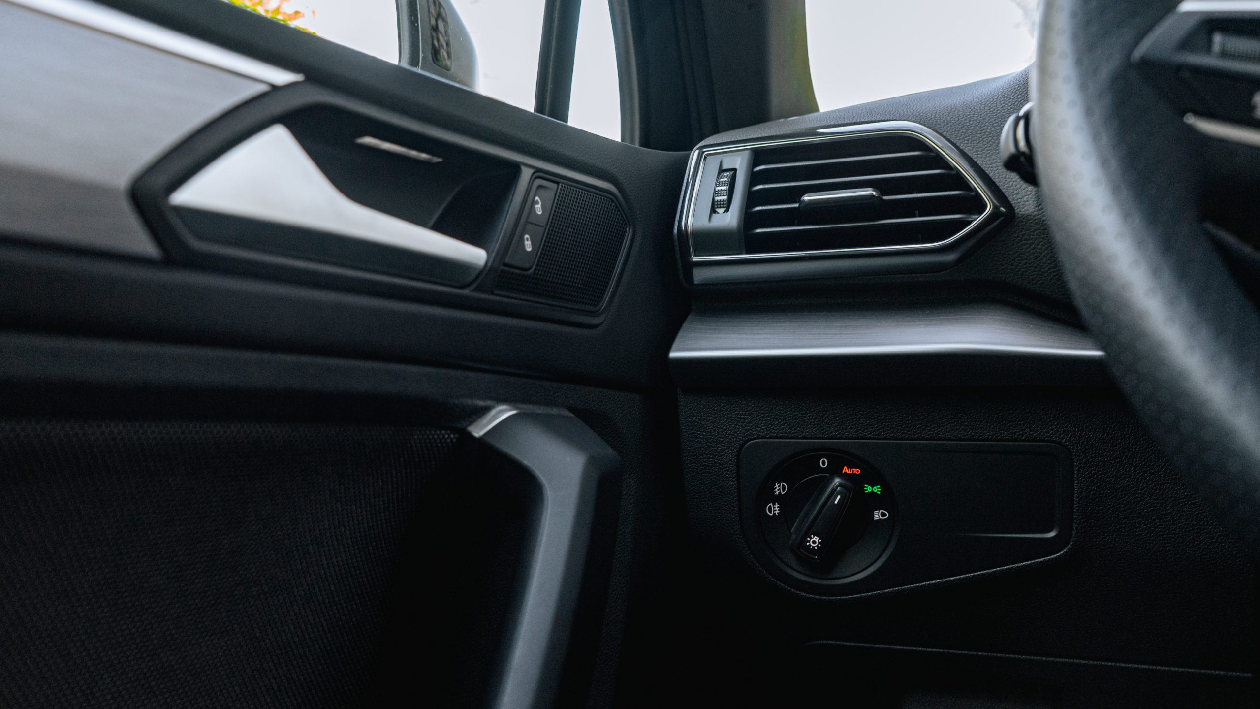 Štandardom oproti konkurencii je 10,25“ digitálny prístrojový štít, ktorý nahrádza klasické analógové budíky. Tento displej si samozrejme viete navoliť podľa seba prostredníctvom jedného tlačidla – View. Palubná doska pôsobí skôr nostalgicky, než inovatívne. Nájdete stále dotykové tlačidlá s dobrou ergonómiou. Naozaj. Akonáhle sadnete, viete čo máte kde stlačiť. Klíma panel je oddelený od zábavného 9,2“ infotainmentu. Toto naozaj kvitujem, nakoľko stále som sa nezžil s nastavovaním klimatizácie na displeji. Pri tomto modely sme však už nemali otočné kolieska, ktoré „špatili“ dojem prémiovosti.