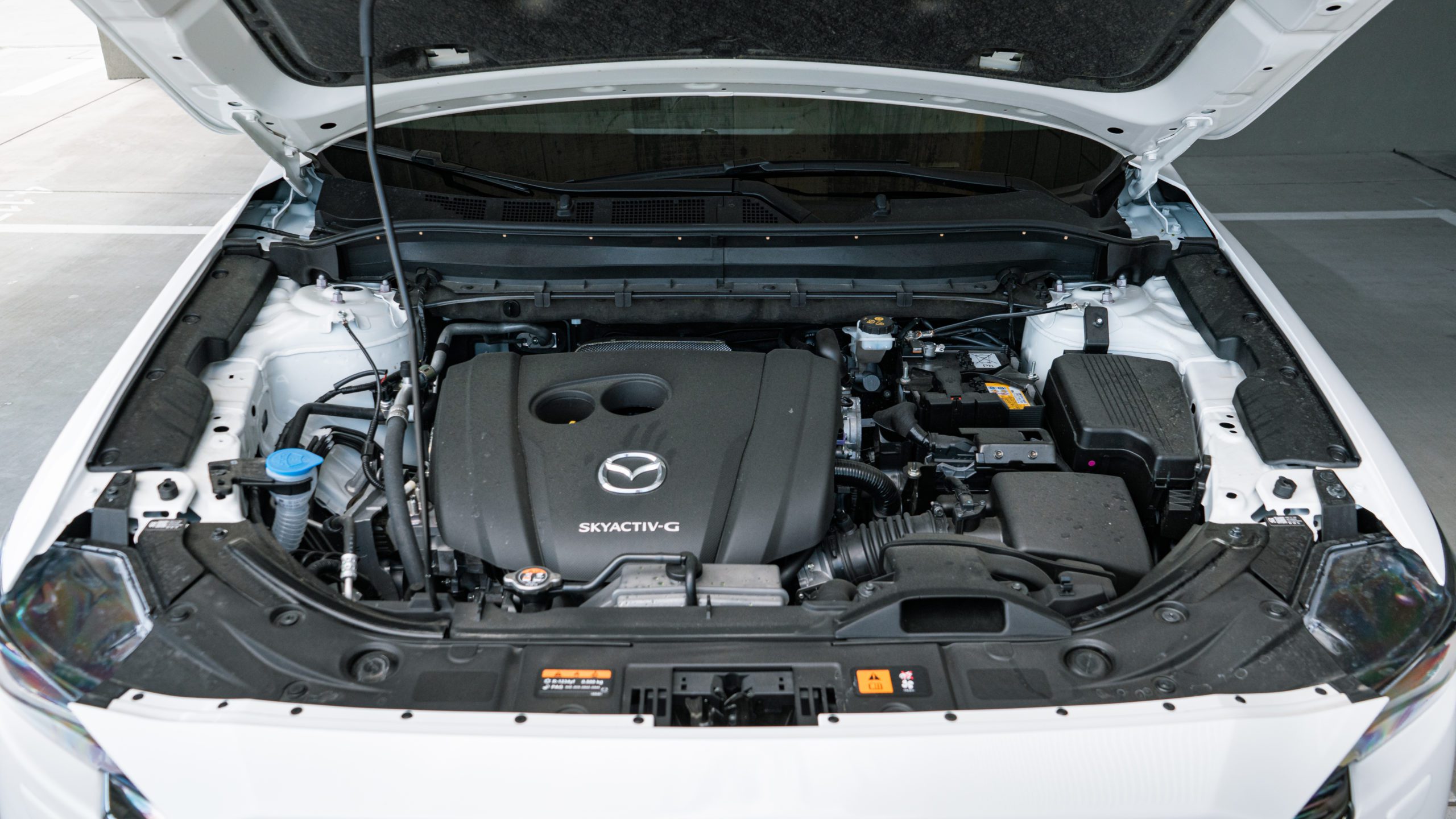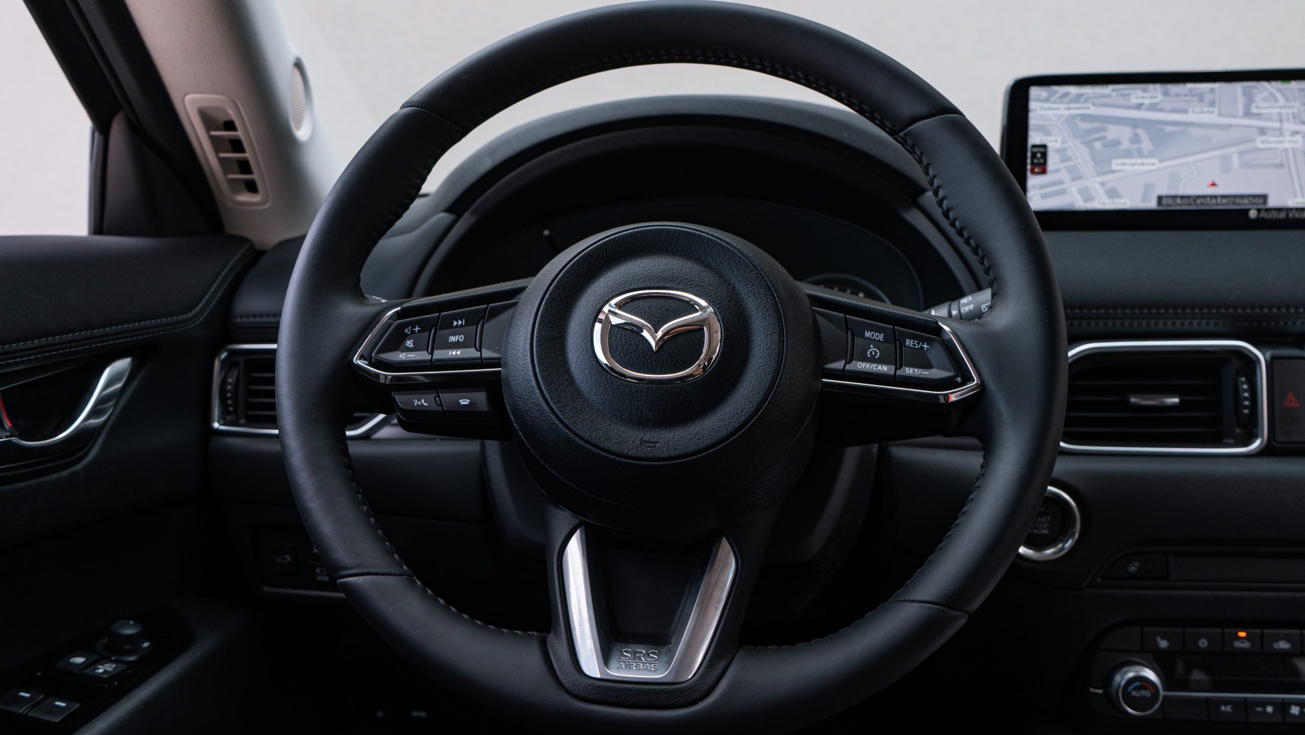 Každý, kto príde do prvého kontaktu s nejakým súčasným modelom Mazdy sa čuduje, ako pôsobí interiér prémiovo. Na to, že sedadlá sú potiahnuté kvalitnou kožou sme si už zvykli, testovaná verzia mala nečakane látkou potiahnuté sedadlá. A vôbec to nepôsobilo zle alebo lacno. Kvalitné sedenie ostalo zachované napriek zmene použitého materiálu. Mimochodom, pri modernizácii sa využila ďalšia generácia architektúry Mazda Skyactiv-Vehicle Architecture, ktorá ešte viac vylepšuje karosériu, odpruženie a sedadlá s cieľom zvýšiť jazdný komfort a eliminovať únavu. Výrazne sa tiež znížila prevádzková hlučnosť, najmä pri jazde na nerovných povrchoch, akým je napríklad štrková cesta. Mali sme možnosť to vyskúšať pri jazde v daždi a od mokrej vozovky do interiéru neprenikali naozaj takmer žiadne zvuky.