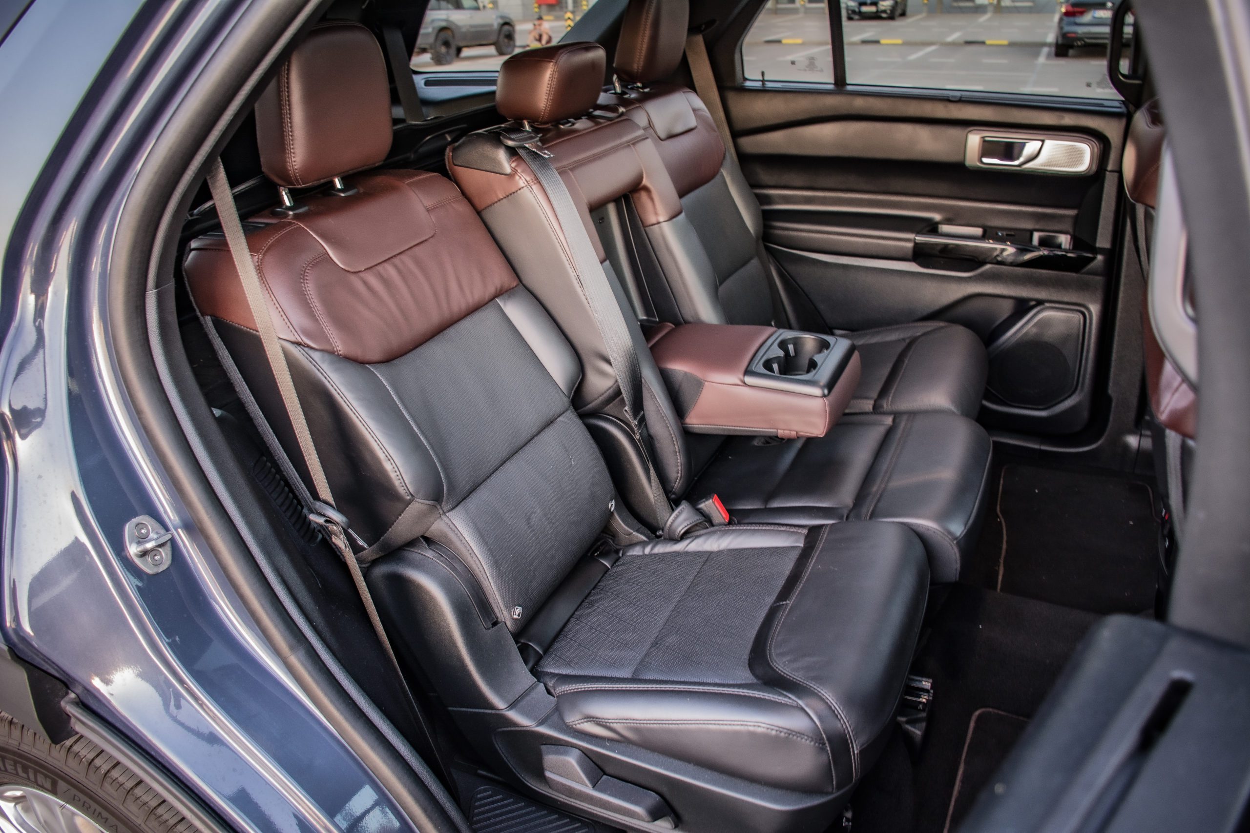Amerika na vás dýcha v každom rohu, masívne madlá pre nastupovanie, veľké odkladacie priestory a typické ovládače. Rovnako ako aj spracovanie a výber materiálov zodpovedá skôr americkým štandardom. Neznamená to však, že Explorer je nekvalitný, veď koniec koncov, palubovka je obšitá kožou a doplnená skutočným dreveným dekorom. Európsky luxus a precíznosť však nečakajte.
