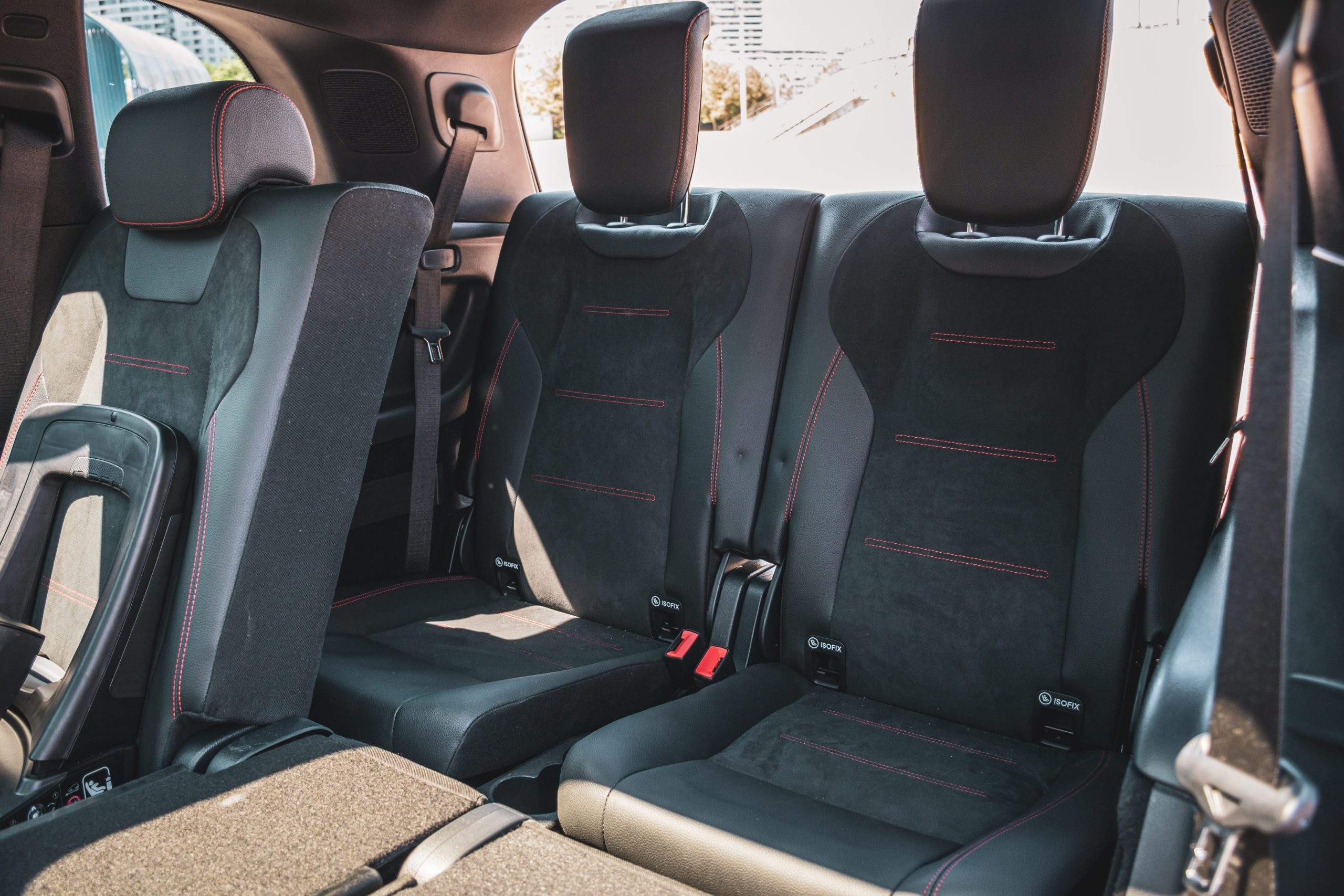 Dvojicu ISO-FIXov nájdete aj v tretej rade sedadiel. Táto zóna je určená vyslovene pre deti alebo nižších pasažierov. Jednoduché nie je ani nastupovanie a pokiaľ trpíte ochorením kĺbov, rozhodne to nebude vaša šálka kávy. Musím sa však priznať, že sa mi podarilo do tretieho radu sadnúť. S trochu prikrčenou hlavou som to zvládol a to aj napriek mojej výške 188 centimetrov.
