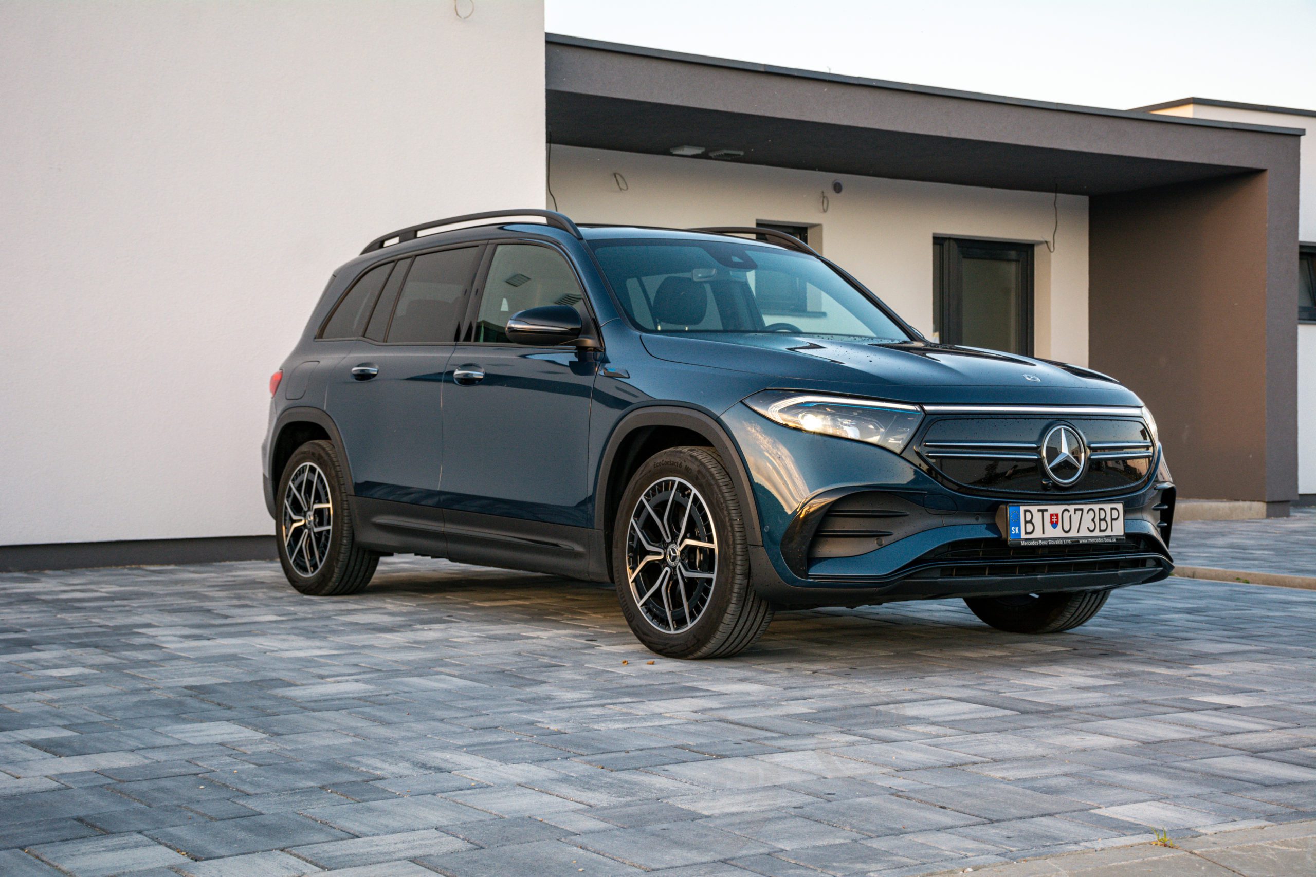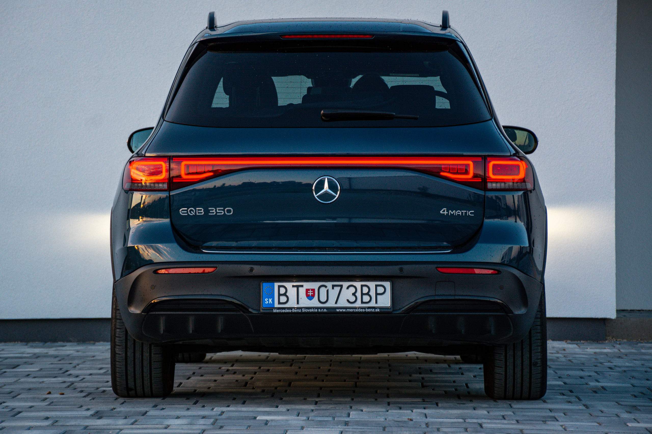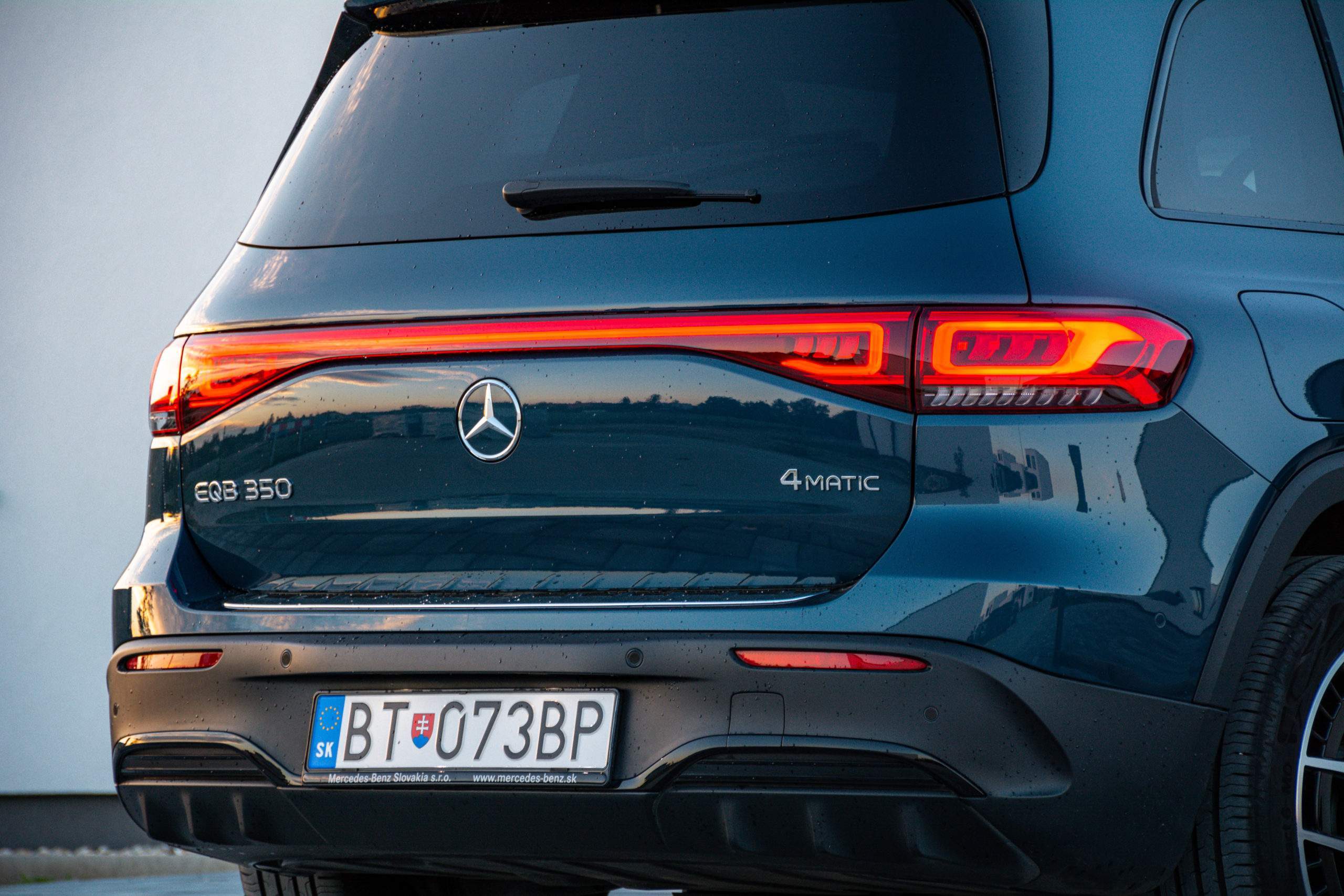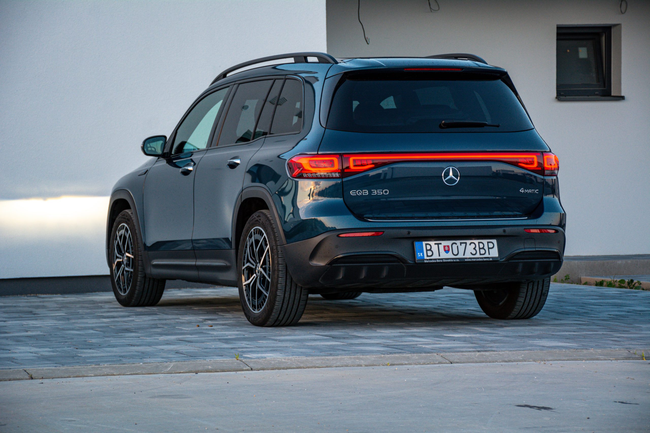Zadné partie viac-menej kopírujú charakterovú linku prepojených svetiel, to sú zároveň signifikantné prvky odlišujúce GLB od EQB. Trieda EQB je rozmerovo veľmi podobná Škode Enyaq, ten však neponúka sedem miest. Kým Enyaq meria 4 649 mm, EQB dosahuje dĺžku 4 684 mm. V prípade šírky je to naopak a EQB so svojimi 1834 mm prehráva v prospech Škodovky so šírkou 1 879 mm. Rázvor nám však dilemu vyriešil a EQB s rozmerom 2 829 milimetrov jasne poráža Enyaq s dĺžkou rázvoru 2 765 milimetrov.