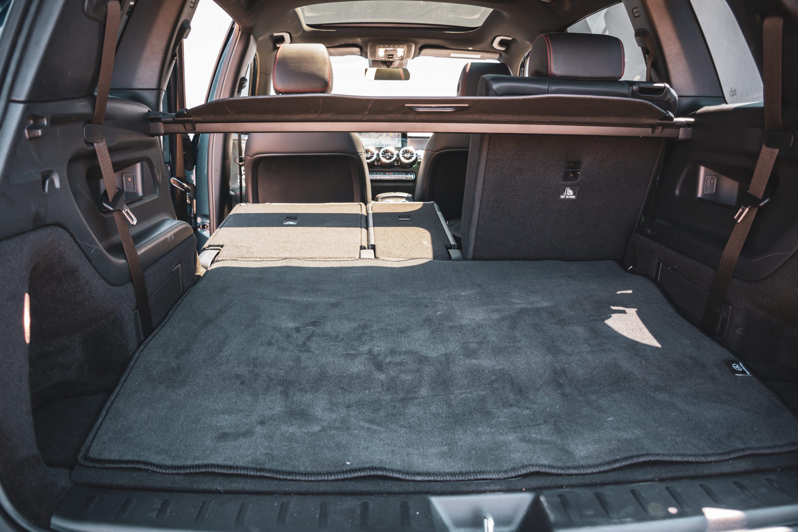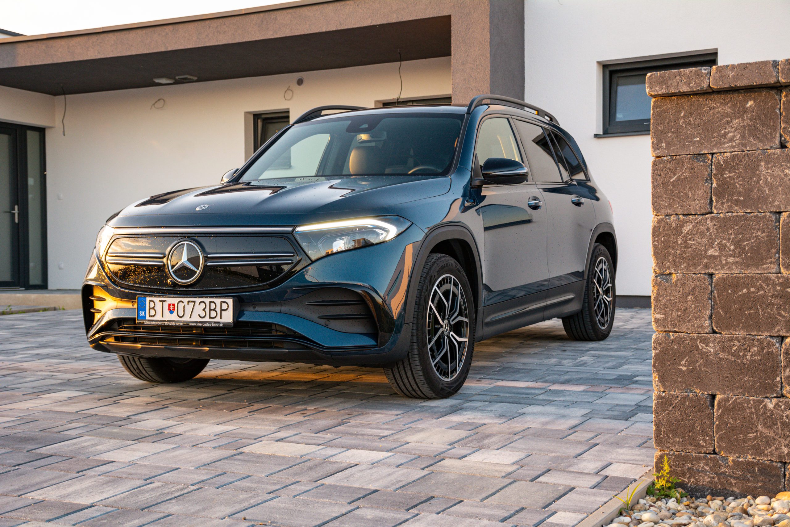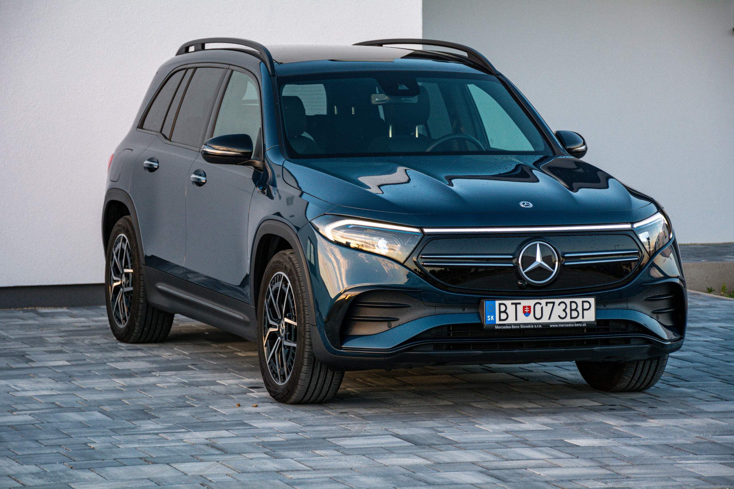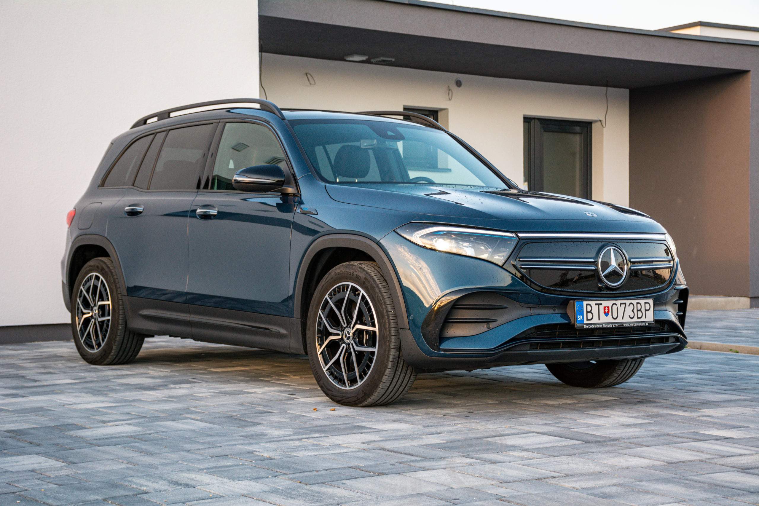 Zadné partie viac-menej kopírujú charakterovú linku prepojených svetiel, to sú zároveň signifikantné prvky odlišujúce GLB od EQB. Trieda EQB je rozmerovo veľmi podobná Škode Enyaq, ten však neponúka sedem miest. Kým Enyaq meria 4 649 mm, EQB dosahuje dĺžku 4 684 mm. V prípade šírky je to naopak a EQB so svojimi 1834 mm prehráva v prospech Škodovky so šírkou 1 879 mm. Rázvor nám však dilemu vyriešil a EQB s rozmerom 2 829 milimetrov jasne poráža Enyaq s dĺžkou rázvoru 2 765 milimetrov.