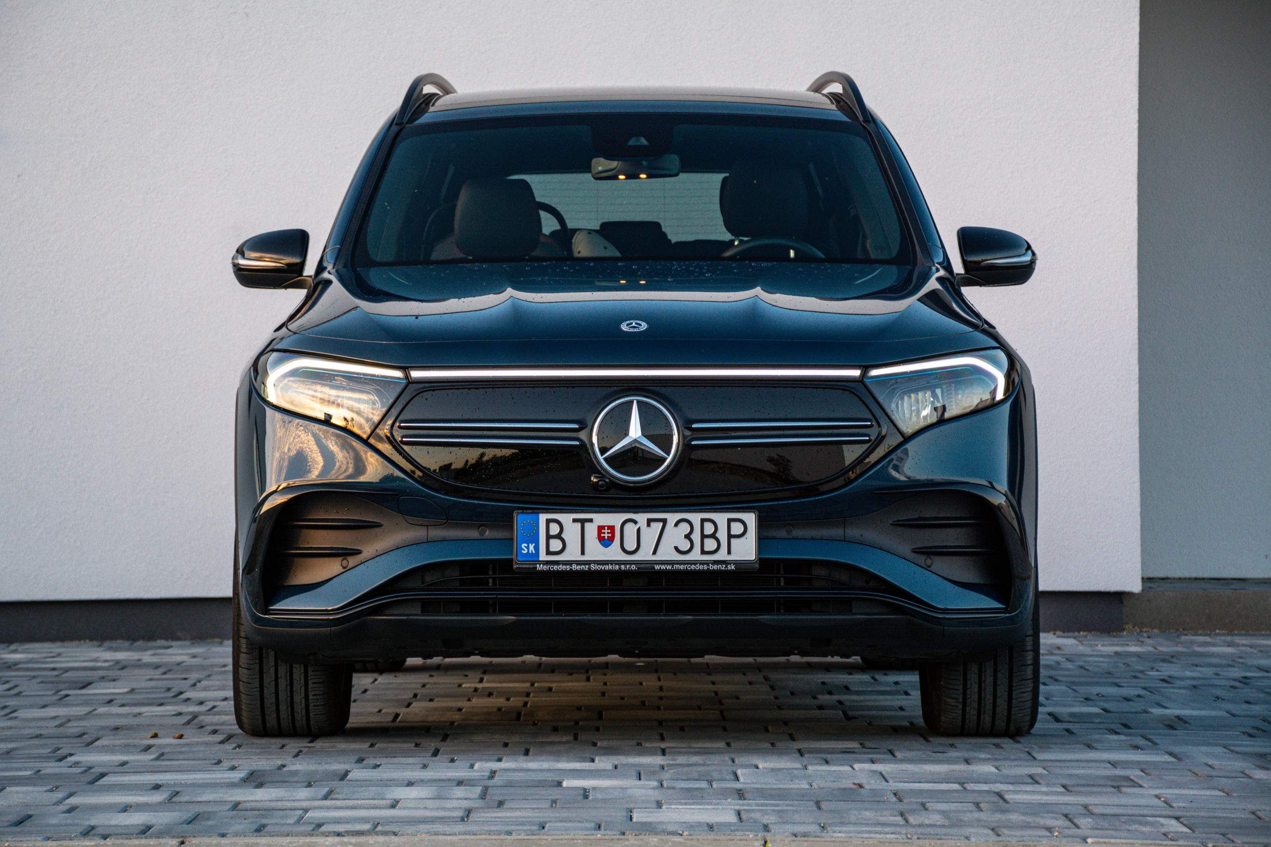Oba modely sú prakticky na nerozoznanie, rozdiel spoznáme až v tabuľkách, aj to len vďaka mierne odlišným plastom. Dizajn je skutočne subjektívny, ale asi nám dáte za pravdu, že EQB súťaž krásy nevyhrá. Prednej časti dominuje prepojená svetelná linka, ktorá je typická pre elektrické modely Mercedes. Škoda, že stredová časť svieti len vtedy, keď aj stretávacie svetlá.