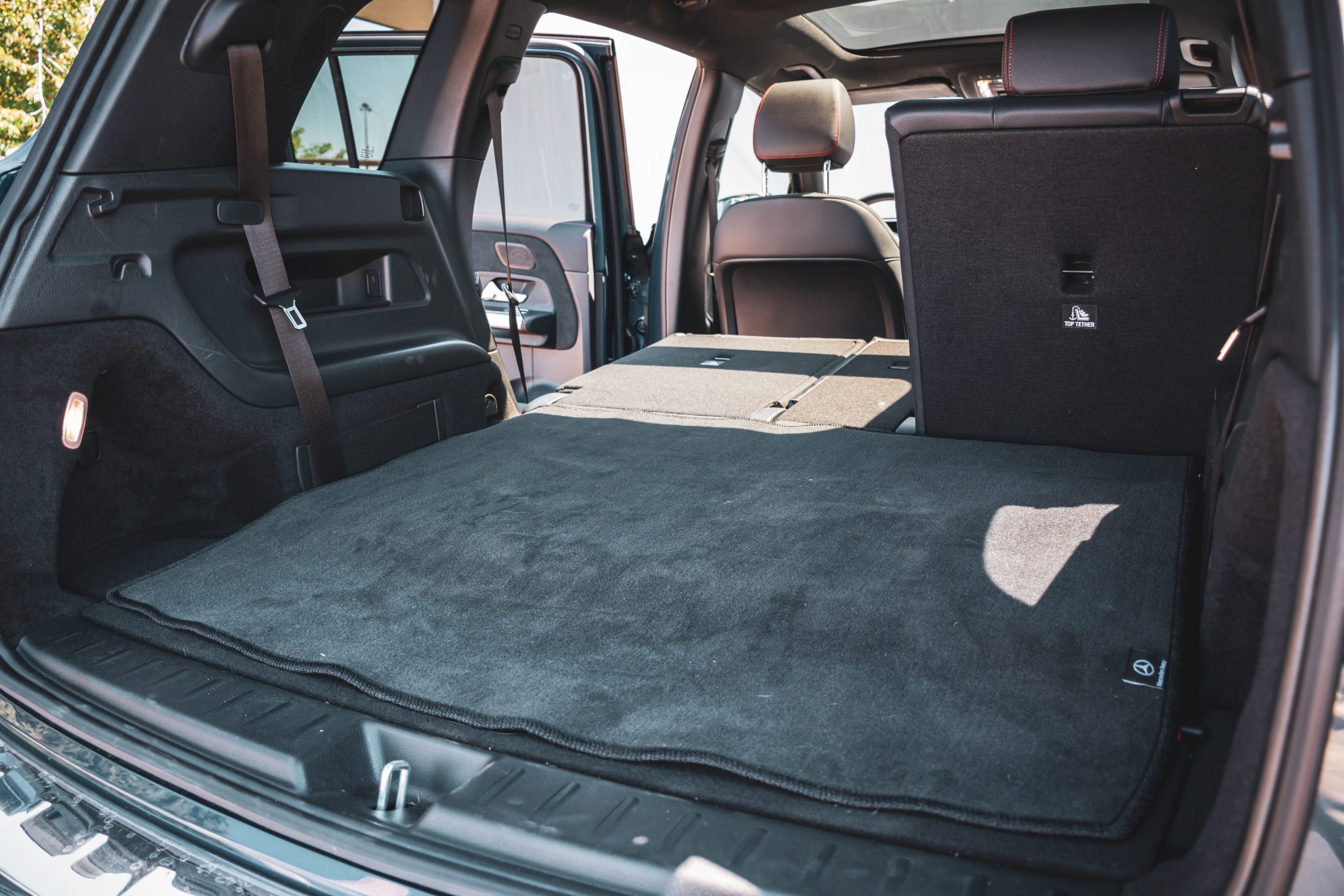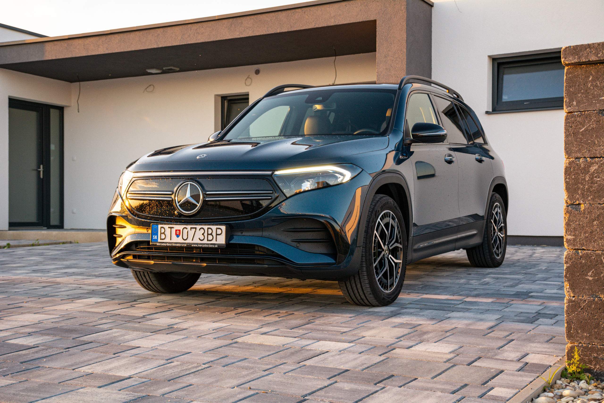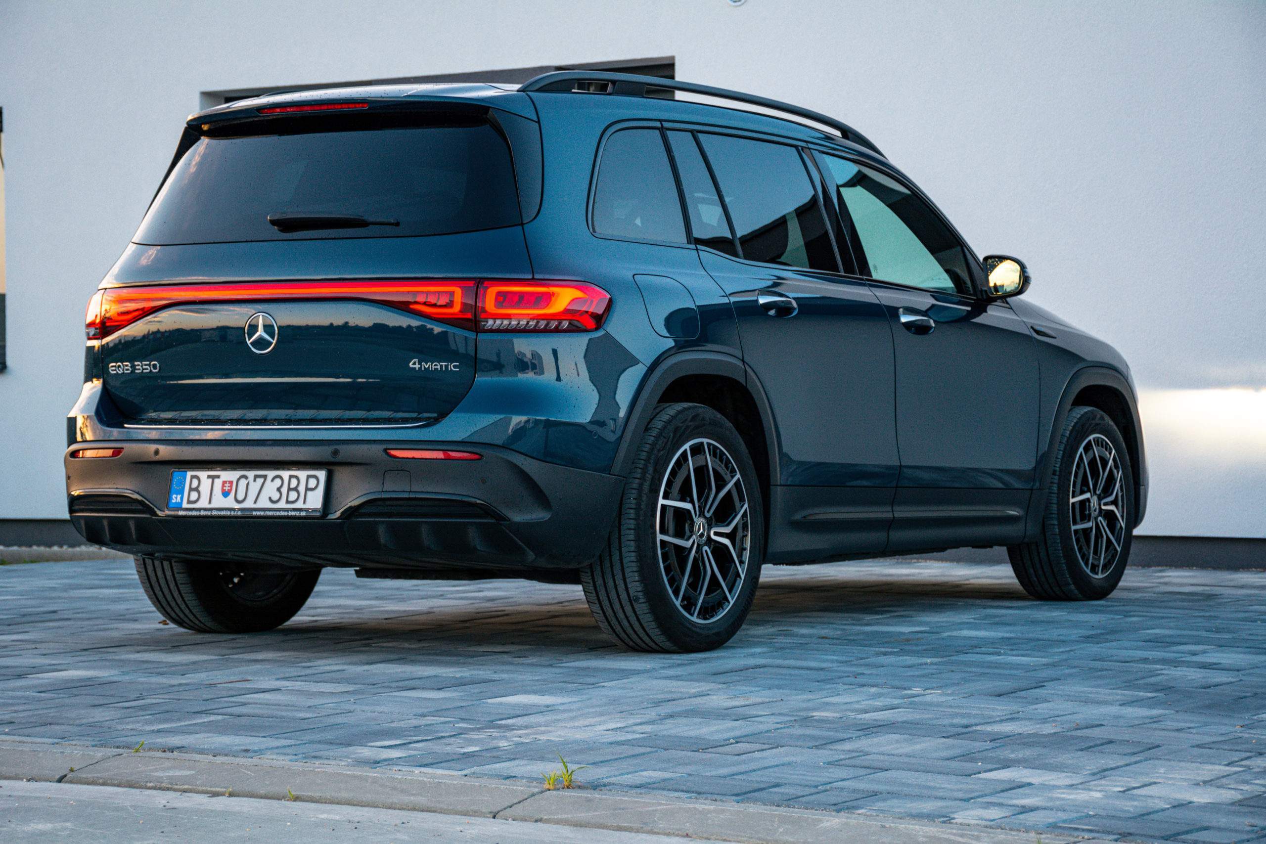 Zadné partie viac-menej kopírujú charakterovú linku prepojených svetiel, to sú zároveň signifikantné prvky odlišujúce GLB od EQB. Trieda EQB je rozmerovo veľmi podobná Škode Enyaq, ten však neponúka sedem miest. Kým Enyaq meria 4 649 mm, EQB dosahuje dĺžku 4 684 mm. V prípade šírky je to naopak a EQB so svojimi 1834 mm prehráva v prospech Škodovky so šírkou 1 879 mm. Rázvor nám však dilemu vyriešil a EQB s rozmerom 2 829 milimetrov jasne poráža Enyaq s dĺžkou rázvoru 2 765 milimetrov.