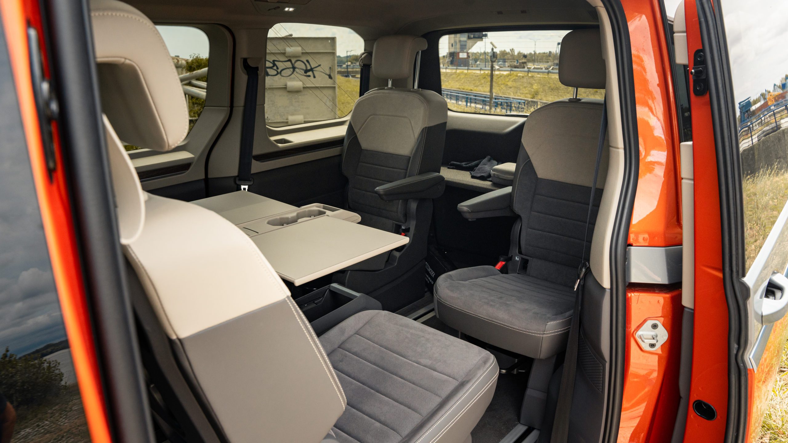 Počet sedadiel je viazaný nielen na výbavu, ale predovšetkým na ich tip samotný. Multivan tak môže byť 5,6 alebo 7-miestny. Naša konfigurácia s dvojicou sedadiel s integrovanými bezpečnostnými pásmi obsahovala 6 sedadiel. Voliteľný je nielen ich počet, ale taktiež možnosť spomínanej integrácie bezpečnostného pásu, protismerné otočenie či dokonca vyhrievanie. To je po novom k dispozícii pre všetky krajné sedadlá, vďaka špeciálnej vodivej koľajnici.