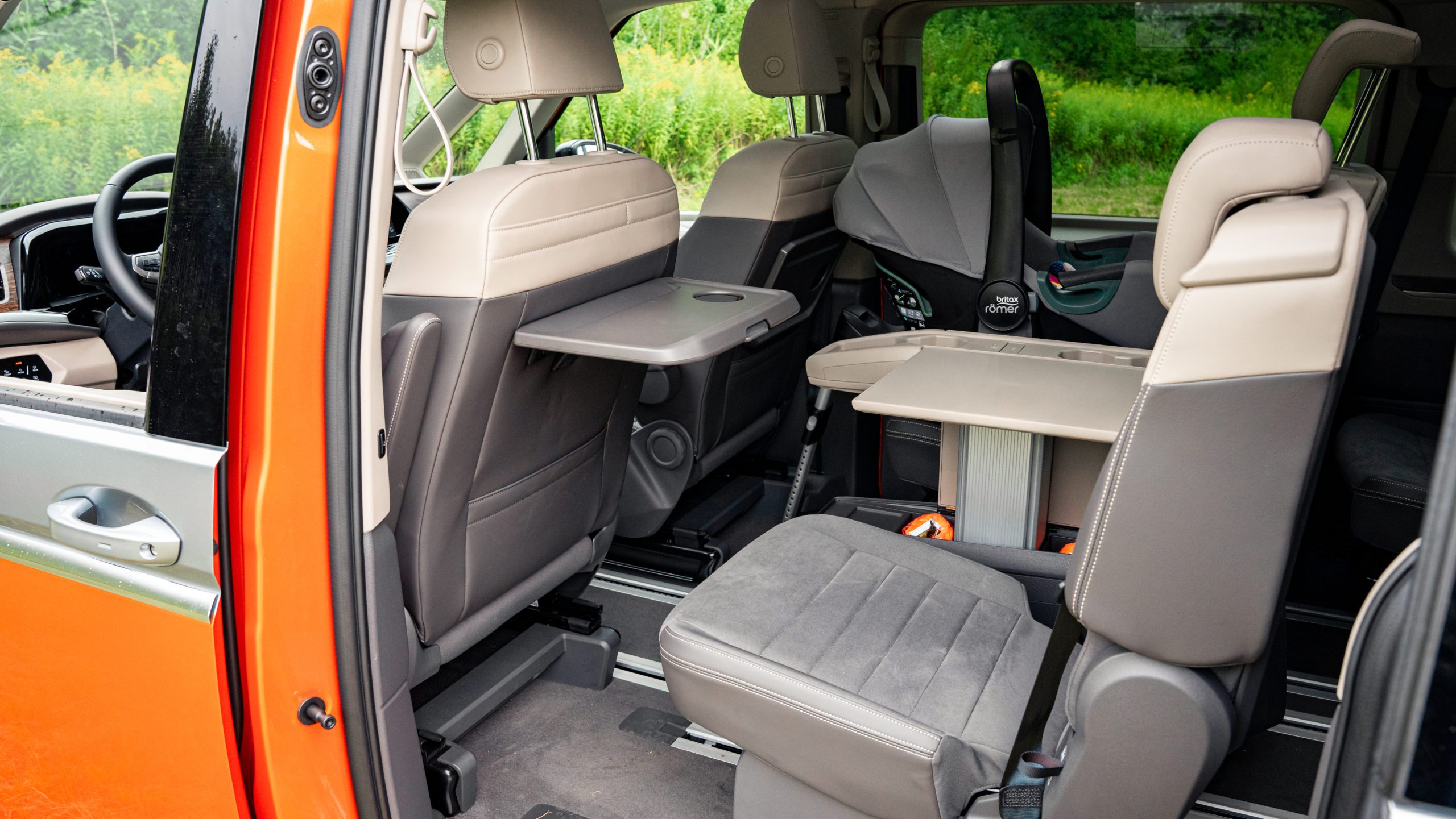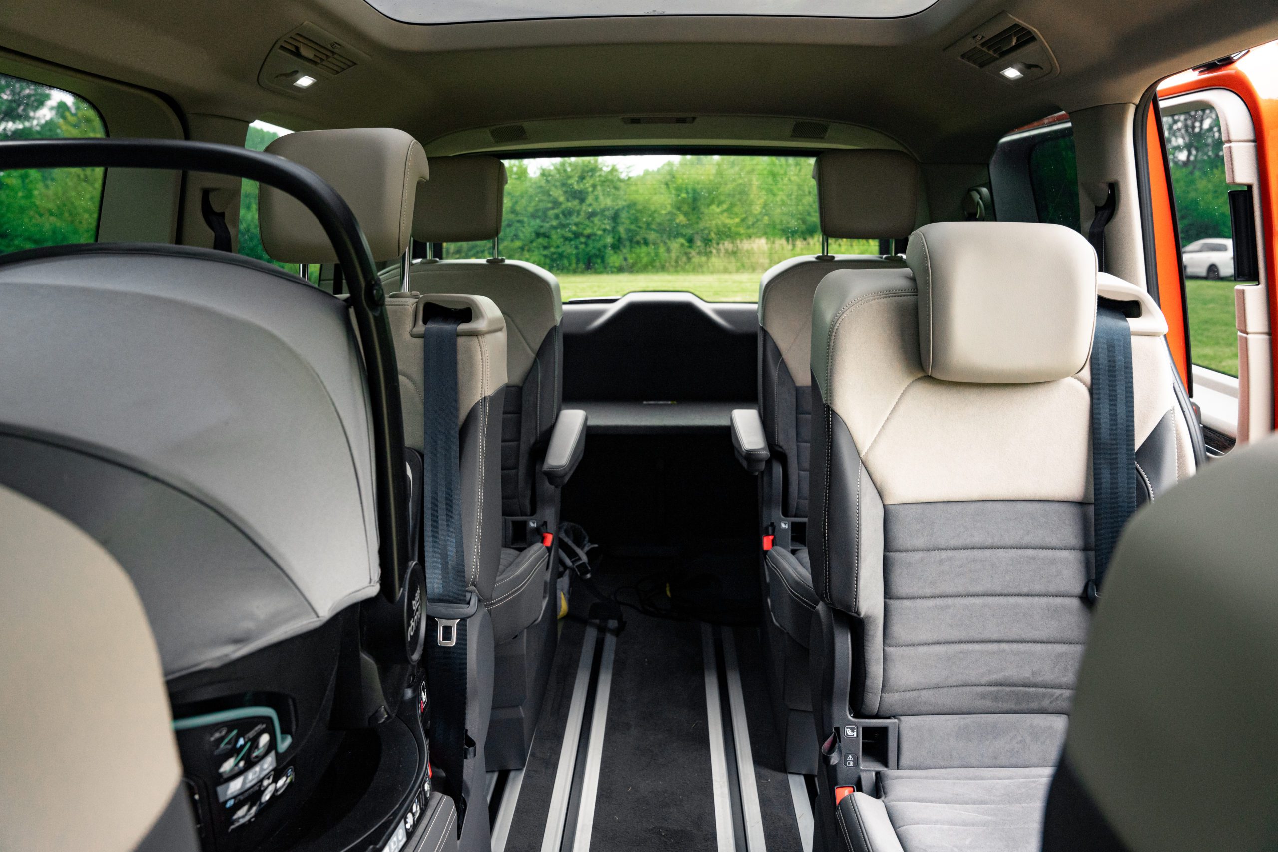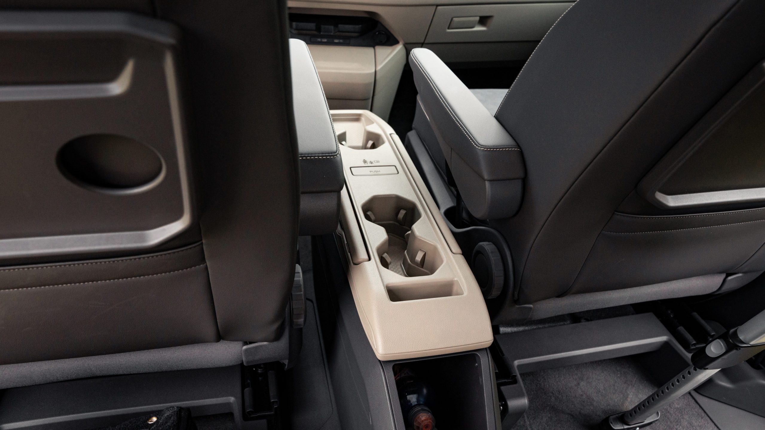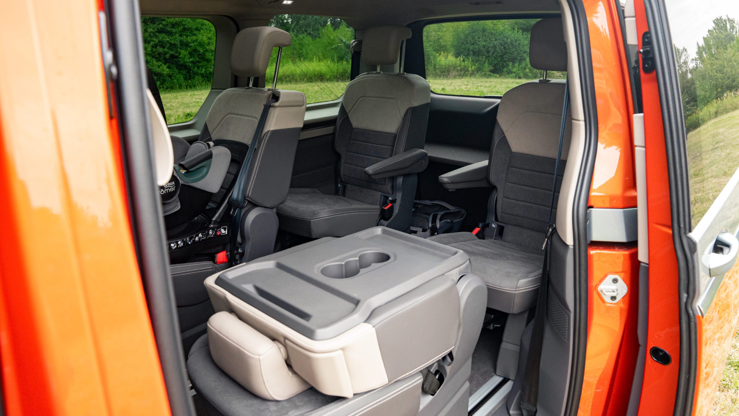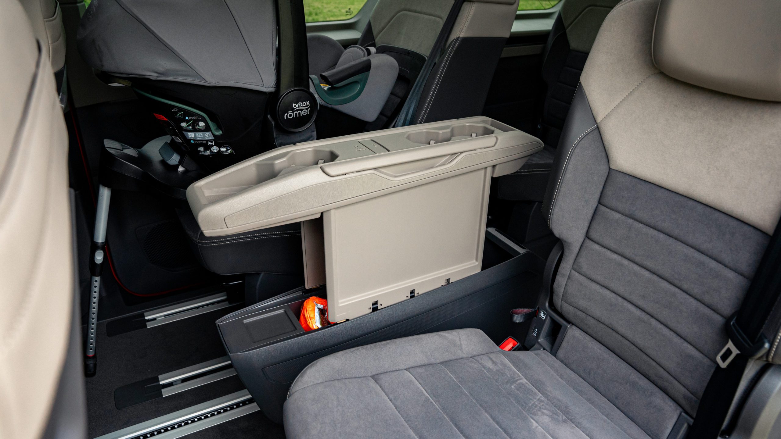 Nový koľajnicový systém umožnil obrovskú mieru flexibility prakticky po celej dĺžke vozidla. Za zmienku rozhodne stojí stredová konzola, ktorú dokážete posúvať od miesta medzi vodičom a spolujazdcom až po posledný rad sedadiel. Táto konzola obsahuje okrem úložných priestorov aj výsuvný stolík a rozhodne odporúčame jej kúpu. Áno, bohužiaľ je súčasťou príplatkovej výbavy.