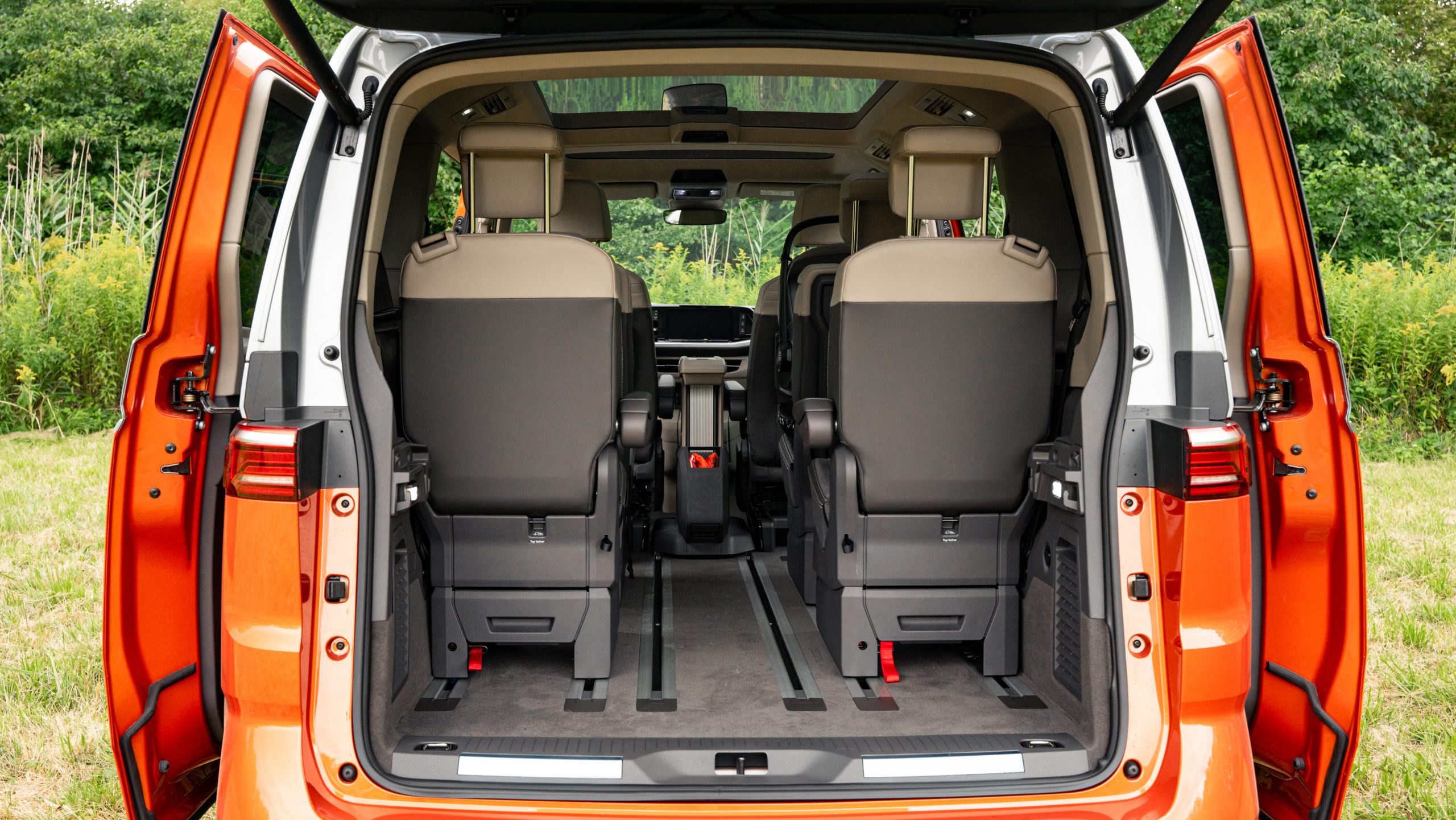 Sympatický vzhľad karosérie priblížil tohto rodinného pracanta k svetu bežných áut, aj preto ho mnohí začali považovať za nástupcu Sharana, no nie je tomu tak, je to stále Multivan. Pochopíte to hneď po otvorení zadných dverí, alias veka batožinového priestoru. To je po novom z plastu, ale keby sme vám to nepovedali, ani by ste o tom nevedeli. A dôvod? Úspora hmotnosti! Veď predsa nový Multivan je o takmer 200 kg ľahší než jeho predchodca.