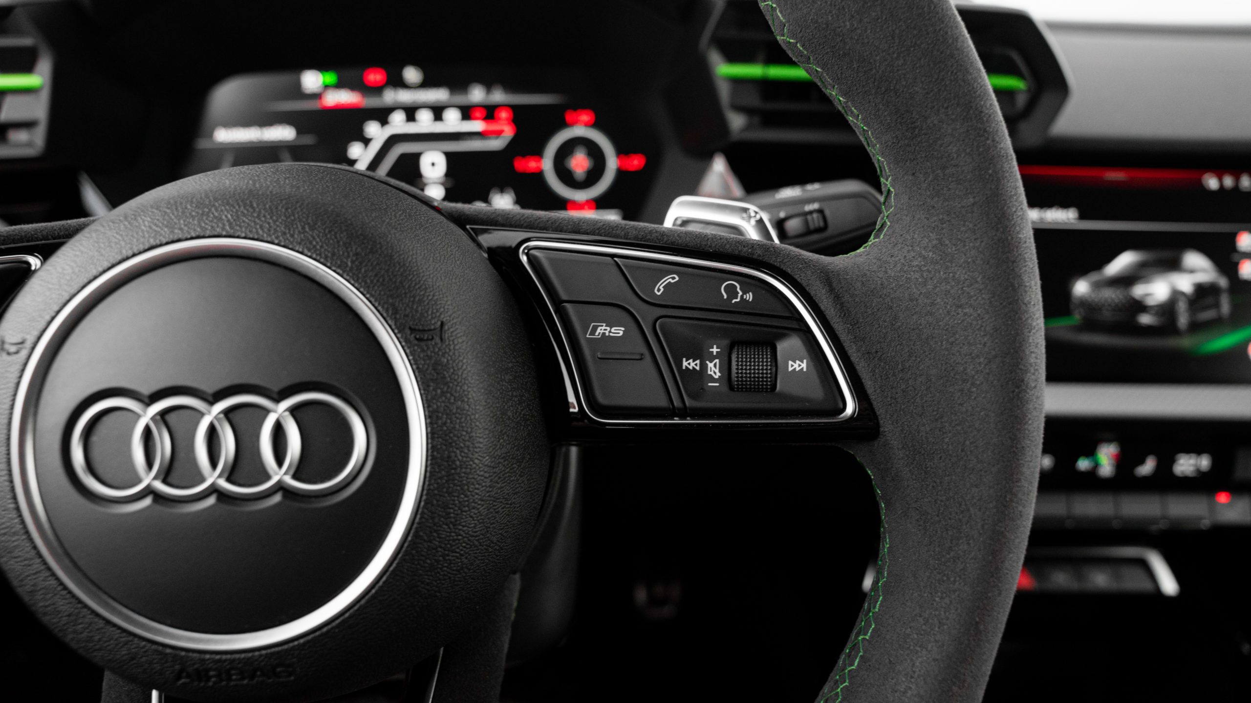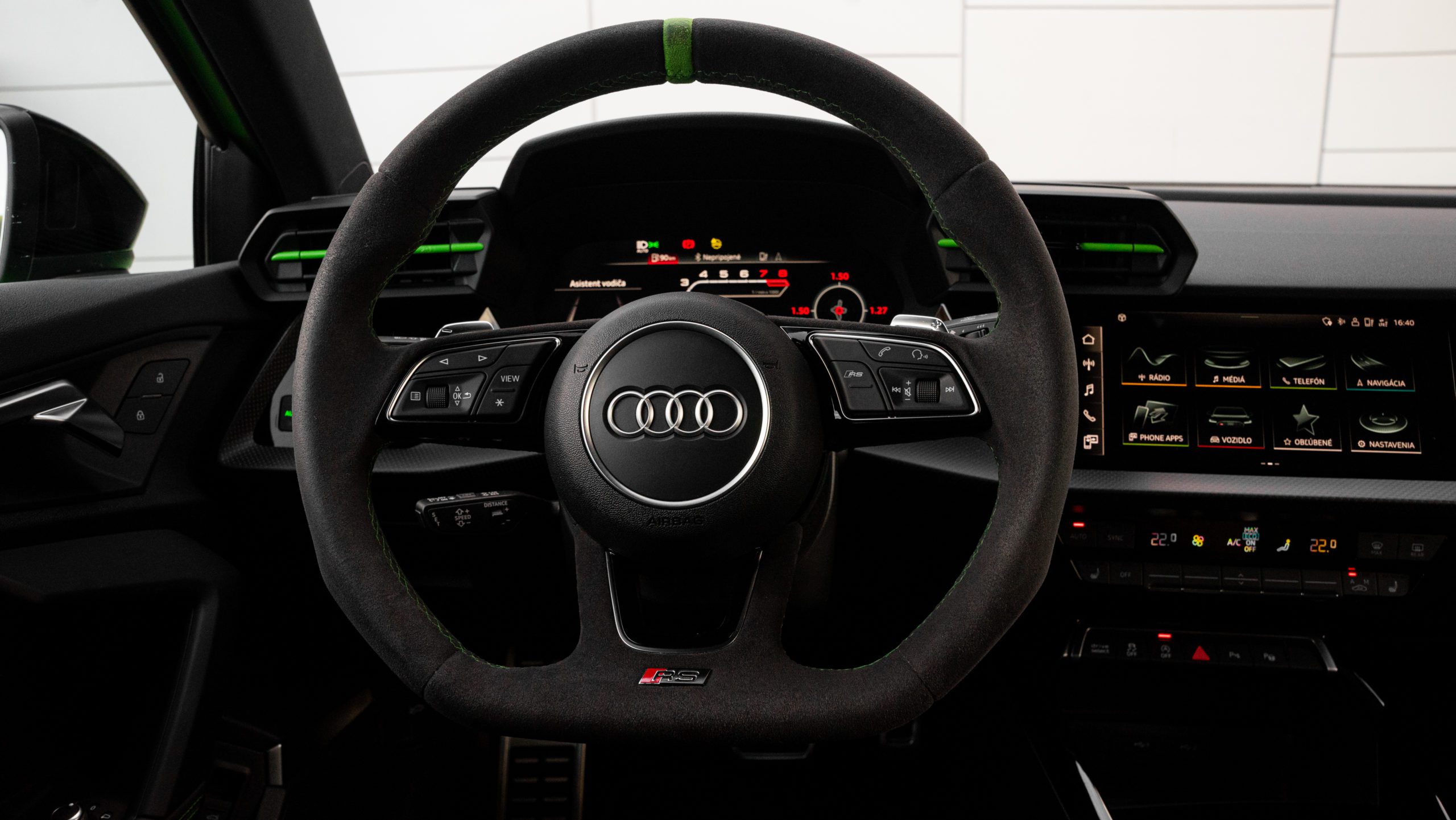 V závere nám neostáva nič iné, ako pochváliť spracovanie interiéru, v prípade ktorého sa kládol mimoriadny dôraz na spracovanie jednotlivých detailov. Výborné sú predné sedadlá, ktoré zároveň nepôsobia ako obušok na váš chrbát. Inak skvelý dojem kazia len príležitostné tvrdé plasty, tak ako to v prípade Audi už býva zvykom. Obzvlášť naša konfigurácia, ktorej dominovala Alcantara a kontrastné zelené prešívanie korešpondujúce s exteriérovým lakom karosérie, stojí rozhodne za zváženie.