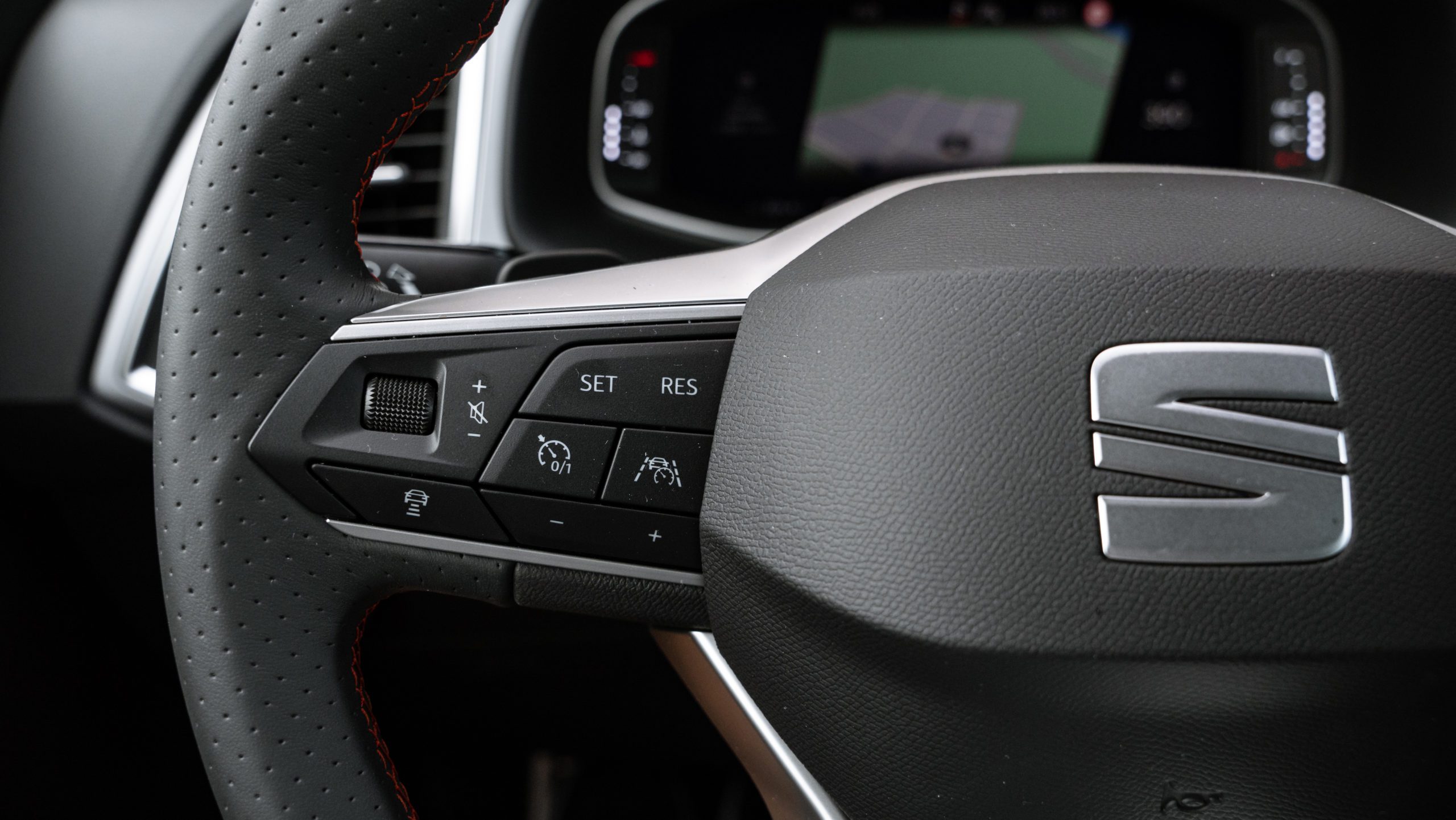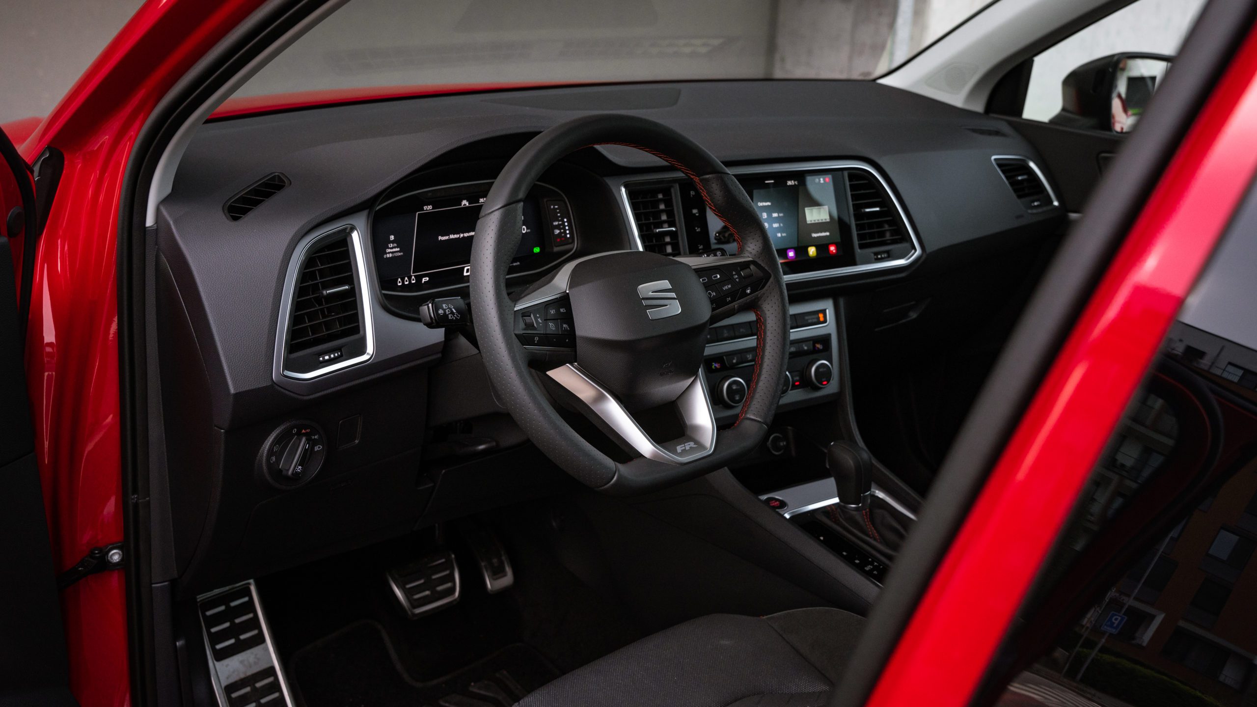 Klasické tlačidlá a otočné ovládanie klimatizácie schvaľujeme, toto zabehané ovládanie neodvádza pozornosť a je intuitívne a rýchle. Moderný nádych do interiéru prináša digitálny kokpit v podobe displeja s vysokým rozlíšením a stredová 9,2-palcová dotyková obrazovka. To, že je Seat športovou značkou koncernu, neznamená, že nedostanete rodinné auto ako Tiguan alebo Karoq. Dostanete presne to isté, len s pridanou hodnotou v podobe emócií. V praxi to znamená nadpriemerný priestor pre pasažierov v druhom rade a batožinový priestor s objemom 485 litrov, čo je o 30 litrov menej kvôli verzii 4×4 oproti predokolke.