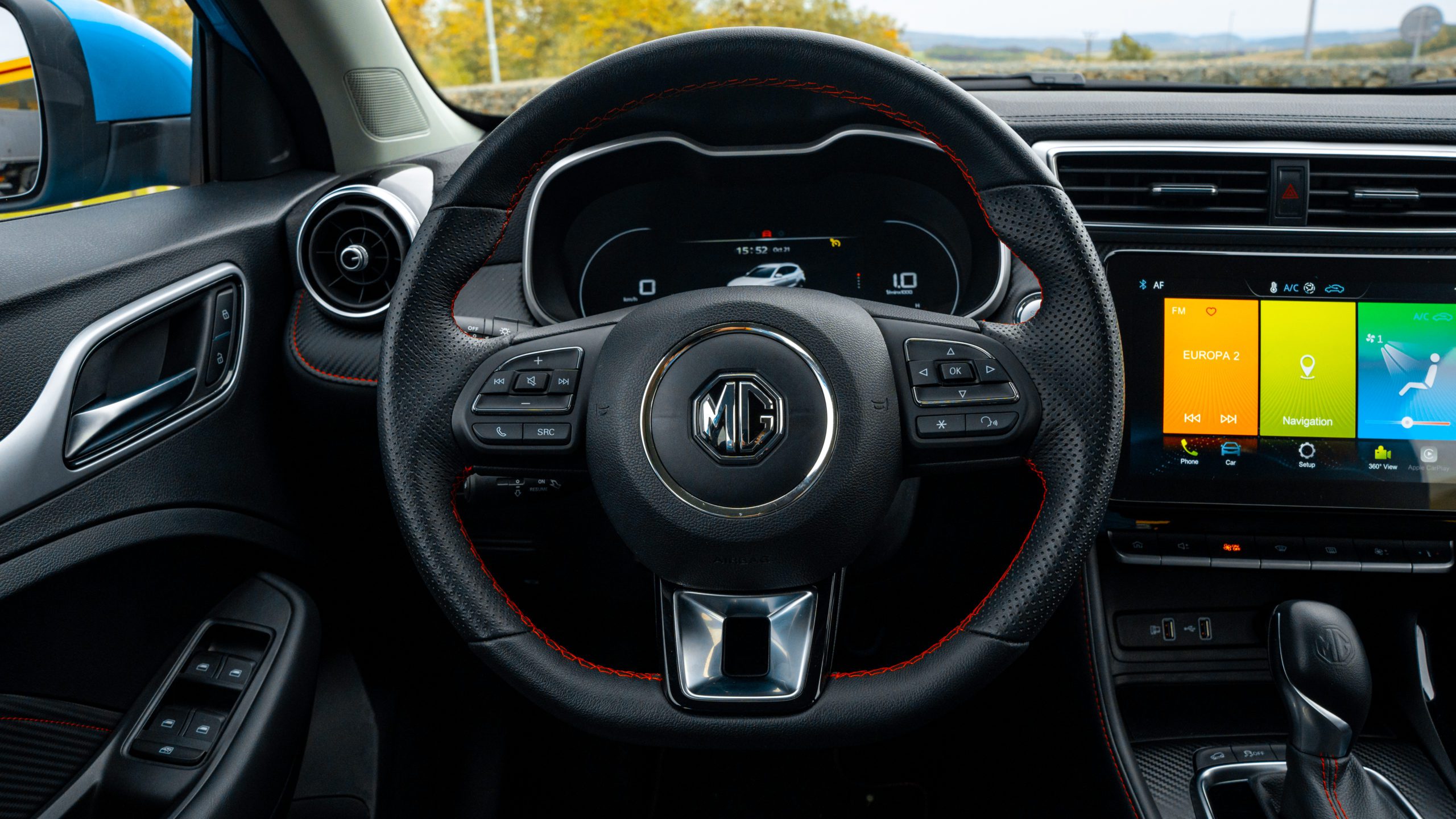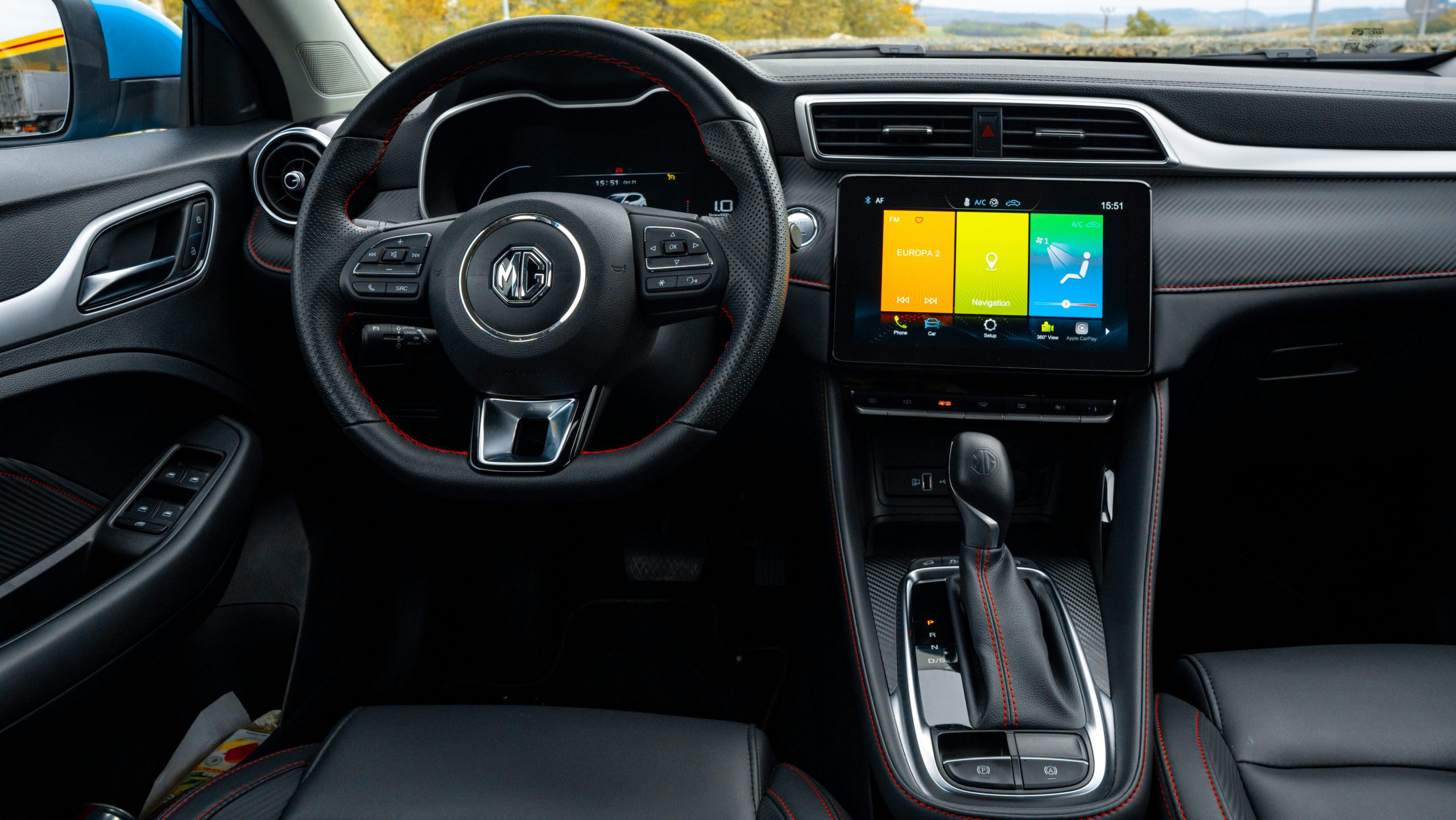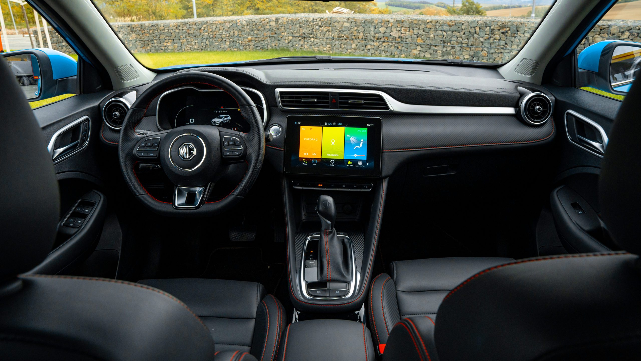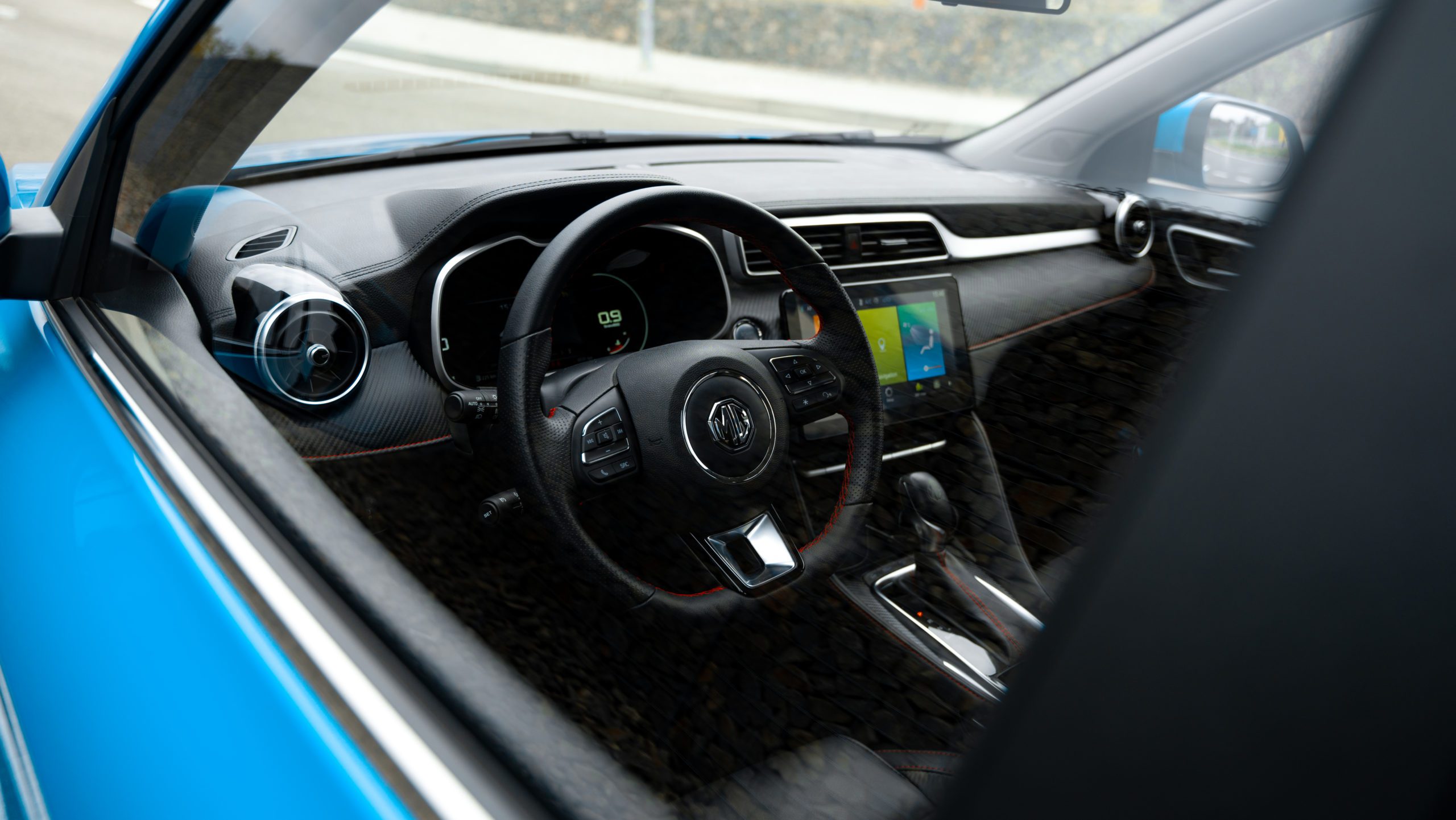 V podobnom duchu sa nesie aj interiér. Jeho spracovanie už nie je také prémiové ako v prípade drahšieho a väčšieho EHS, no MG sa ani pri menšom ZS nemá za čo hanbiť. Prevažne tvrdé plasty dopĺňajú mäkčené plochy, kontrastné prešívanie a zaujímavé tvary. Nič nevŕzga ani nesmrdí Čínou. Volant trochu pripomína staré Volkswageny, no pred vodičom sa nachádza digitálny prístrojový štít. Jeho grafika je pekná a rozlíšenie vás milo prekvapí.