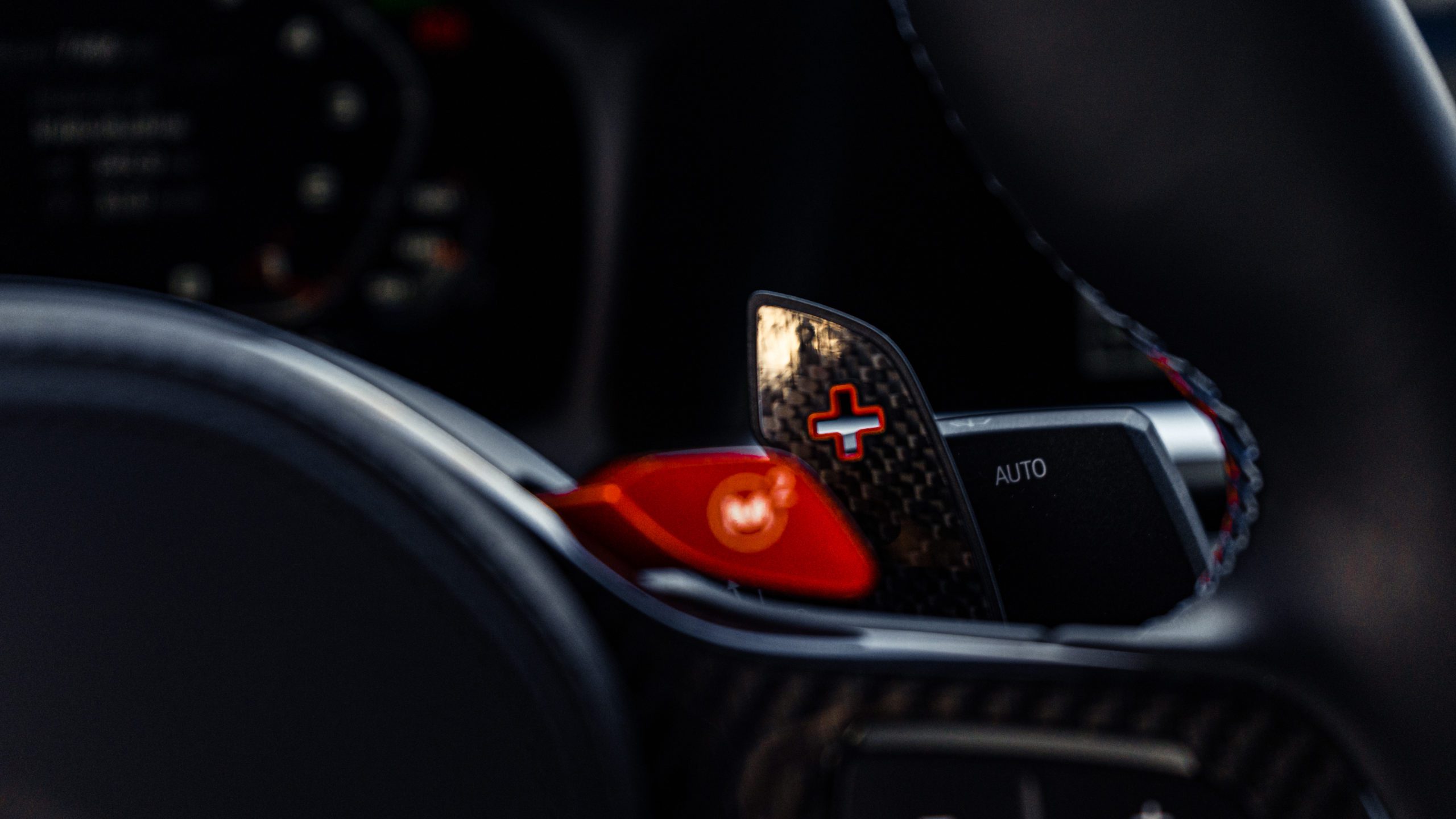Ak si chcete radiť sami pádlami pod volantom, na menej technických tratiach budú vaše prsty na karbónových krídelkách vyhrávať Ódu na radosť. V pouličnom prevedení breakdancera. V športovom móde sa prispôsobí grafika head-up displeja, do popredia sa dostane rýchlomer a otáčkomer s farebnými indikáciami blízkosti obmedzovača otáčok, ktorý zasiahne pri 7200 ot./min. Azda netreba pripomínať, že v manuálnom režime máte všetko pod svojou kontrolou, motor drží otáčky dovtedy, kým nedáte prevodovke povel na preradenie. Predchádzajúca generácia používala dvojspojkový automat, tu je prítomná meničová prevodovka od spoločnosti ZF. Rýchlosť jej radenia je za každých okolností blesková, takže ani za dvojspojkou netreba zúfať.