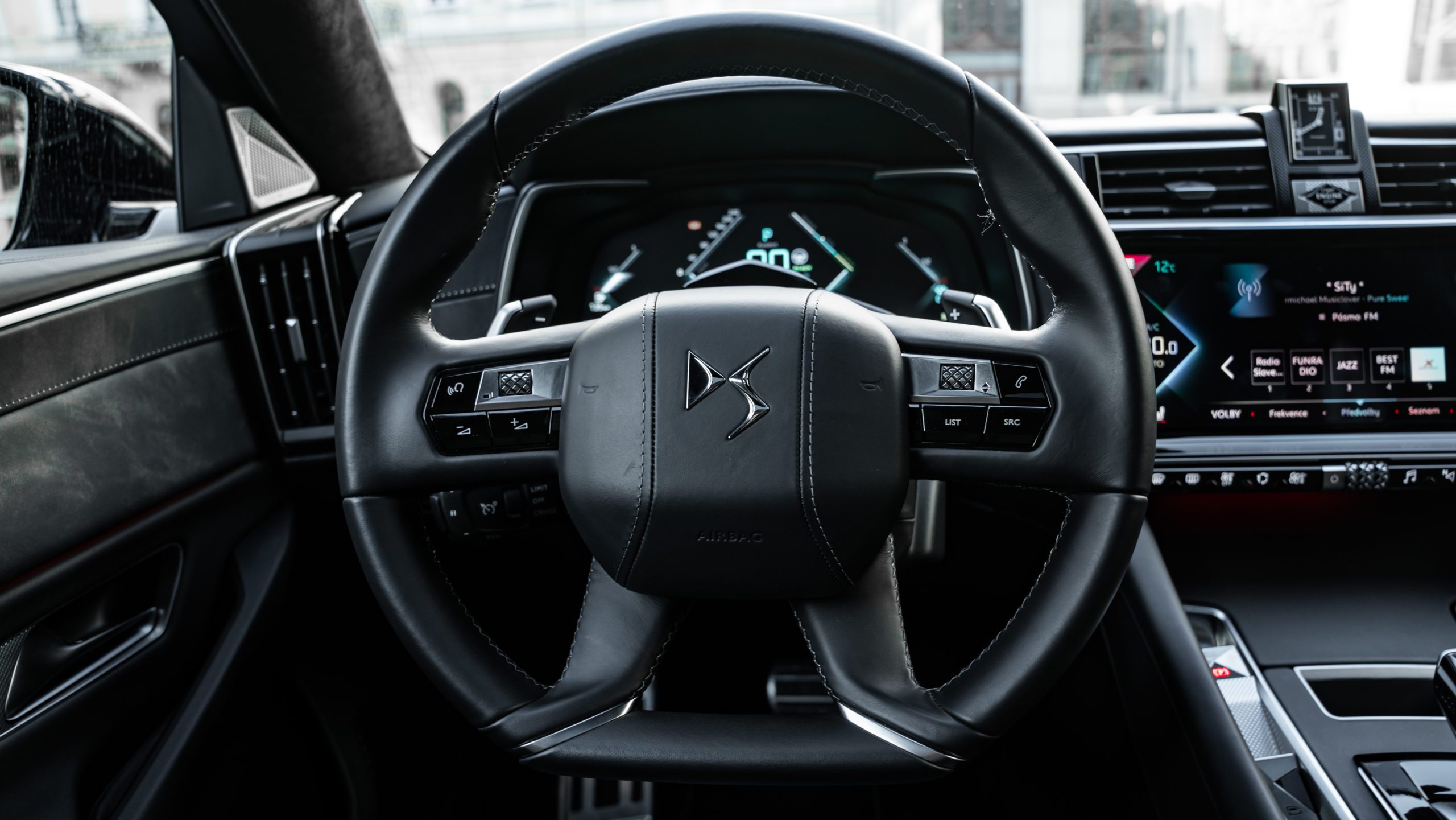 Po otvorení dverí vás uvíta príjemná vôňa kvalitnej kože. Je ňou obšitý takmer každý centimeter interiéru. Váš pohľad upúta veľký počet hrán a tvarov, tak ako v prípade iných modelov DS. Núdza o zaujímavé detaily sa nekoná, vysúvajúce analógové hodinky, impozantné prešívanie či stredový tunel pripomínajúci skôr kokpit lietadla.
