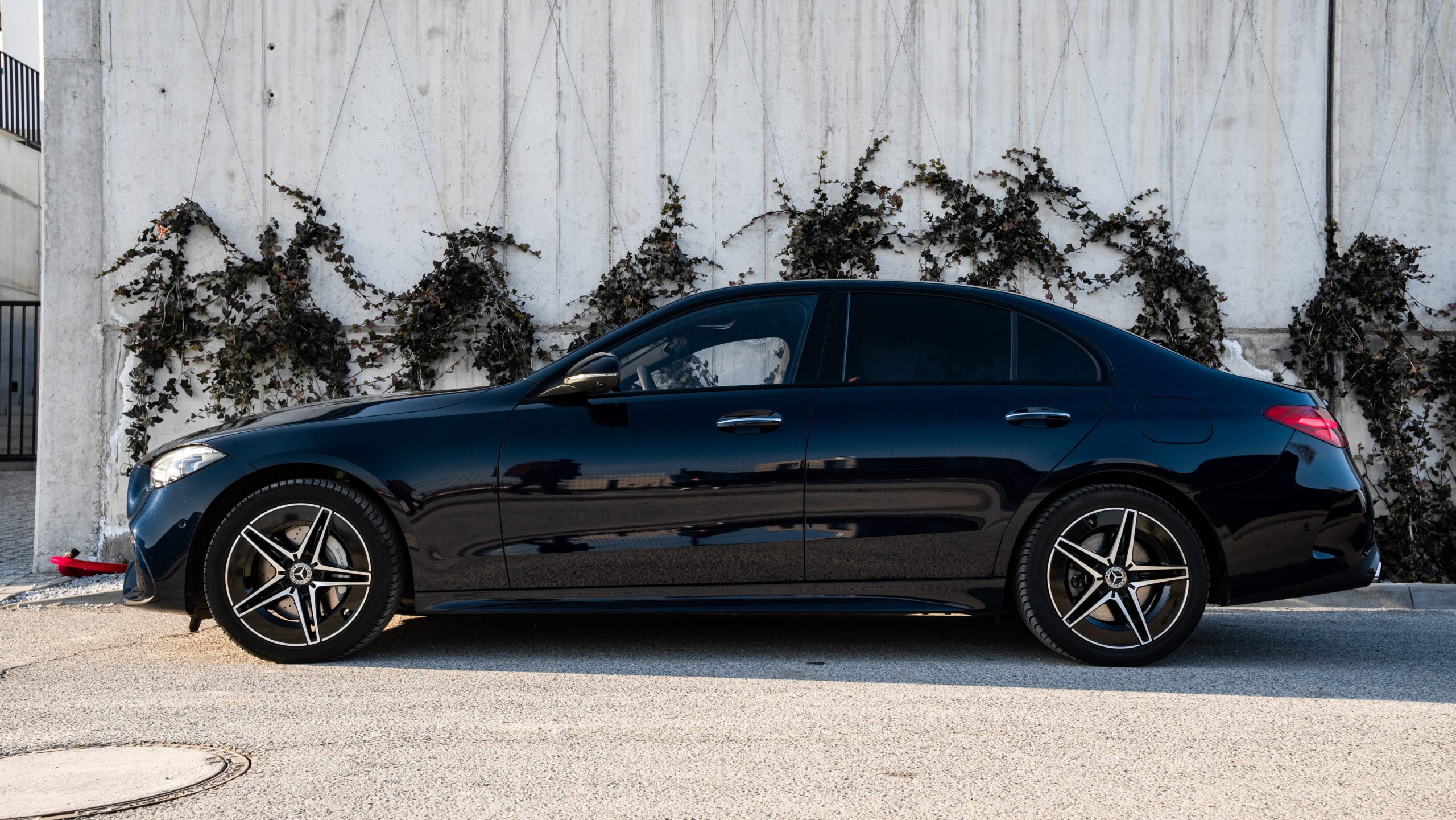 Vďaka kombinácii krátkeho predného previsu, dlhého rázvoru a zadného previsu, má Mercedes-Benz C400e dynamické proporcie už aj počas státia. Túto túžbu vyraziť vpred podčiarkuje športová kapota motora s charakteristickými prelismi. Čelné sklo a priestor pre cestujúcich boli posunuté dozadu – „cab-backward-design“ je odborný termín označujúci túto klasickú proporciu. Céčko už nie je tým najmenším sedanom, aký automobilka ponúka. V prvom rade je tu aj sedan na báze triedy A a v druhom je jeho celková dĺžka 4,75 metra. A to už je slušný kus auta, trieda E bola v minulosti rovnako dlhá.