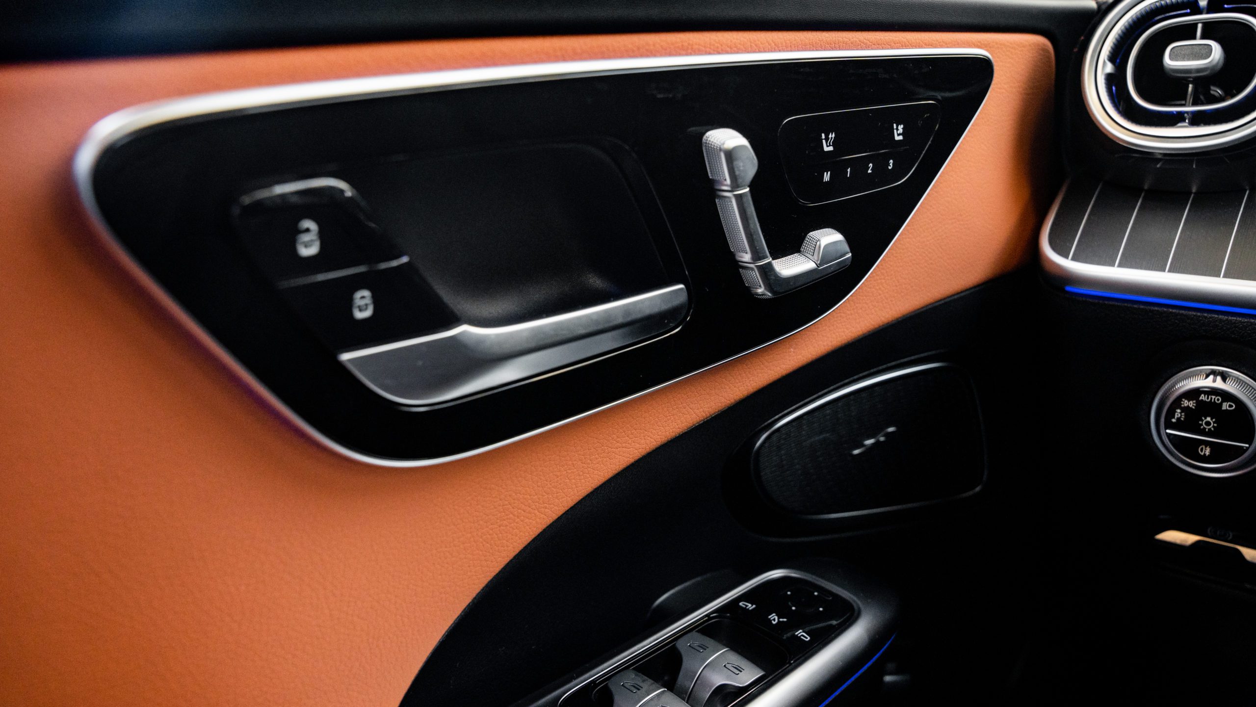 Mercedes-Benz C400e je doslova posiaty kamerami. Kým jedna je v nárazníku, v oblasti čelného okna sú až tri. Vozidlo je preto nielen bezpečné, ale do určitej miery aj autonómne. V prípade sedanu sú svietidlá po prvýkrát dvojdielne. Funkcie osvetlenia sú rozdelené na svietidlá na boku a na veku batožinového priestoru. Prednú časť zdobí maska chladiča typická pre značku. Všetky modely disponujú centrálnou hviezdou. Vyhotovenie a charakter masky chladiča sa líši v detailoch.