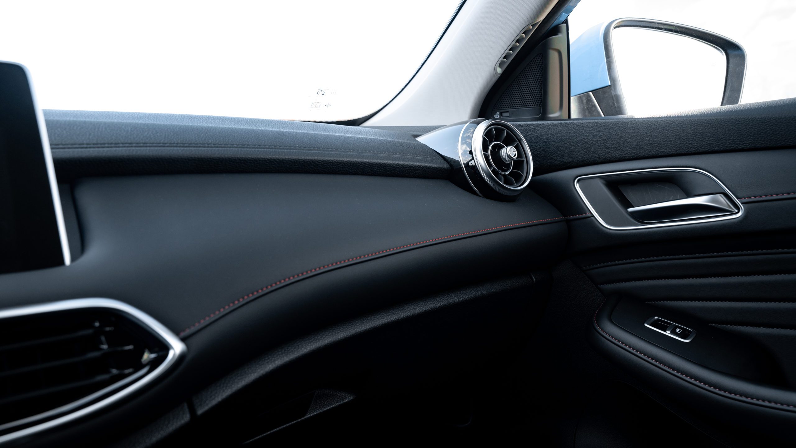 Pre mňa najväčším prekvapením bola kvalita spracovania interiéru. Použité materiály bez preháňania prekonávajú zavedenú konkurenciu. Mäkčené plasty, koženka, pekne prepracované detaily. Dokonca ani na zadných miestach kvalita neklesne. Bohužiaľ, podobné nadšenie nebolo možné pri infotainmente. Ten bol pomalý a hlavne ovládanie klimatizácie bolo dokonalým príkladom, ako sa to nemá robiť. Tiež kontrolka sledovania mŕtveho uhľa bola vo veľmi neprirodzenej polohe na áčkovom stĺpiku.