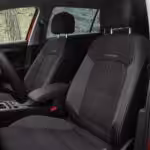 Kabína dýcha príjemnou atmosférou kombinácie moderných ovládacích prvkov so starou školou. V testovacom vozidle sa totiž nachádzali klasické analógové budíky, fyzické tlačidlá na volante či otočné ovládače hlasitosti rádia a svetiel. Zato multimediálny systém so samostatným panelom ovládania klimatizácie je dotykový. Sedadlá majú špecifické čalúnenie, ktoré sa bude ľahko udržiavať v čistote. Hlavové opierky predných sedadiel sú nastaviteľné nielen výškovo, ale aj pozdĺžne.