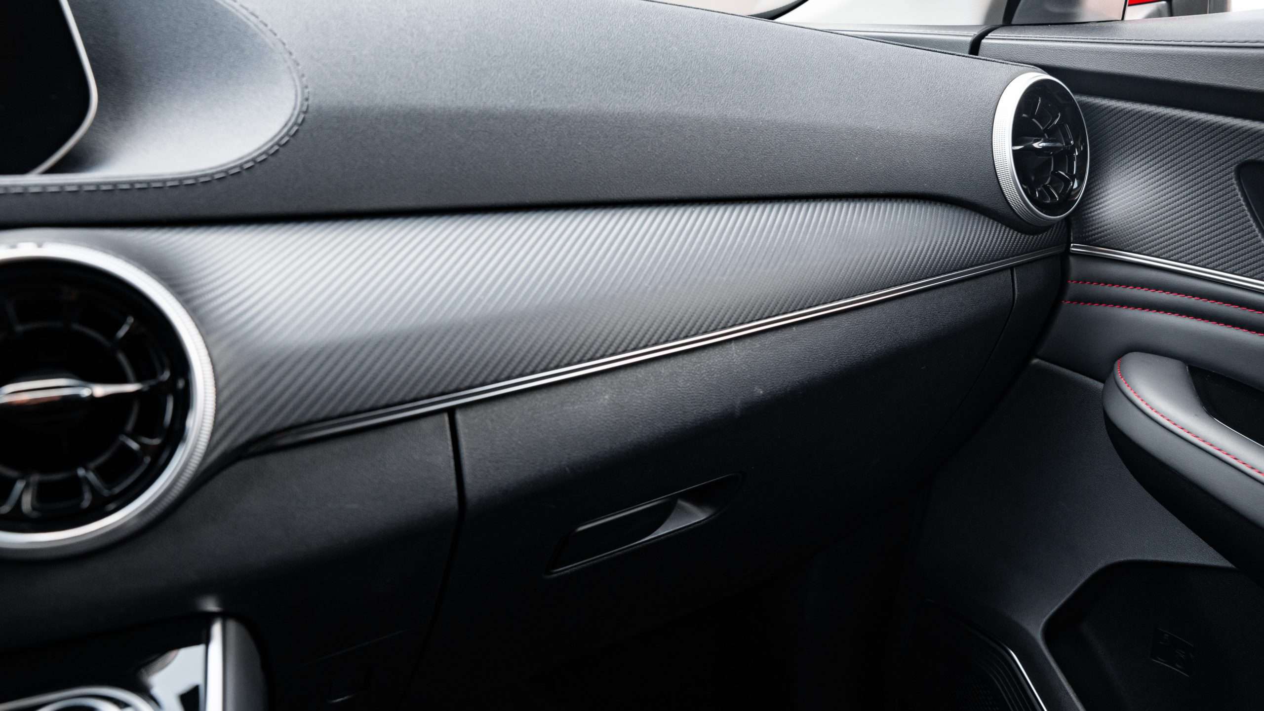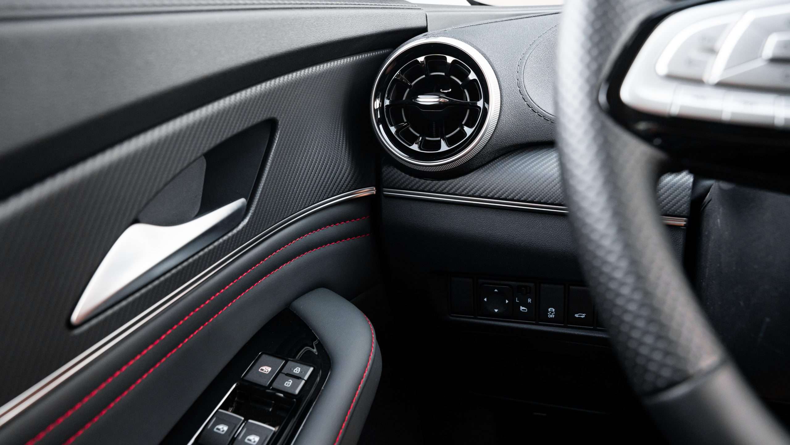 Sklamanie nás nečakalo ani v interiéri. Po dizajnovej stránke sa však neubránime pocitu inšpirácie z Mercedesu. Kruhové výduchy a dvojica displejov v jednotnom sklenenom paneli evokujú triedu GLA. Pochvala poputuje najmä za ergonomické riešenia a ovládacie prvky, ktoré sú na správnom mieste, tak ako sme zvyknutí. Žiadne nepríjemné prekvapenia sa tak nekonajú a v kabíne sa zorientujete behom pár sekúnd.