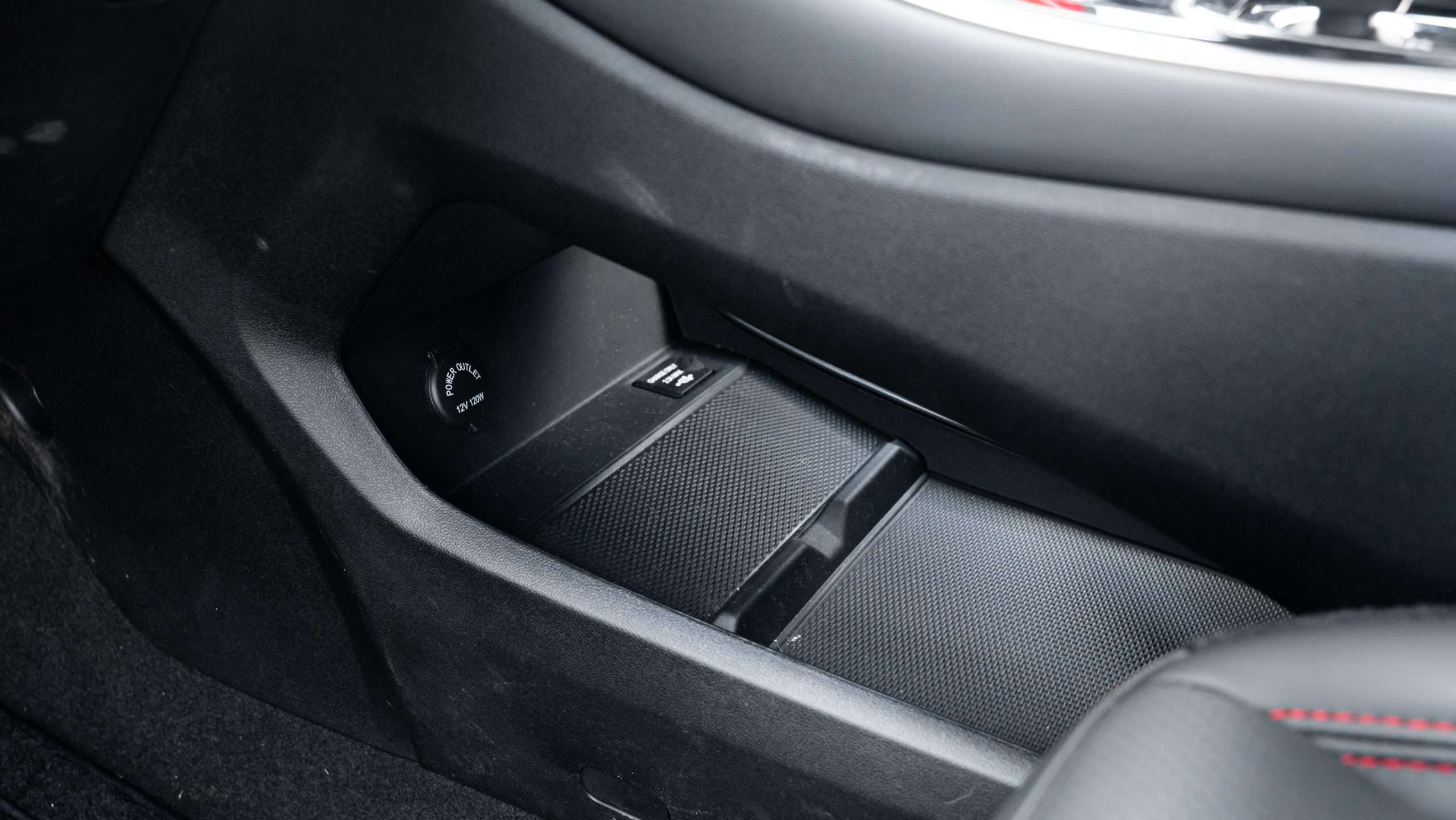 Materiálové spracovanie je na solídnej úrovni, a to aj napriek faktu, že väčšina plôch je z tvrdých plastov. Tie, ktoré sú v kontakte s telom, sú mäkčené alebo potiahnuté kožou, resp. koženkou. Mäkčená je aj palubná doska. Stredový tunel dostal klavírny lak, čo nie je príliš šťastné riešenie, no nechýba dvojica držiakov na poháre, pohodlný volič automatickej prevodovky či elektronická ručná brzda. Chýbala nám bezdrôtová nabíjačka na telefón a sklamala nás prítomnosť výlučne jednozónovej klimatizácie.
