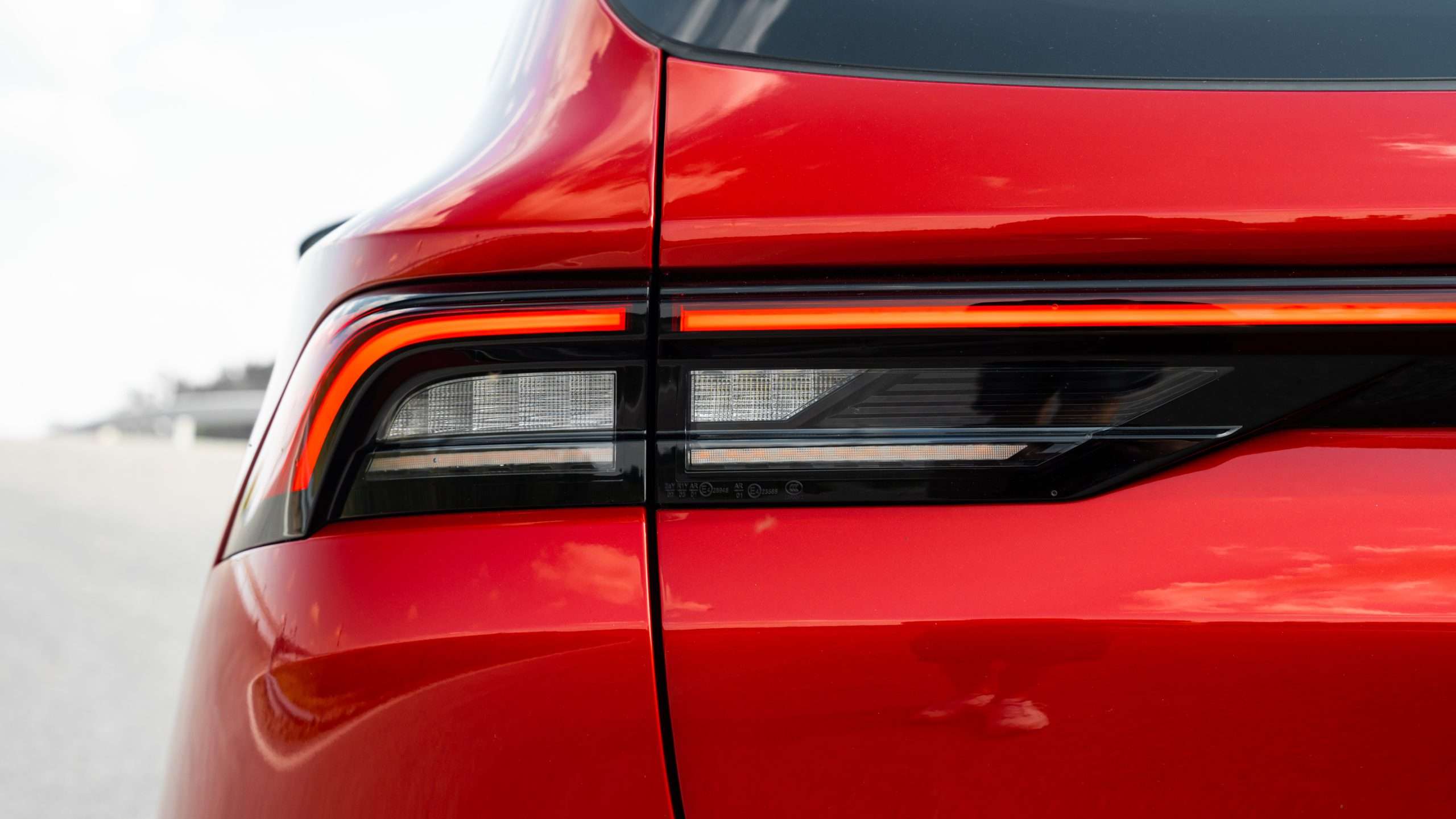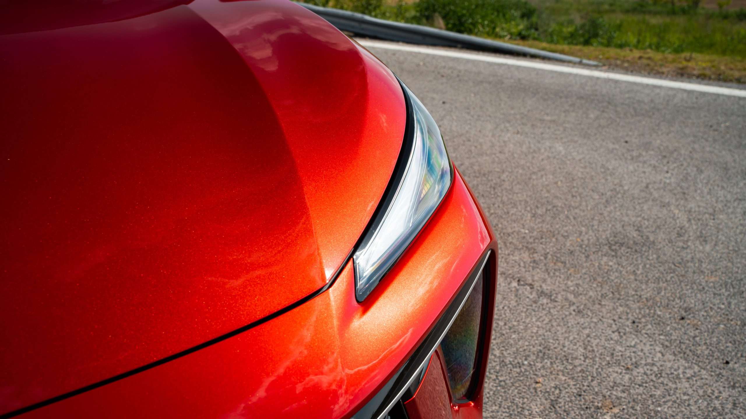 Pôsobivú karosériu si vychutnáte aj z bočného pohľadu a obzvlášť v našej červenej metalíze vyniknú čierne 19 palcové disky. Tie sú zároveň jedinými v ponuke. Popravde by sa sem hodili aj väčšie dvadsaťpalcové. Relatívne krátky zadný previs spôsobil, že zadná partia pôsobí zrezane, nechýba však plne diódová technológia osvetlenia. Za predné Full LED svetlomety si musíte priplatiť smiešnych 390 €. Spoločne s metalízou za 690 € sa tak jedná o jediné príplatky.