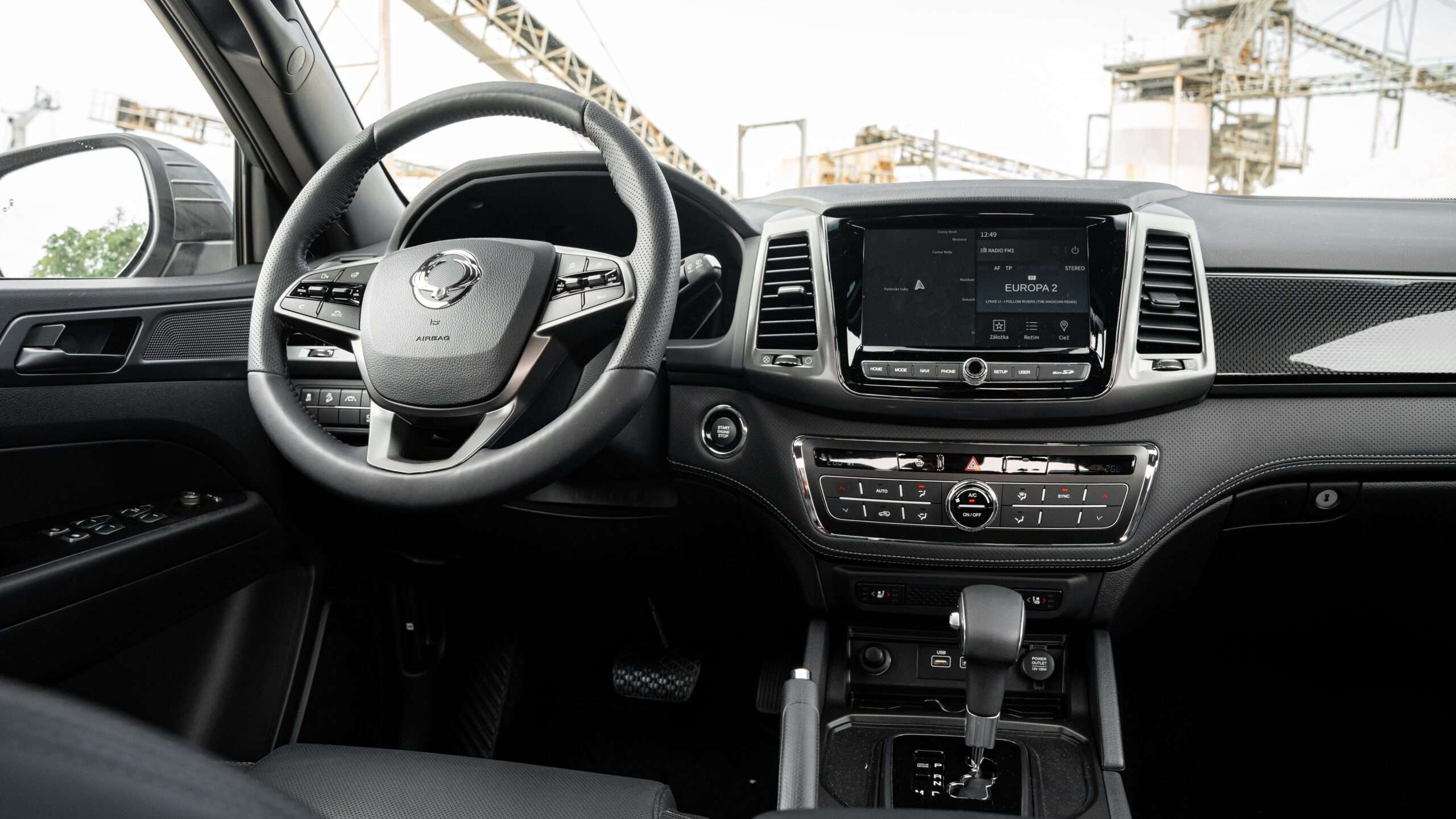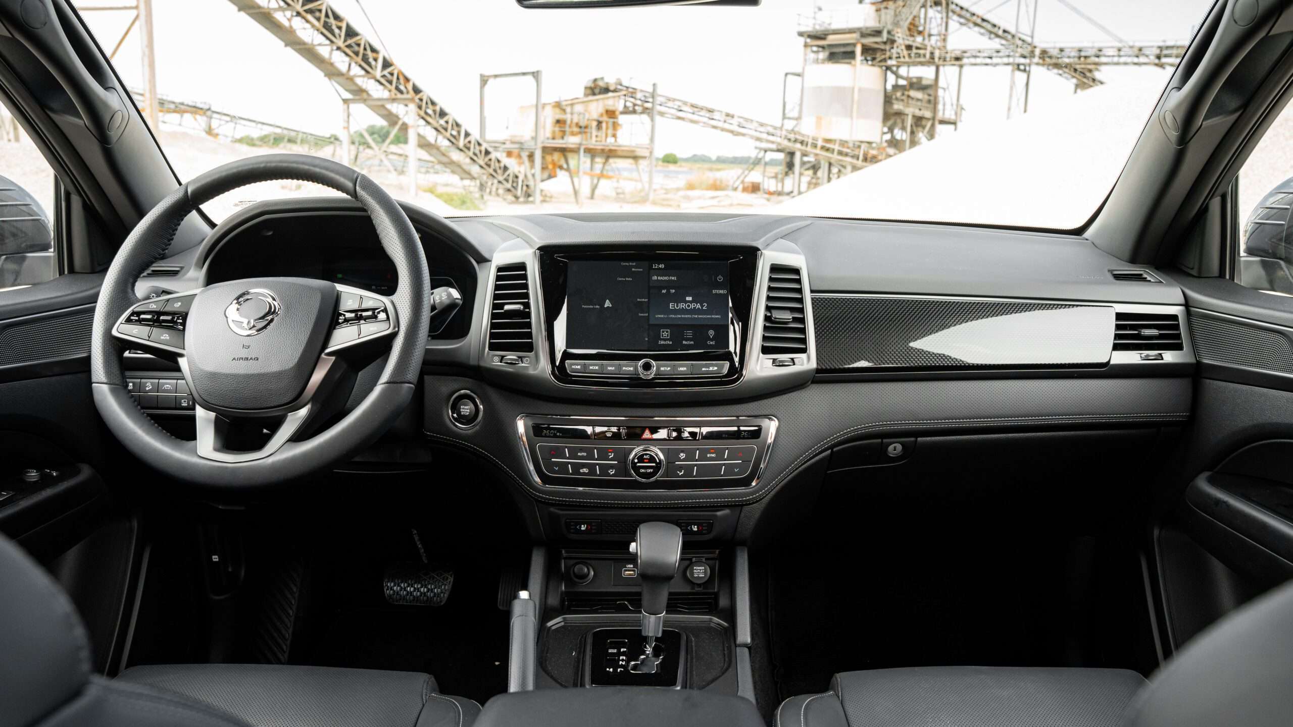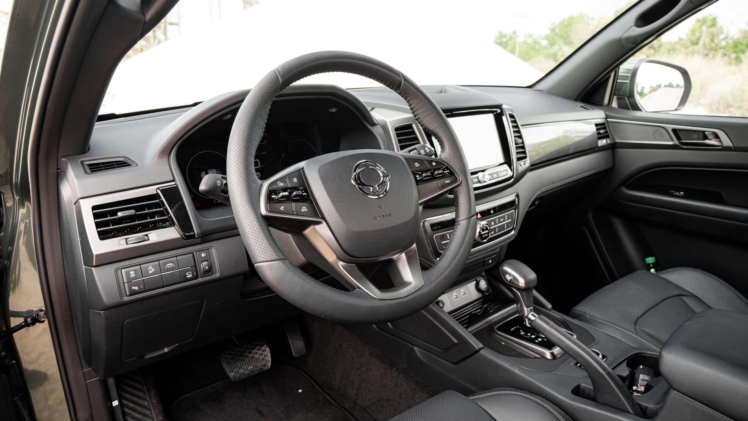 Väčšina pick-upov pôsobí v kabíne robotníckym dojmom. SsangYong Musso hľadá ideálny kompromis medzi jednoduchosťou, univerzálnosťou, komfortom a estetickou pôvabnosťou. Dominantným prvkom kabíny je krásny virtuálny kokpit – teda plne digitálny prístrojový štít s niekoľkými režimami zobrazenia. Jeho grafika je moderná, no nesnaží sa “uletieť” na nejakom príliš ultramodernom spracovaní, takže v konečnom dôsledku pôsobí draho a pritom prehľadne. V horúcich letných dňom potešila odvetrávaná funkcia predných sedadiel či výkonná dvojzónová klimatizácia. Predné svetlomety nie sú full-LED stretávacie sú xenóny a nemajú ani automatickú funkciu diaľkových svetiel, zato prisvecovanie do zákrut tu prítomné je prostredníctvom vertikálnych hmlových LED svetiel. Volant je nastaviteľný vo všetkých smeroch a vo svojej spodnej časti má hrubší veniec.