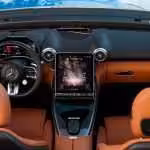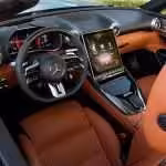 Kokpit je absolútne jedinečný. Za to poputuje do Stuttgartu palec hore, keďže unifikácia vzhľadu je ich obľúbeným podpisom. V prípade SL-ka je všetko inak a pred vodičom sa nachádza podstatne menší digitálny prístrojový štít, na ktorom je jasne viditeľné zameranie pre čo možno najväčší pôžitok z jazdy. Odkaz na autá minulé nájdeme aj v zapustenom tuneli a konvenčnej architektúre palubnej dosky.