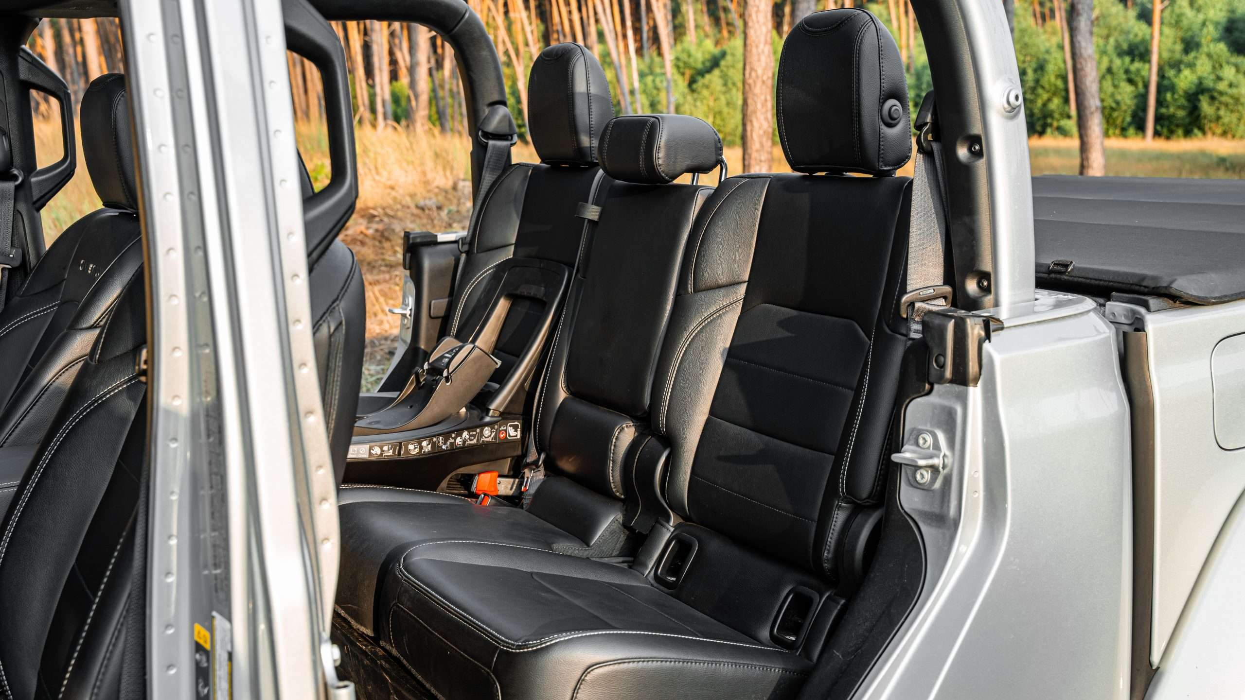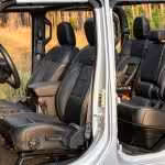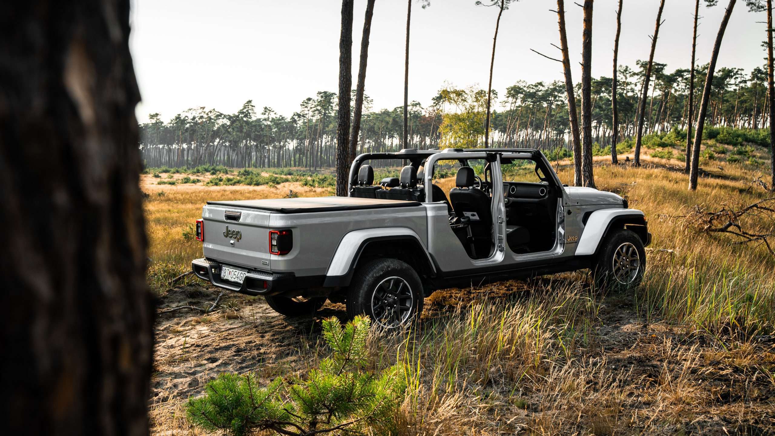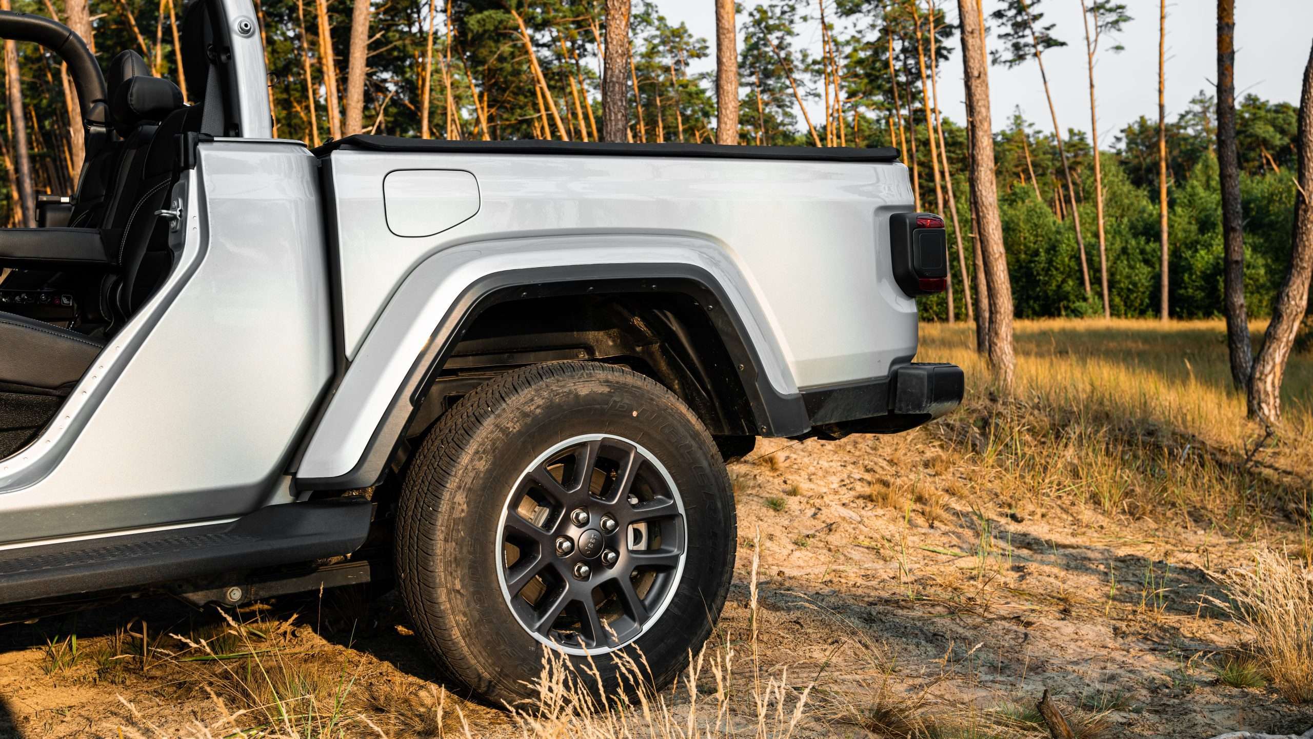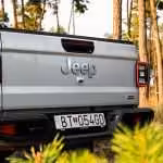 Bláznivé sú aj nájazdové uhly. Nájazdový je 41 stupňov, prechodový 18,5 a odjazdový 25 stupňov. Ale poďme aj k pohonu. Trojlitrová naftová “vé-šestka” ponúkne 264 koní a 600 Nm, ktoré na kolesá putujú cez 8-stupňovú prevodovku od firmy ZF. Táto sila zabezpečuje zrýchlenie z nuly na stovku za 8,6 sekundy a ťažnú kapacitu 2722 kg. Poviete si, že to musí žrať aj trávu pri ceste. Opak je pravdou, na diaľnici sme sa dokázali držať aj pod siedmymi litrami, čo je na túto masu extrémne číslo. Gladiator dokonca ponúka každodennú využiteľnosť. Korba má na dĺžku 1,5 metra. Za aj pod zadnými sedadlami sa nachádza úložný priestor a keď sa niečo zašpiní, všetko je navrhnuté tak, aby ste to jednoducho umyli. Všetky dôležité ovládacie prvky môžete ovládať aj v rukaviciach.