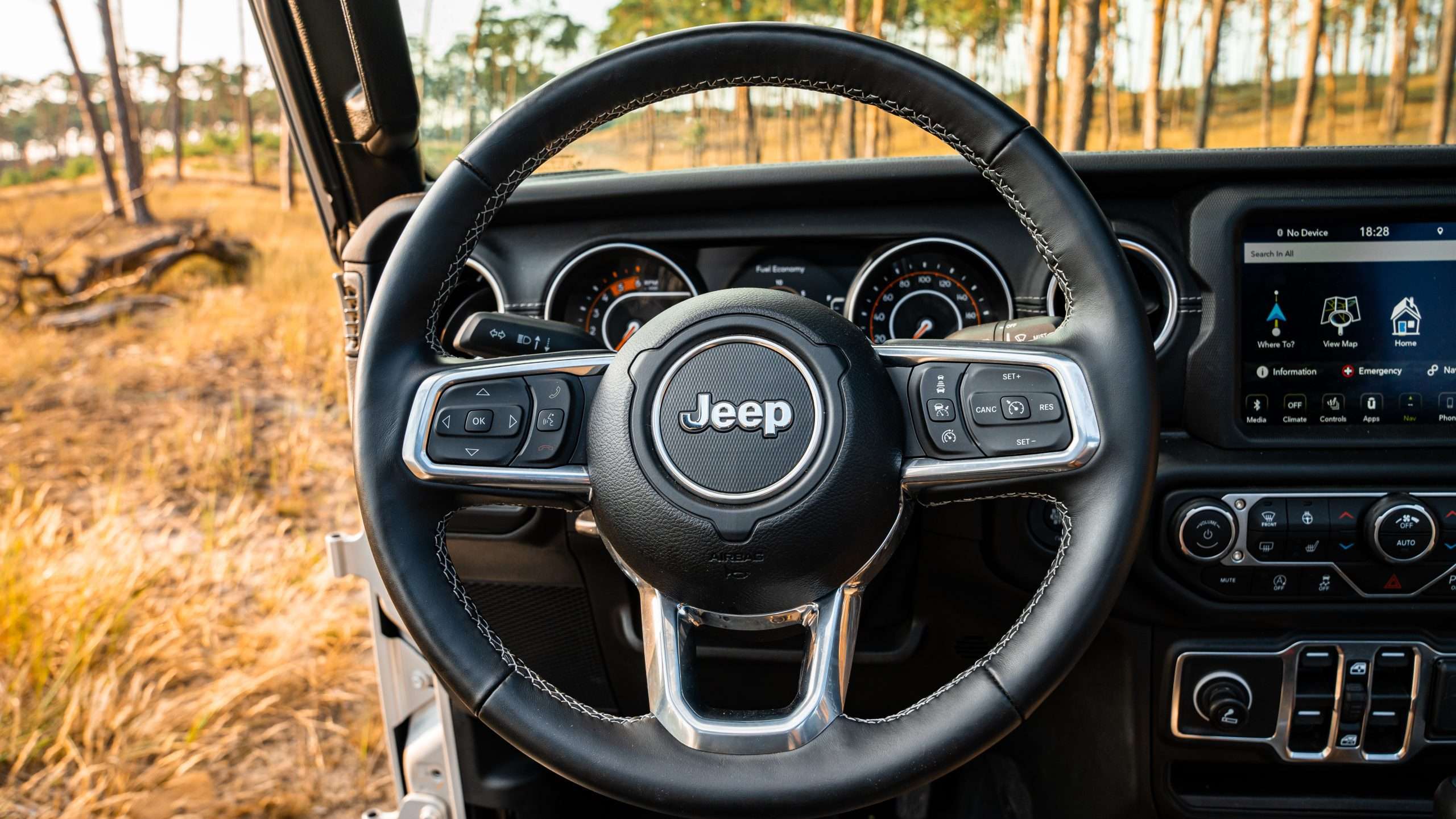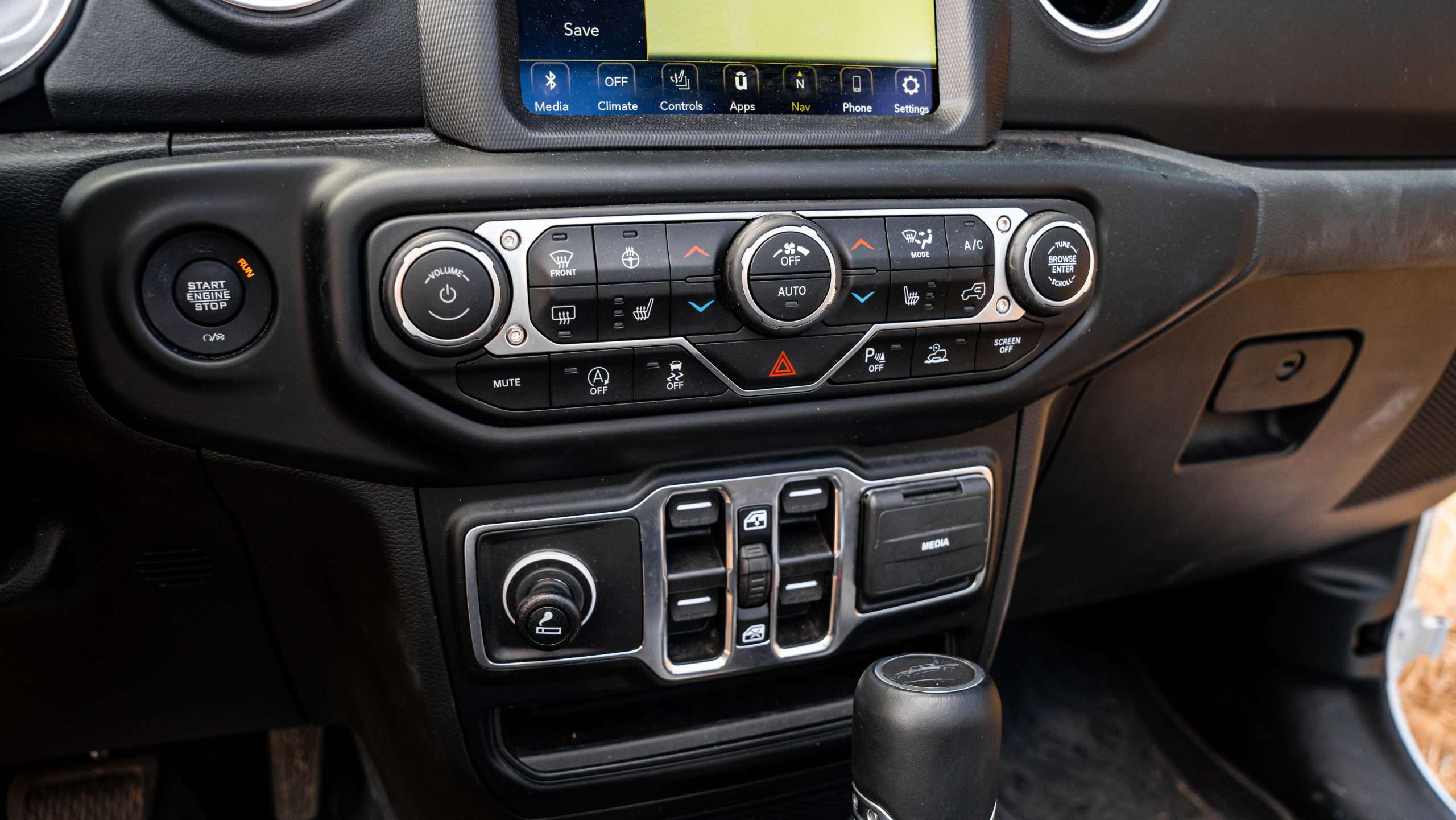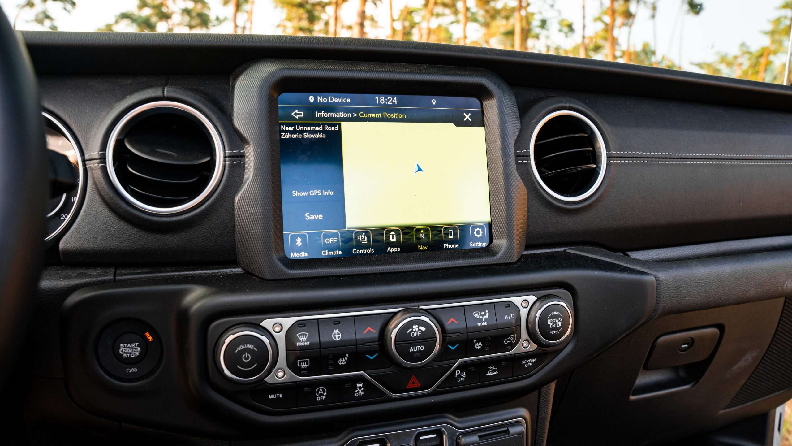Bláznivé sú aj nájazdové uhly. Nájazdový je 41 stupňov, prechodový 18,5 a odjazdový 25 stupňov. Ale poďme aj k pohonu. Trojlitrová naftová “vé-šestka” ponúkne 264 koní a 600 Nm, ktoré na kolesá putujú cez 8-stupňovú prevodovku od firmy ZF. Táto sila zabezpečuje zrýchlenie z nuly na stovku za 8,6 sekundy a ťažnú kapacitu 2722 kg. Poviete si, že to musí žrať aj trávu pri ceste. Opak je pravdou, na diaľnici sme sa dokázali držať aj pod siedmymi litrami, čo je na túto masu extrémne číslo. Gladiator dokonca ponúka každodennú využiteľnosť. Korba má na dĺžku 1,5 metra. Za aj pod zadnými sedadlami sa nachádza úložný priestor a keď sa niečo zašpiní, všetko je navrhnuté tak, aby ste to jednoducho umyli. Všetky dôležité ovládacie prvky môžete ovládať aj v rukaviciach.