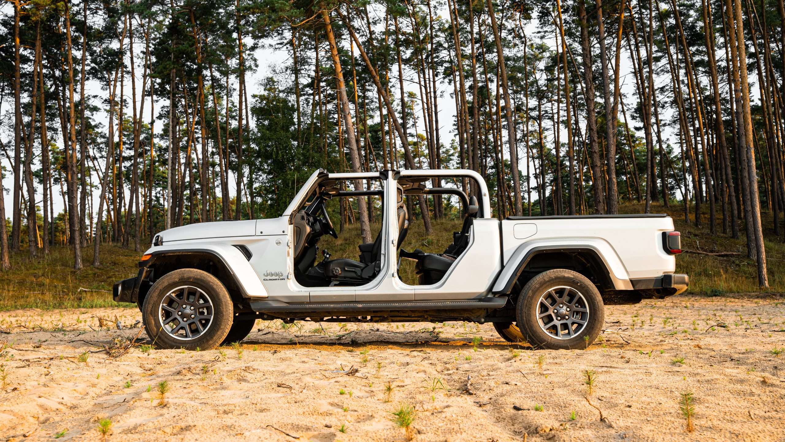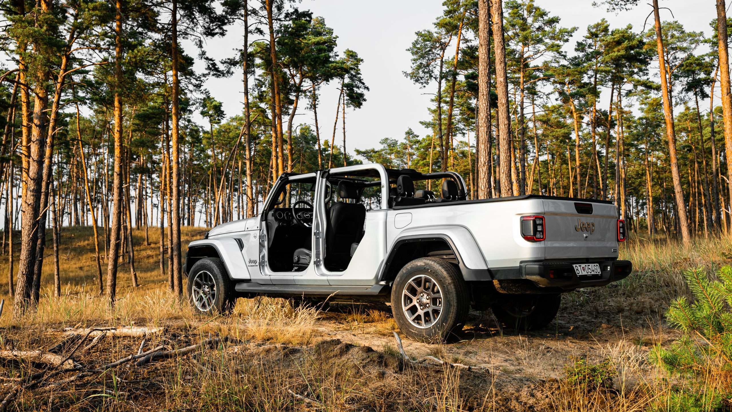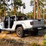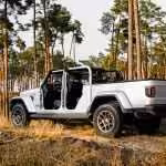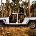 Ale jeho najväčšou prednosťou je, že to je jediný pickup-kabriolet na svete. Strechu je totiž možné odstrániť, čelné okno sklopiť a dvere úplne odmontovať. Má to aj háčik, nemôžete takto jazdiť po bežných cestách. Ale aj s dverami to stojí za to. Ak viete, čo robíte, s triviálnym náradím od Jeepu to viete zvládnuť za pol hodinu. Musíte však myslieť na to, že v aute nie je priestor na odmontované panely. Preto si treba vopred dobre pozrieť, aké bude počasie. A koľko tento pojazdný antisystémový kolos stojí? S plátennou strechou vo výbave Sport začína Jeep Gladiator od 63 400 €, s pevnou strechou vo vyššej výbave Overland je od 72 850 €.