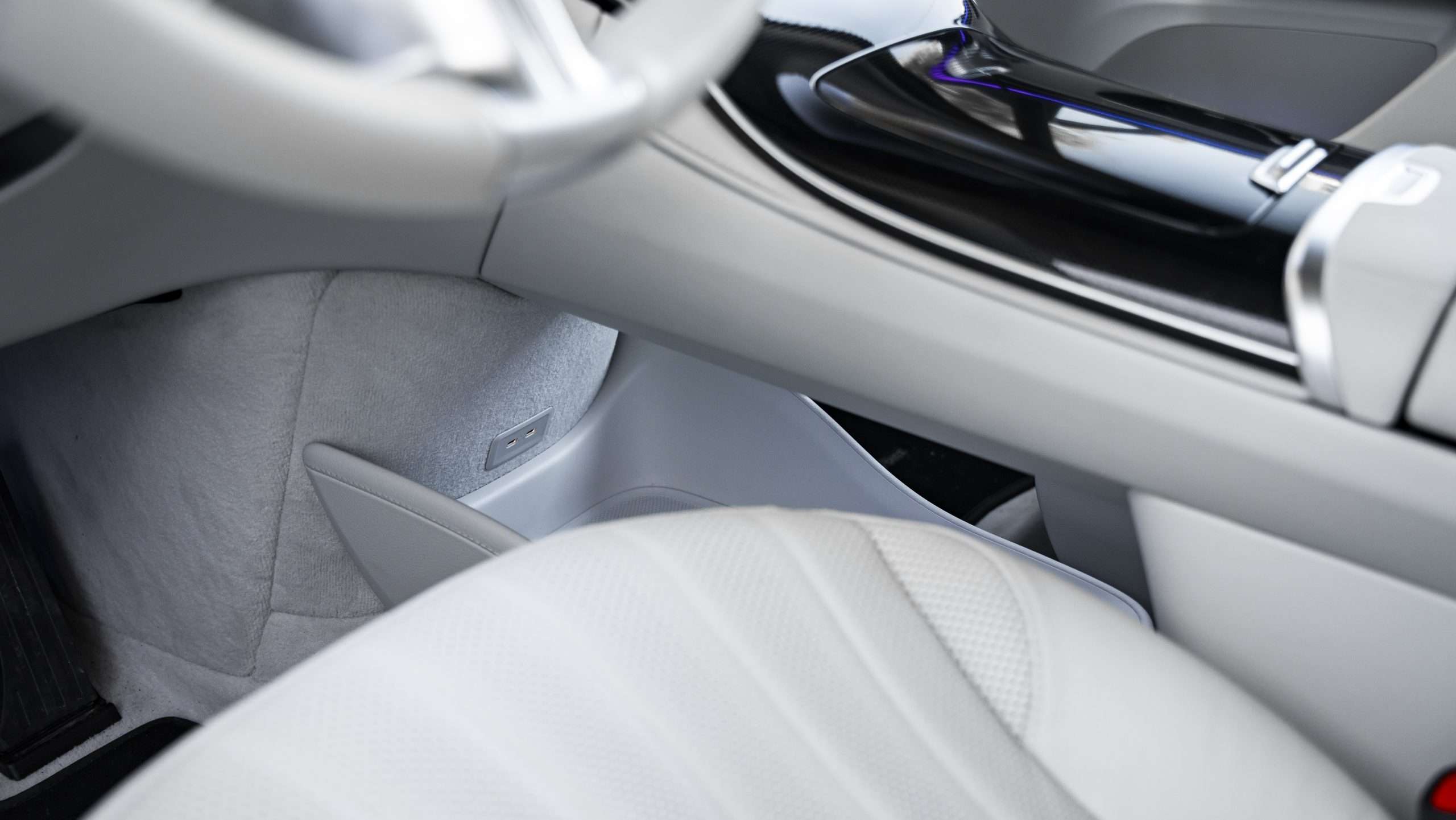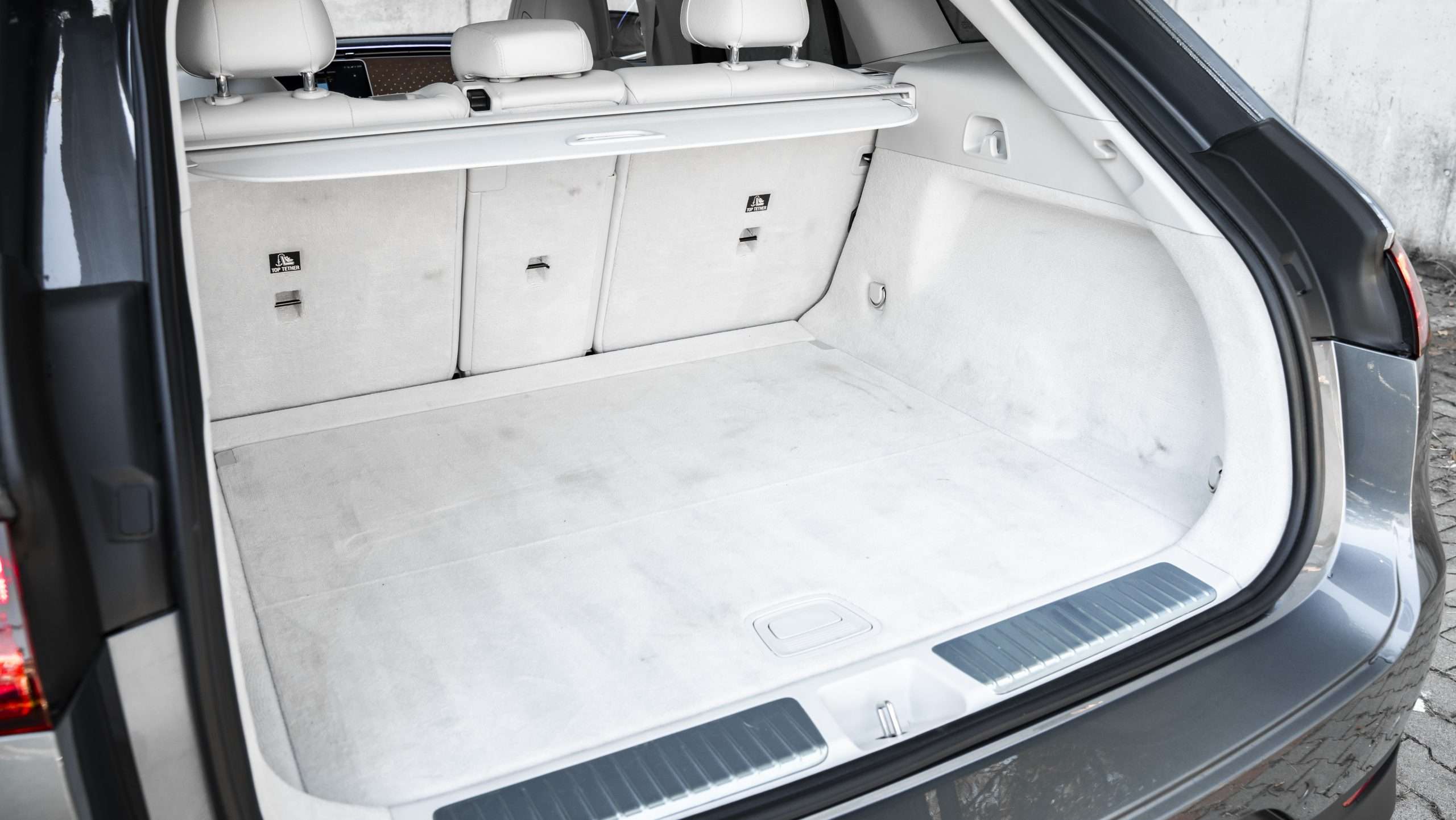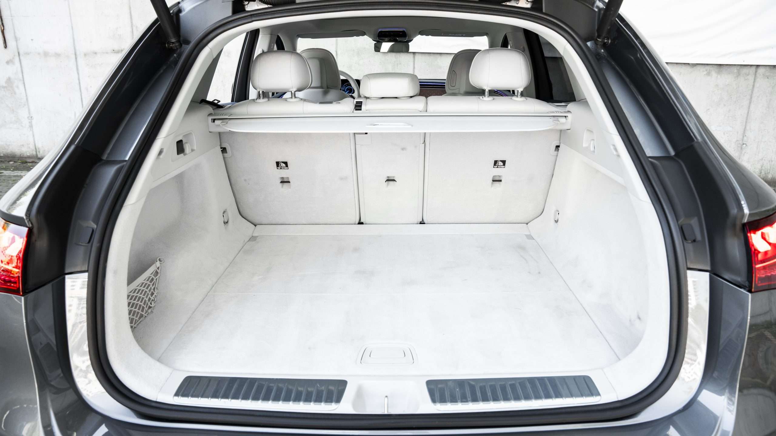 A potom tu je ten krásne spracovaný interiér. Samozrejme, v kombinácii bielej kože a svetlého dreva s veľkými displejmi bude náročné udržiavať ho v čistote. Kto si ale potrpí na poriadok a čistotu v aute, nech ide do toho. Ambientné osvetlenie ponúka celé spektrum farieb a môže aj interagovať, napríklad na zmenu teploty klimatizácie. Predné sedadlá sú vyhrievané aj ventilované a majú masážnu funkciu. V ostrom kontraste s hodnotnými materiálmi je dielenské spracovanie. Panely na dverách i palubnej doske vŕzgajú, čo trochu kazí inak skvelý dojem. Batožinový priestor má základný objem 520 litrov a celý je čalúnený mäkkým kobercom. Po sklopení zadných sedadiel vzrastie jeho objem na 1675 litrov. Kabínu presvetľuje panoramatická strecha, ktorá sa dá aj vyklopiť.