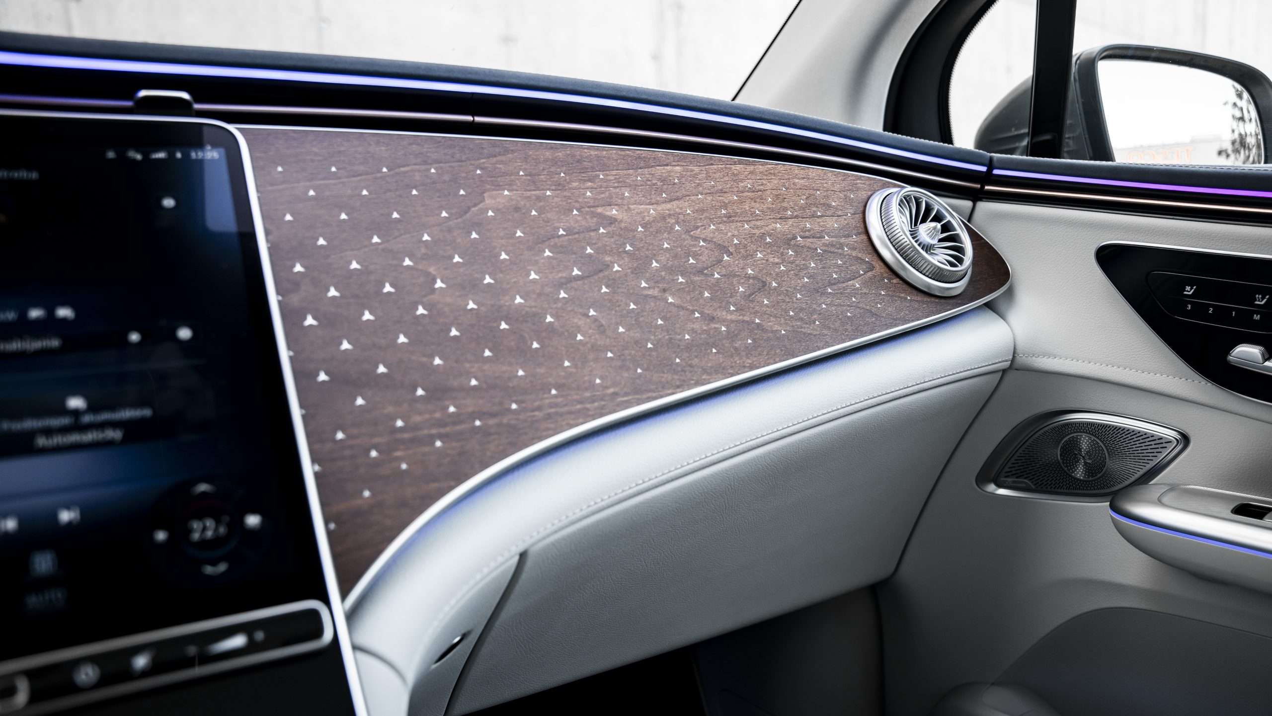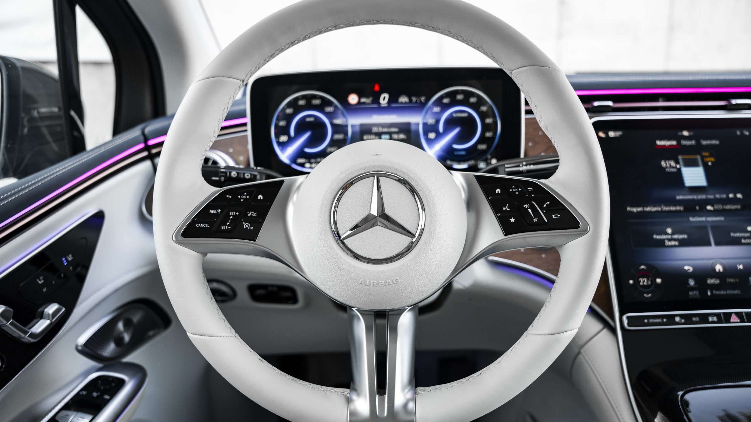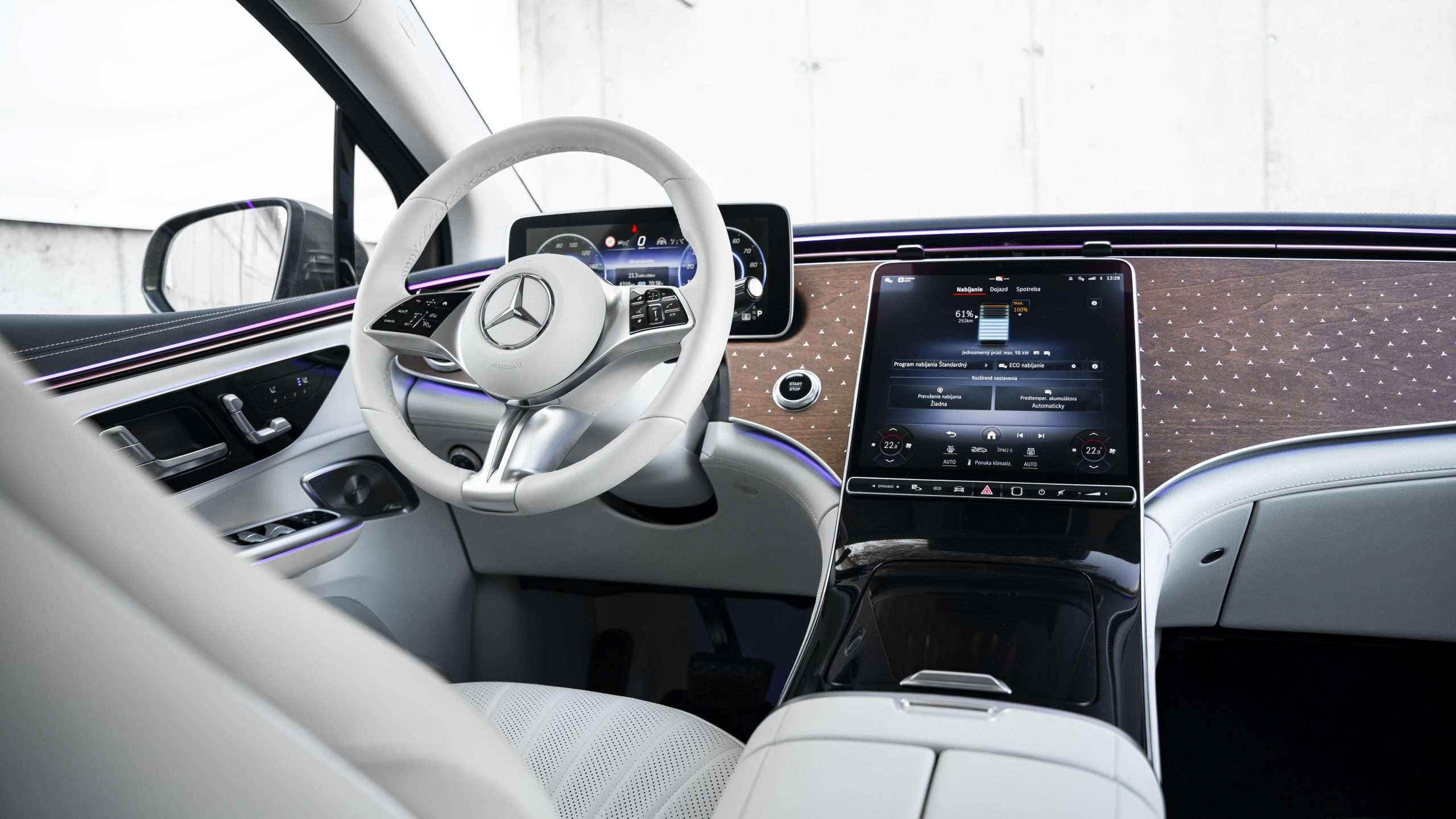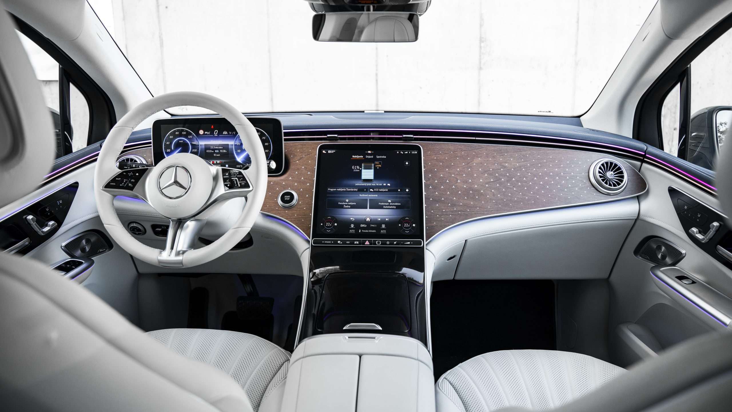 To, že šoférujete auto za vyše 100.000 eur, vám okamžite pripomenie otvorenie dverí. Ťažké a mohutné dvere s vysúvajúcimi sa osvetlenými kľučkami dverí a nonšalantným zvukom pri ich privretí vás nenechajú na pochybách, že ruchy okolia sa k vašim ušiam dostanú len v nevyhnutnej miere. A je to naozaj tak, pričom je jedno, či je na tachometri 50 alebo 150 km/h, EQE SUV preráža vzduch ako nôž maslom.