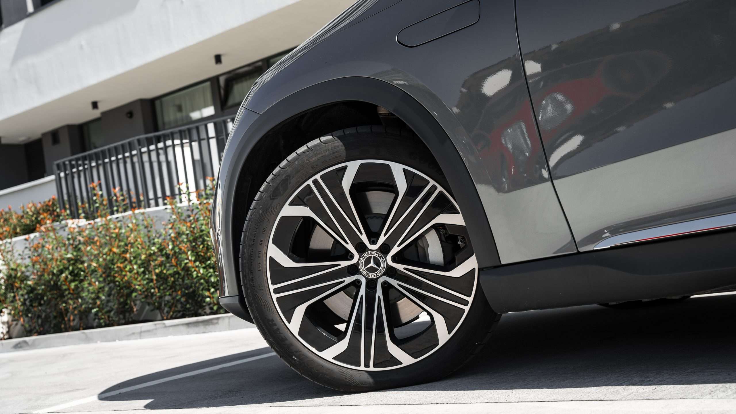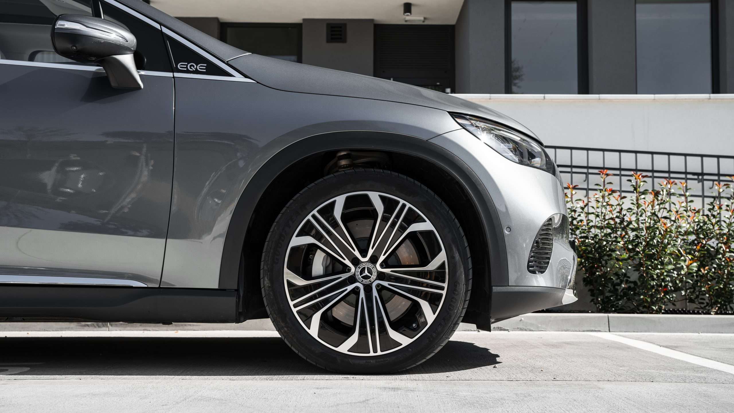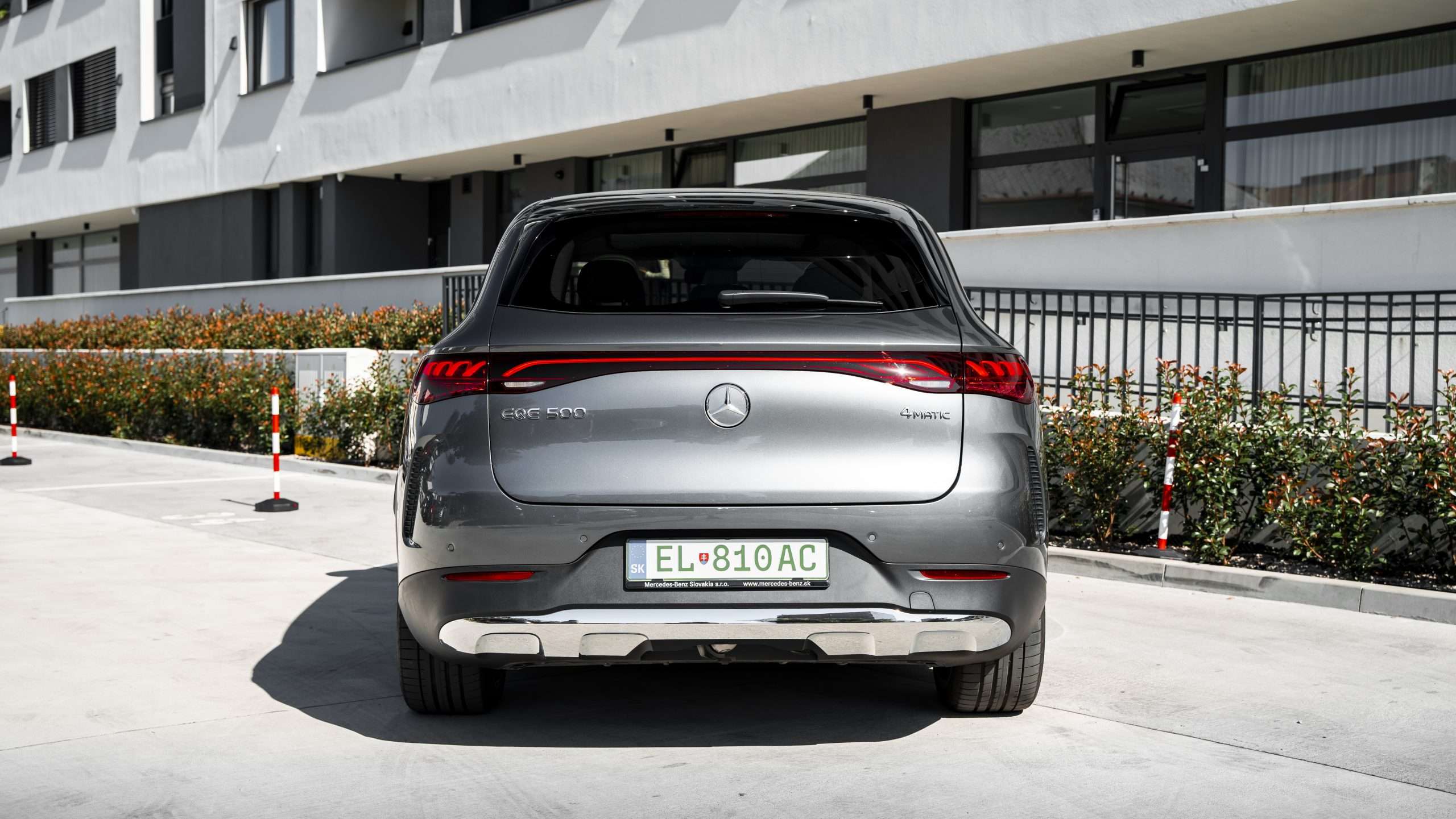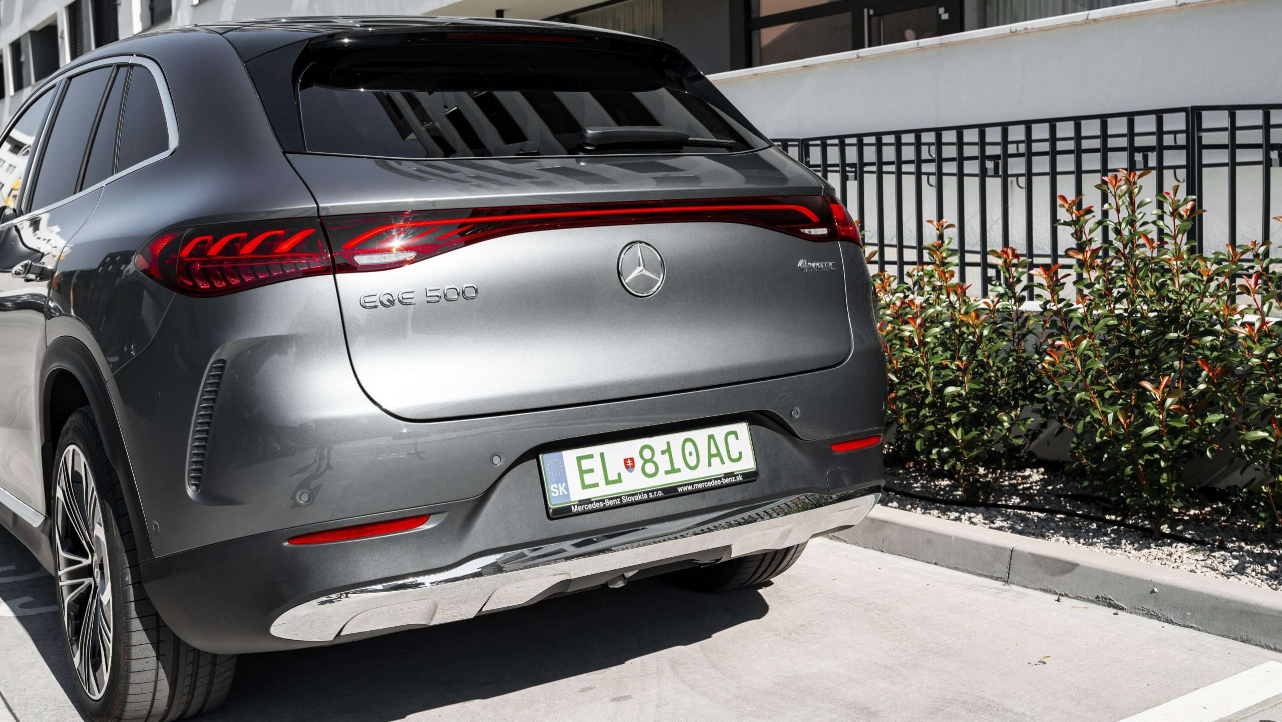 Výhodou modelu EQE SUV oproti napríklad modelu GLE je prítomnosť riadenia oboch náprav. Zadná náprava sa dokáže v nízkych rýchlostiach natočiť do smeru jazdy až o 10 stupňov, čo veľmi uľahčuje manévrovanie v parkovacích domoch. Prítomnosť 360-stupňového parkovacieho systému s možnosťou automatického parkovania snáď ani nemusíme spomínať.
