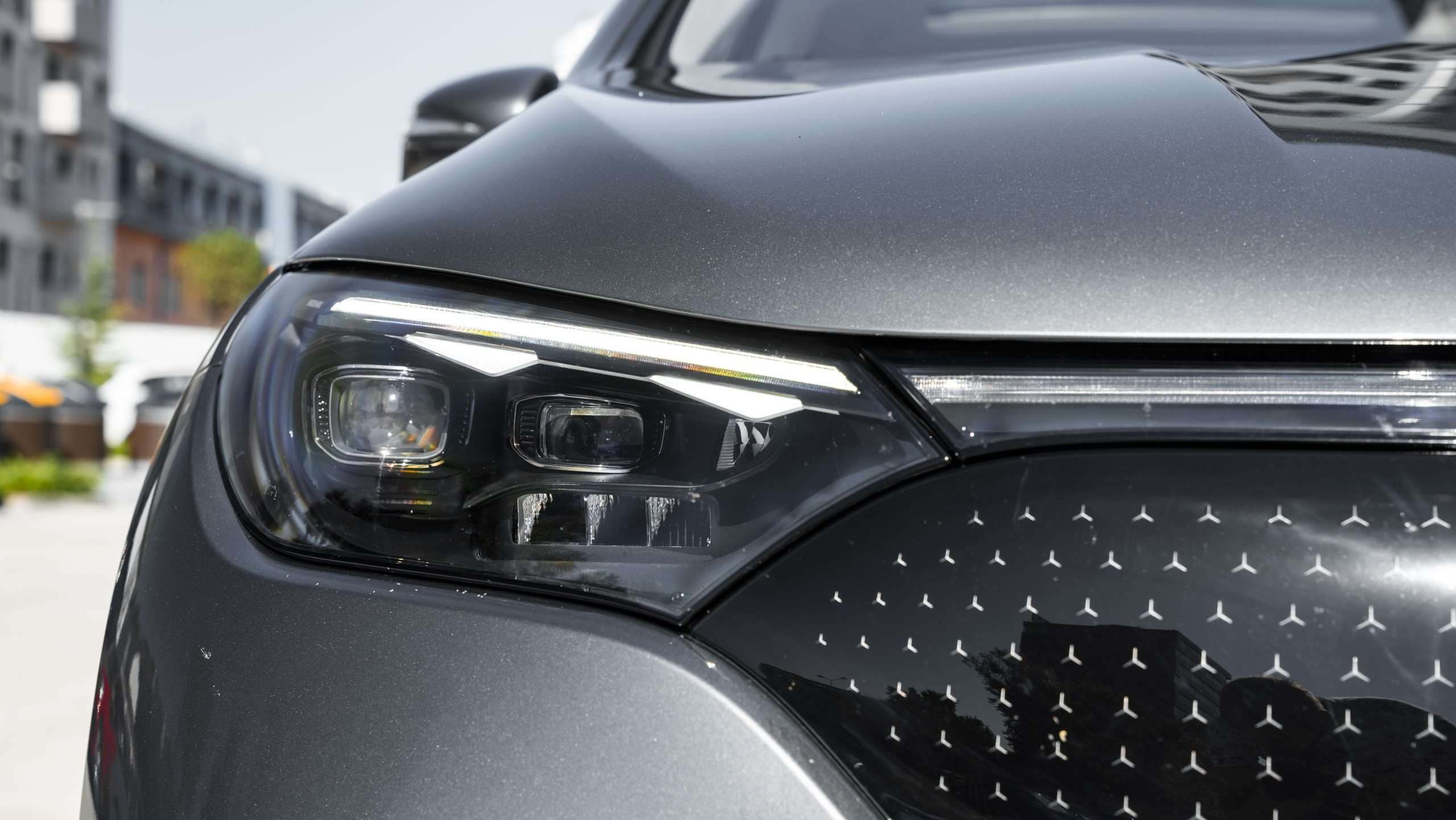 Dizajn sa veľmi nelíši od väčšieho EQS SUV. Dôvodom je najmä aerodynamika. V Mercedes vyvinuli jeden koncept karosérie s mimoriadne nízkym súčiniteľom odporu vzduchu karosérie a ten teraz uplatňujú na čo najširšom portfóliu vozidiel. Záujemca o elektromobil značky Mercedes si tak iba vyberie, v akom balení mu tento koncept poslúži pre jeho potreby najlepšie. V testovanej farbe podľa nás EQE SUV nevynikne takým pocitom luxusu, ako napríklad v bielej, ale nedá sa ani tvrdiť, že by išlo o šedú myšku. Lesklý povrch masky chladiča napovedá, že pod karosériou pracujú elektromotory.
