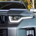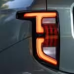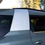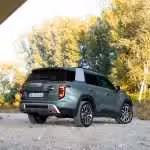 Veď nakoniec aj samotný Defender prišiel o skutočné nášľapné plochy na kapote. Bočná silueta je pomerne netradičná, pričom strecha končí trojuholníkom. Riešenie, ktoré sme v žiadnom inom aute nevideli, prináša viac miesta na hlavy zadných pasažierov. Zadné partie už tak futuristicky nepôsobia a dizajnéri si s nimi veľkú námahu nedali. Nehovoriac o falošnom tvarovaní veka, ktoré evokuje rezervné koleso či dokonca otváranie samotných dverí do boku. Rezerva sa nachádza klasicky pod dvojitým dnom batožinového priestoru a veko sa otvára konvenčne, do hora.